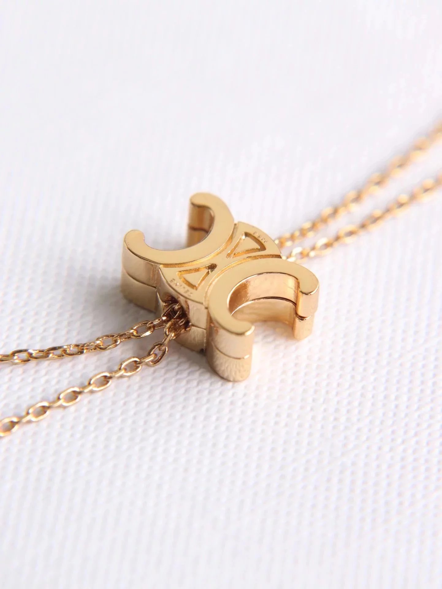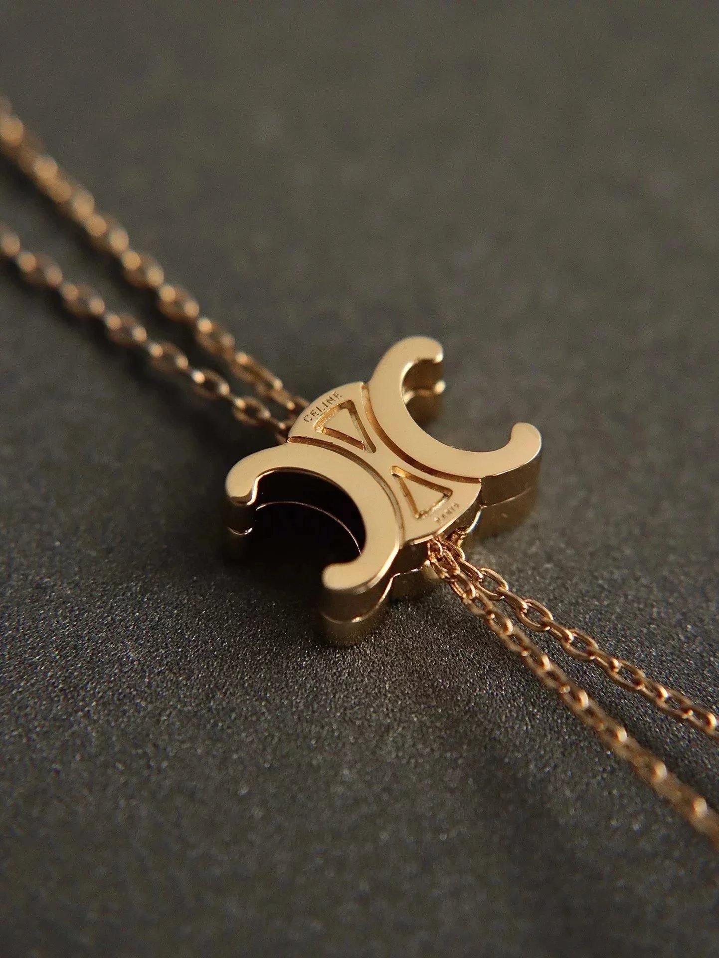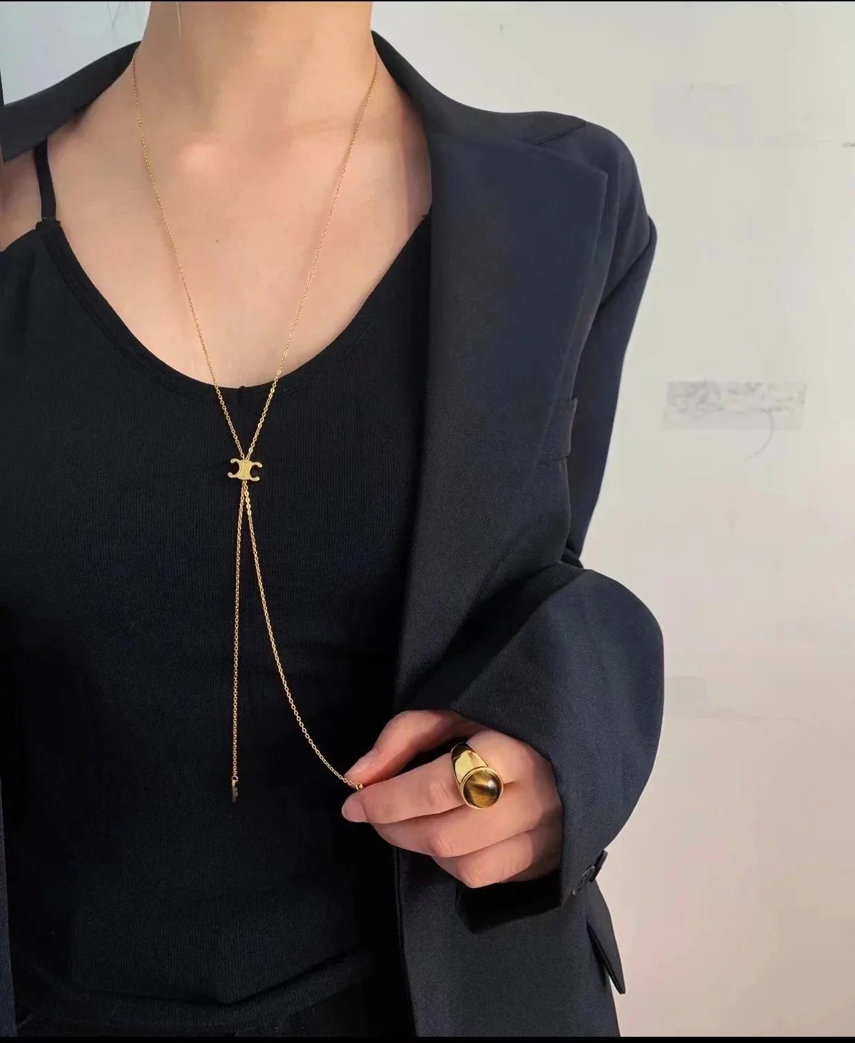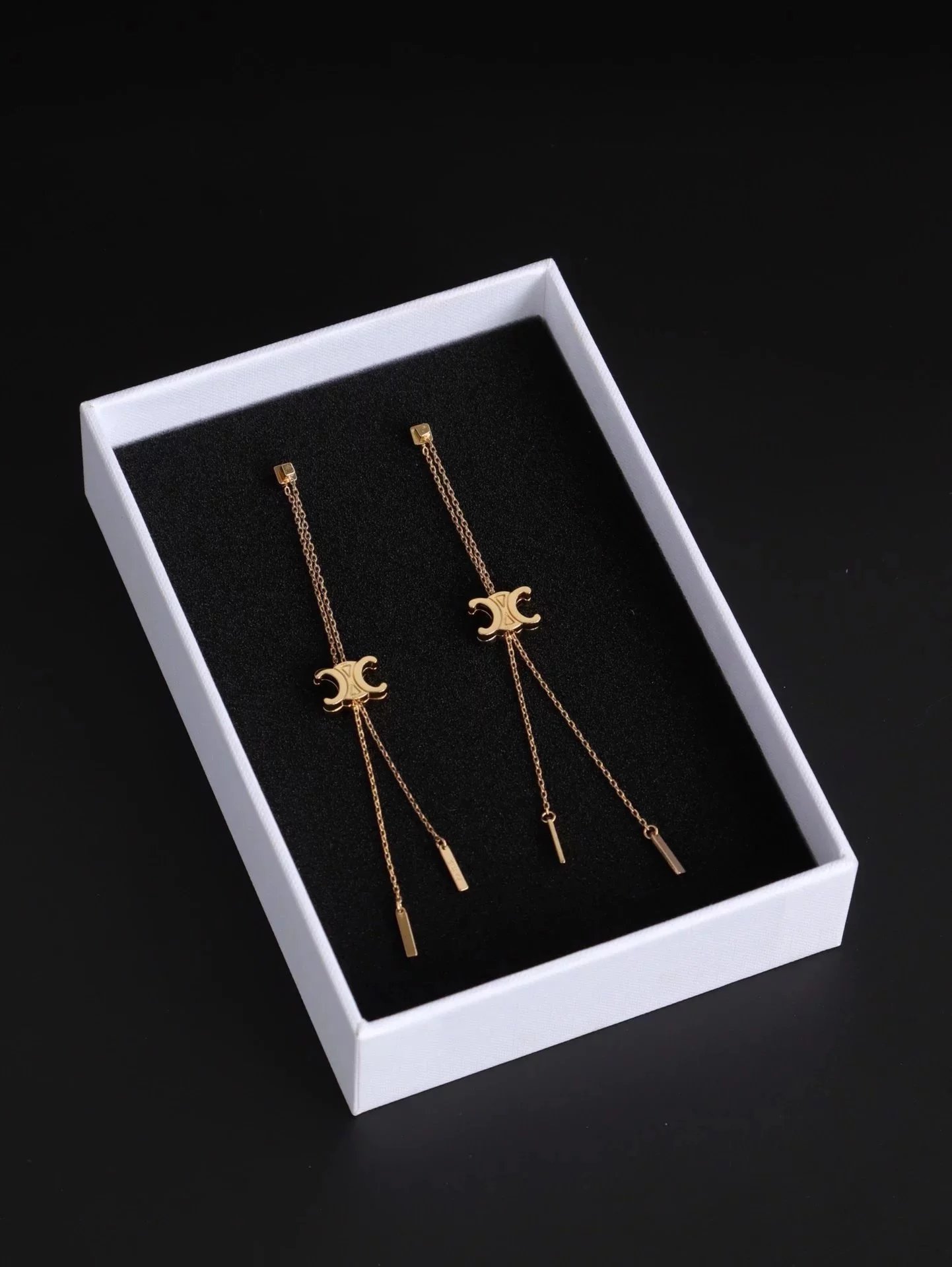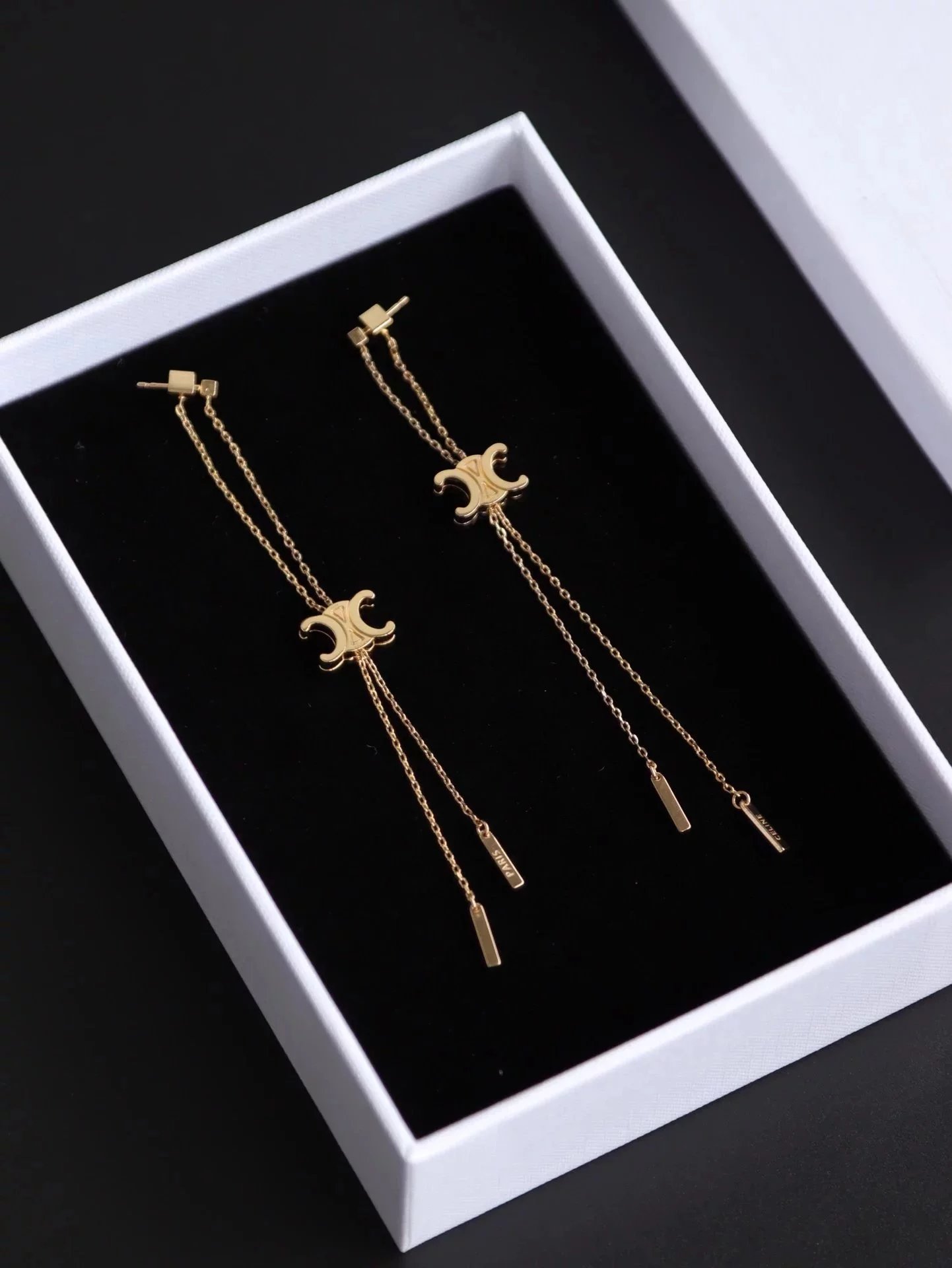 Celin*e赛琳 2022 *凯旋门系列,耳环+项链,搭配细长链条的悬落感,十分新颖又好看! SP(SJ)