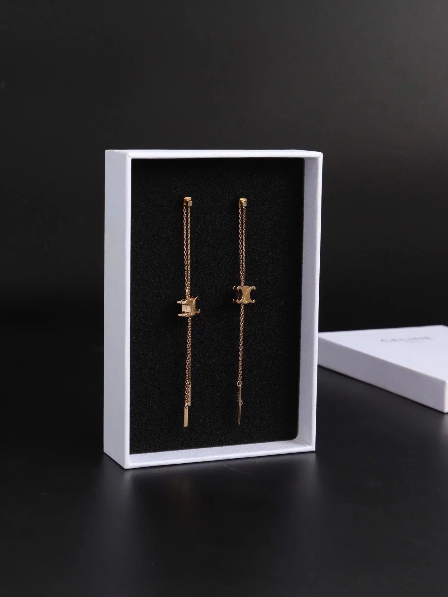 Celin*e赛琳2022经典凯旋门系列 这个经典的凯旋门系列有项链和耳环两款,设计风格既经典又十分新颖,经典的凯旋门元素点缀其中,而项链和耳环都搭配了细长链条的悬落感,十分新颖又好看! 长链条条形耳环真的太赞了!发售火爆到根本就抢不到!谁买到真的就是赚到! 凯旋门标志呈现了满满的复古感,搭配长条形的细链条,垂落耳际,感和质感蹭蹭蹭加分! 百搭时尚,又成熟知性,佩戴上身又御姐又知性,搭配各种穿搭风格都完全hold得住!谁看了不爱啊! 有气质,知性大方,迷人成熟又优雅~爱了~ 长度:两条链长度不一样,各3.5/4.0cm 注意事项:饰品首饰配件类非质量问题不可退换,购买时需要理性消费哦。