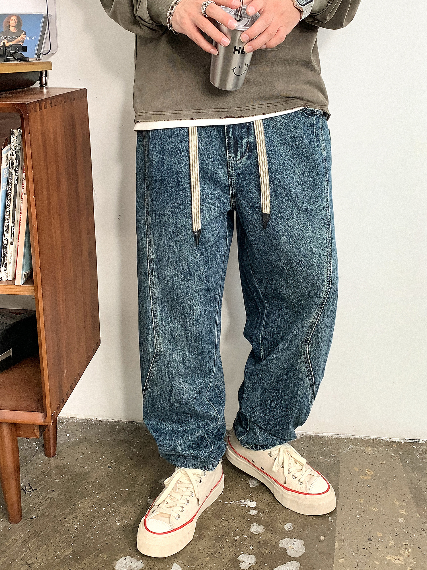 徐太浪秋季美式潮牌直筒牛仔裤男时尚宽松哈伦裤百搭休闲阔腿裤子