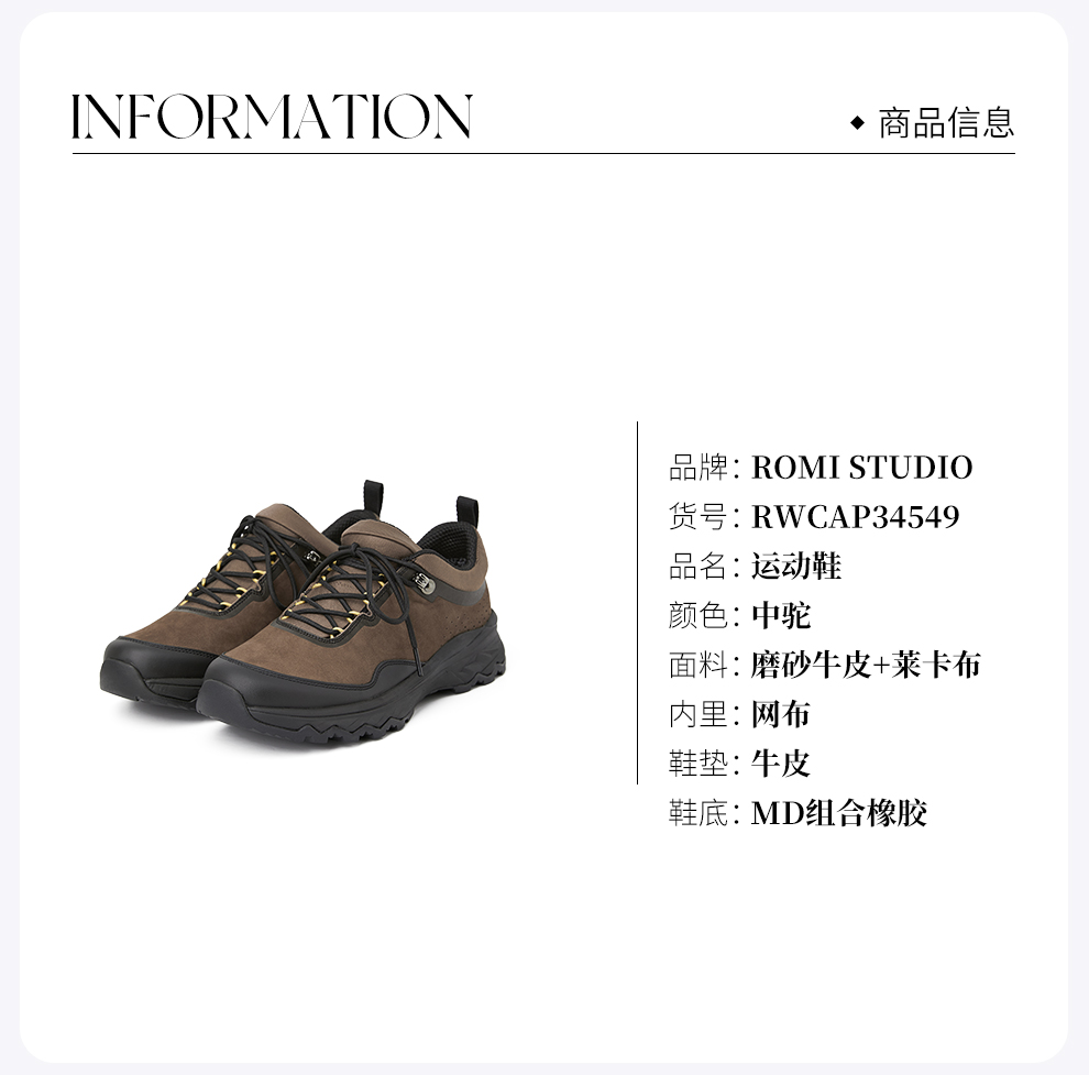 ROMI STUDIO“伴行山野”细腻磨砂牛皮舒适机能风轻量化运动登山鞋 RWCAP34549