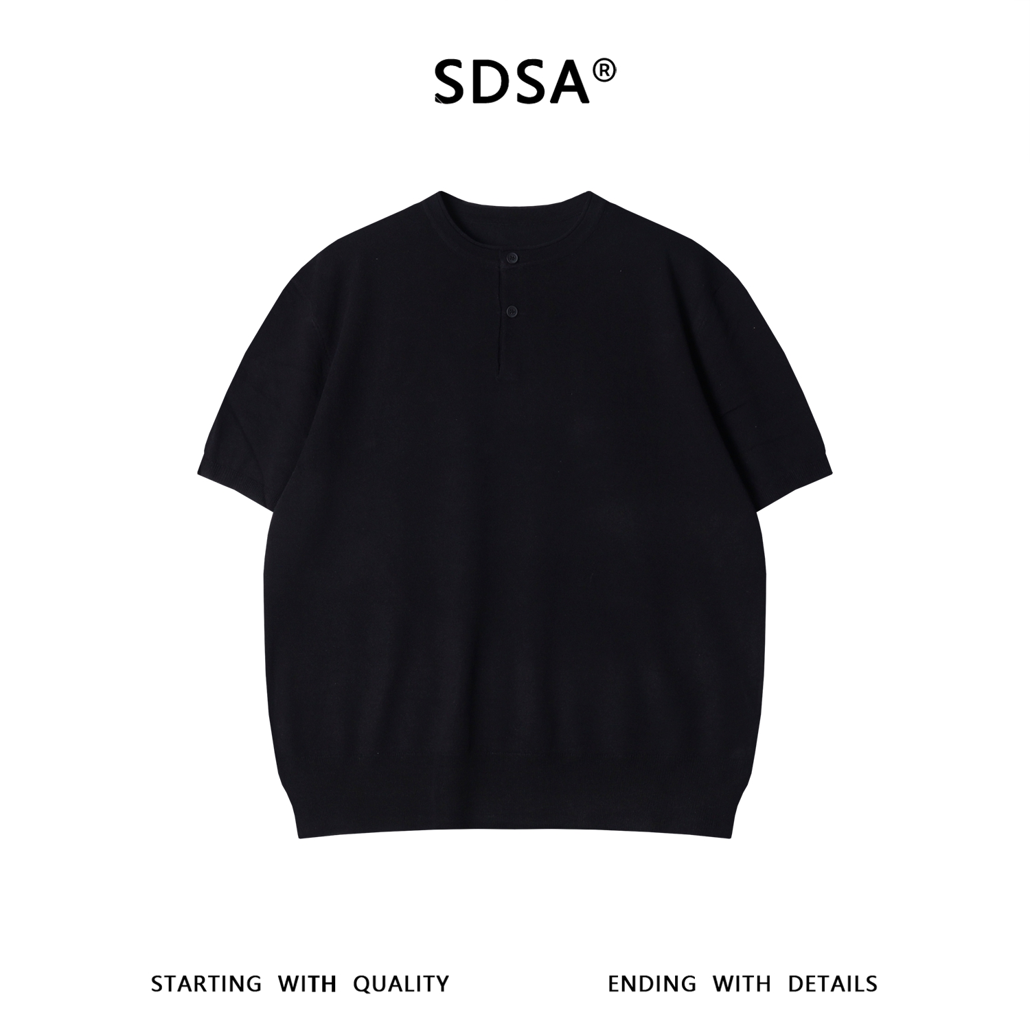 SDSA男装2026新款轻奢基础款老钱风针织半纽扣圆领短袖T恤百搭