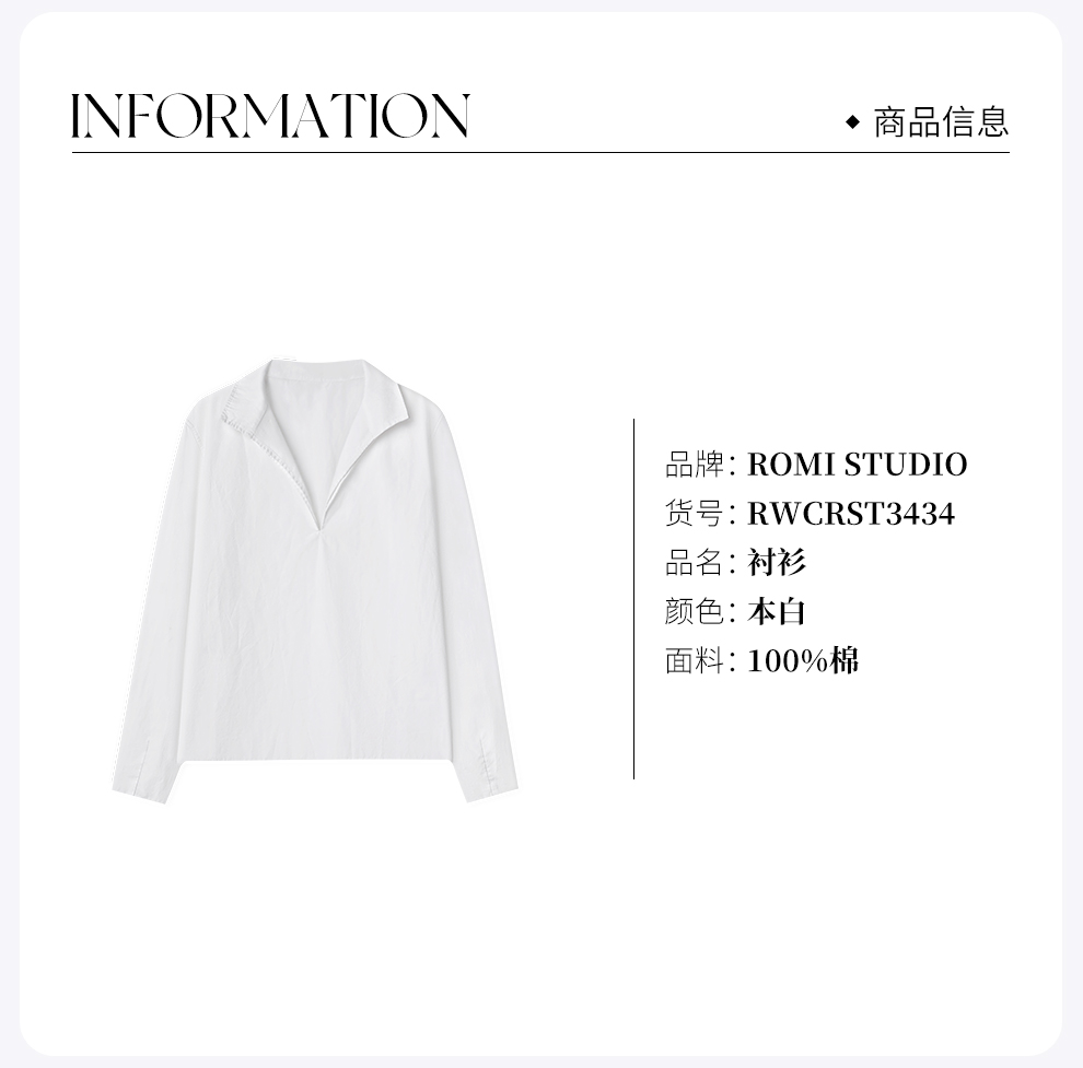 ROMI STUDIO“中古理念”美国匹马棉高密高支双V领衬衫 RWCRST3434