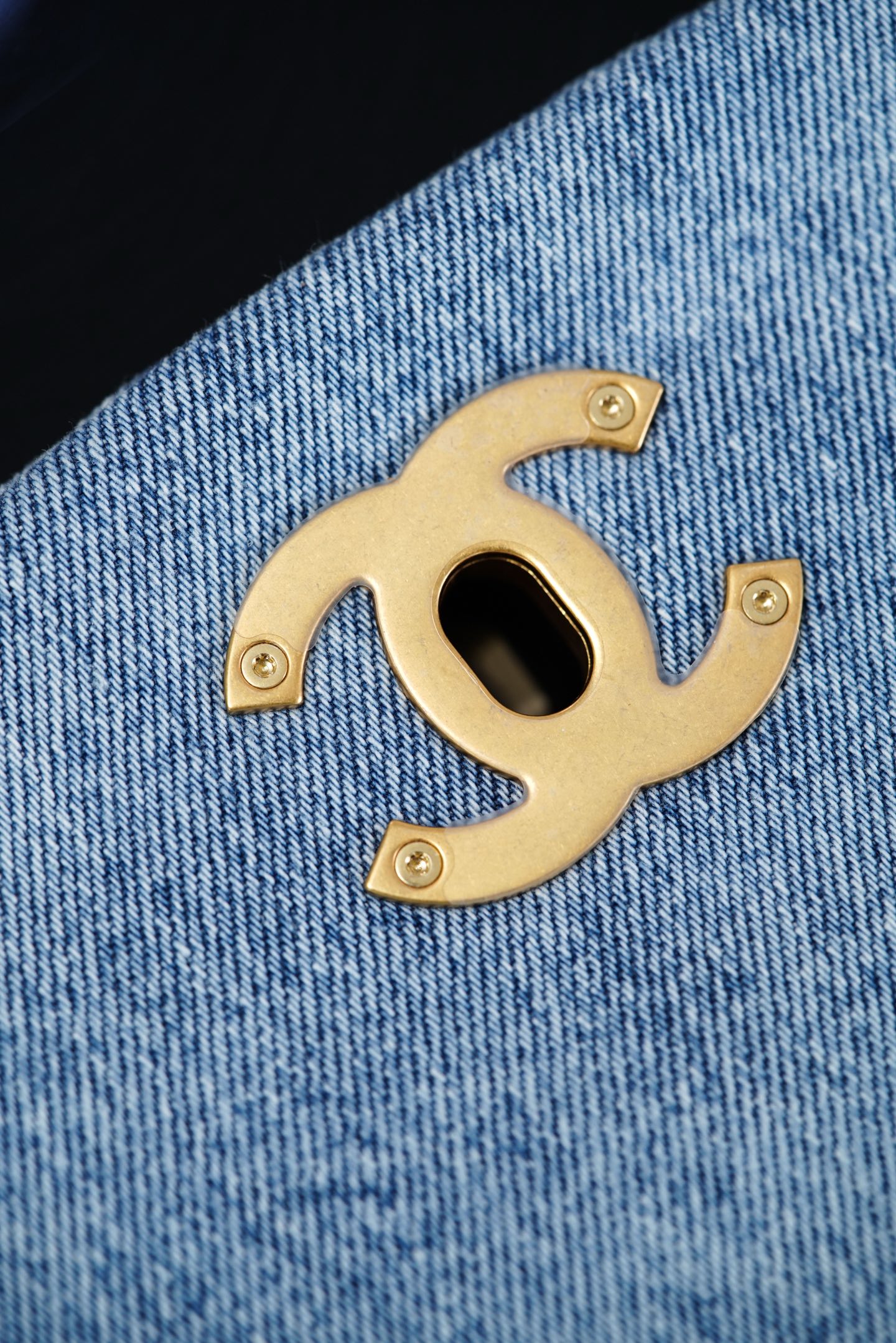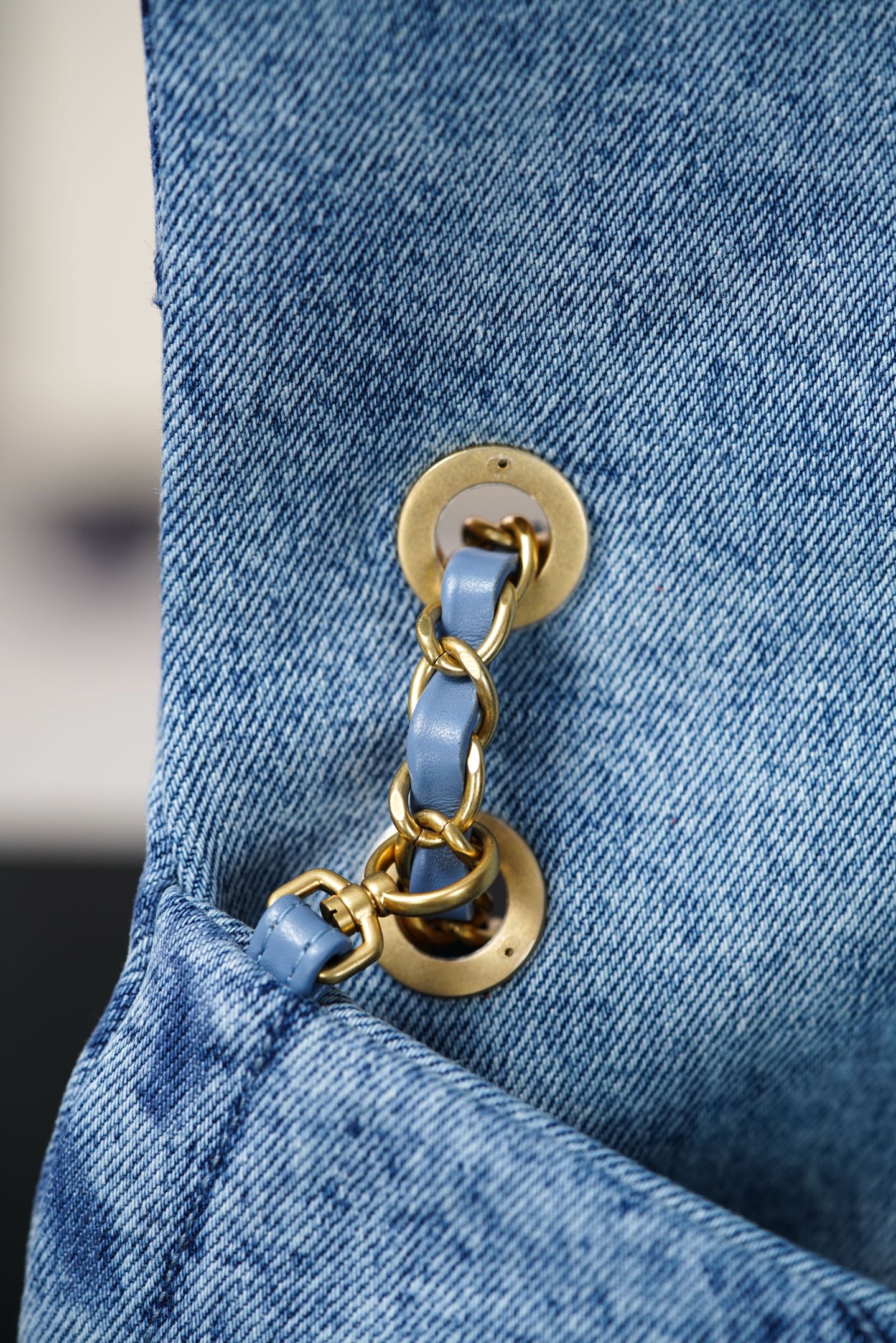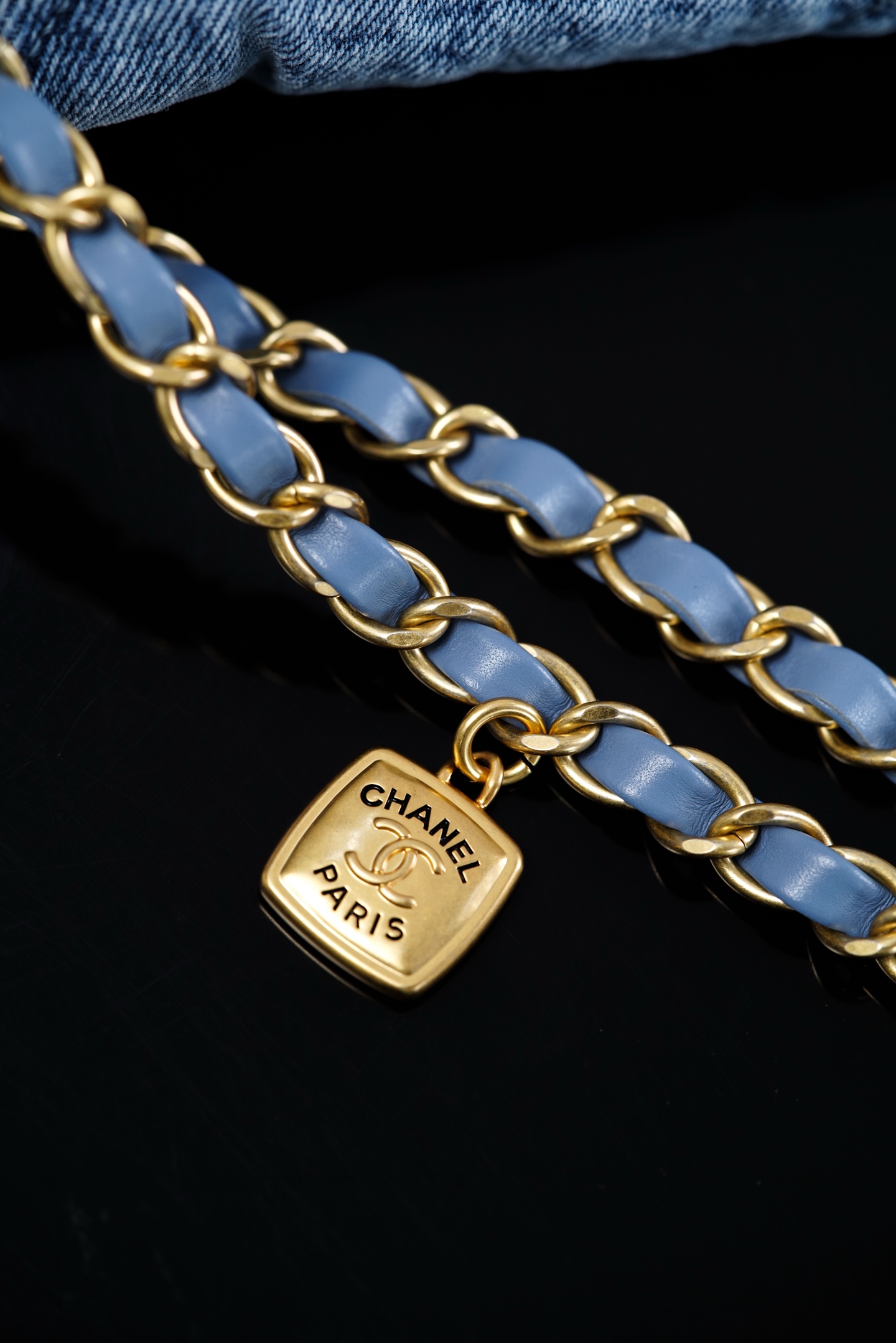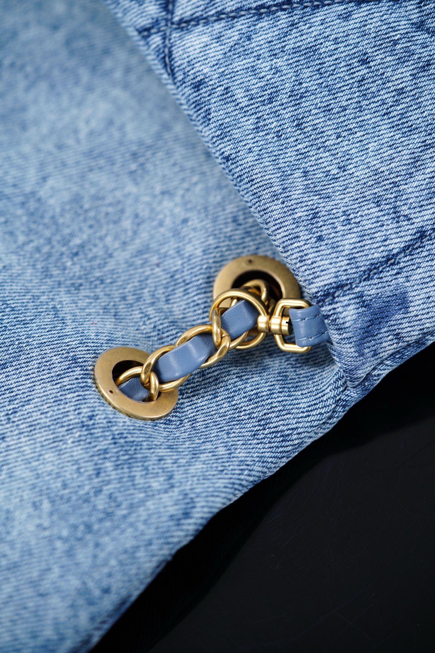 𝐂𝐡𝐚𝐧𝐞𝐥 𝟐𝟓𝐤 双口袋牛仔hobo 浅蓝 大号 经典大菱格,翻盖式包盖➕双口袋设计🔥 超大容量!秋冬就是要买大包👜 复古感、松弛感十足的水洗浅蓝色牛仔✨ 调性十足! 那串标志性的链条⛓️上,“双𝐂小挂坠”增添不少灵动感✨ 前后口袋隔层 容量感人✔️ 多种背法 上身优雅迷人!男女通背‼️ 尺寸:27x45x10cm