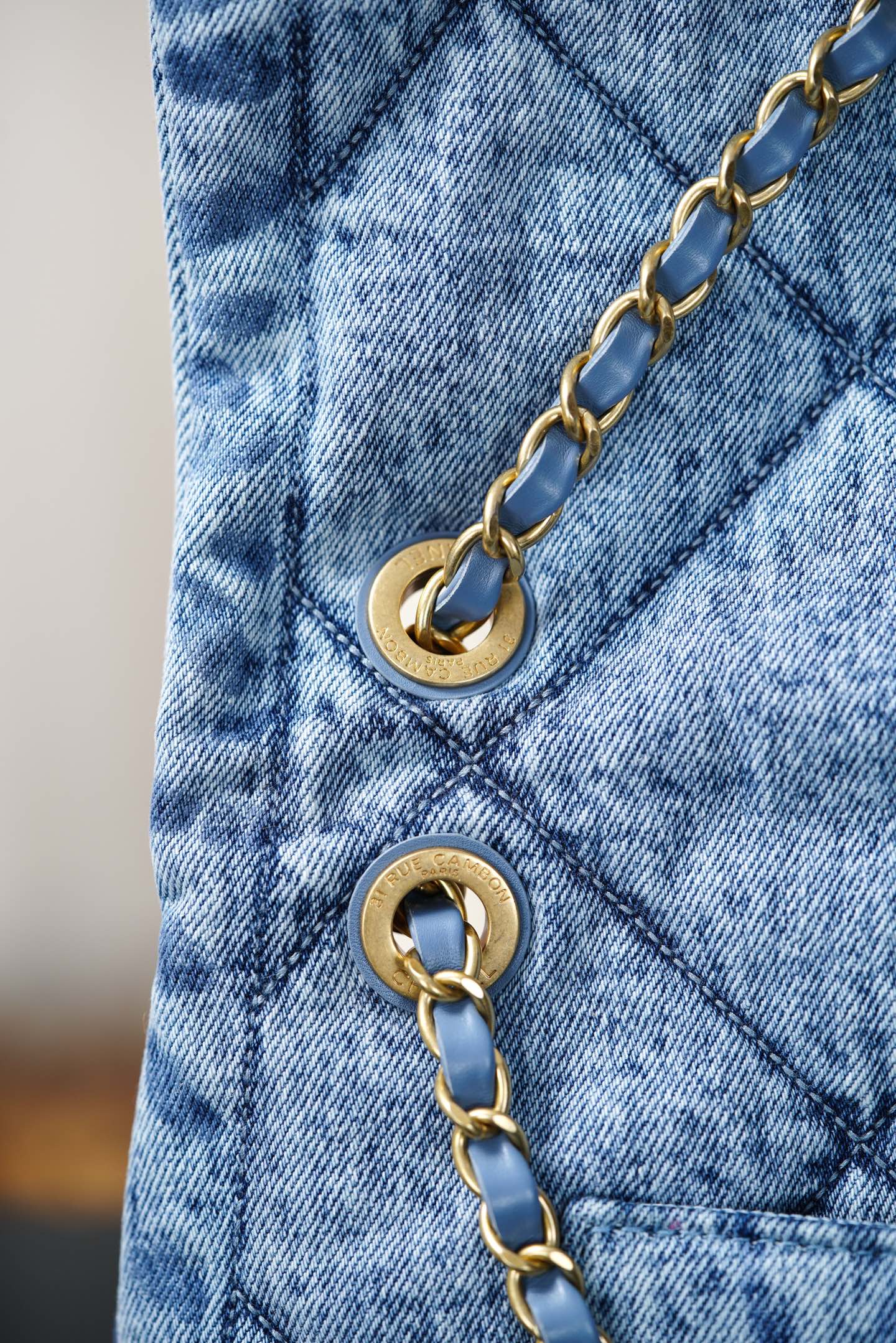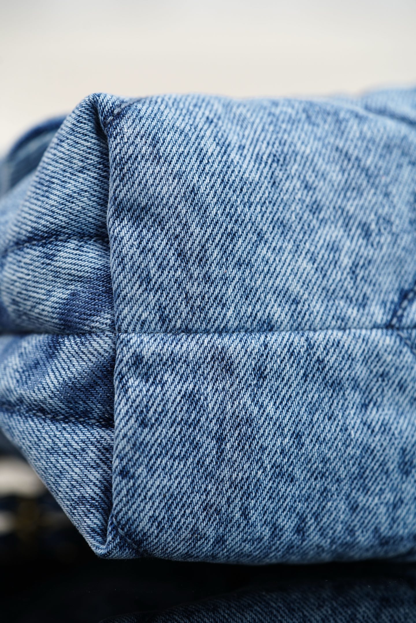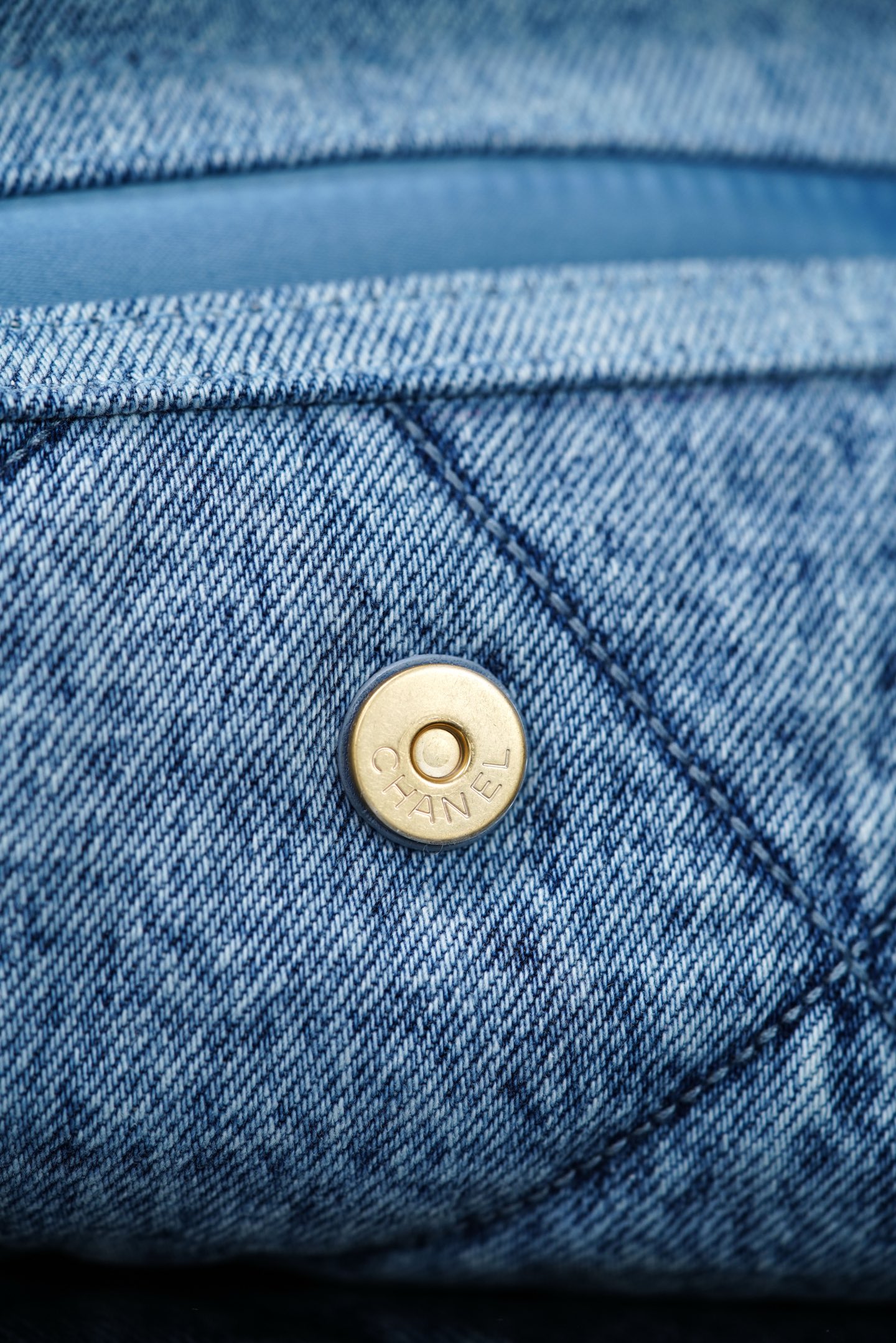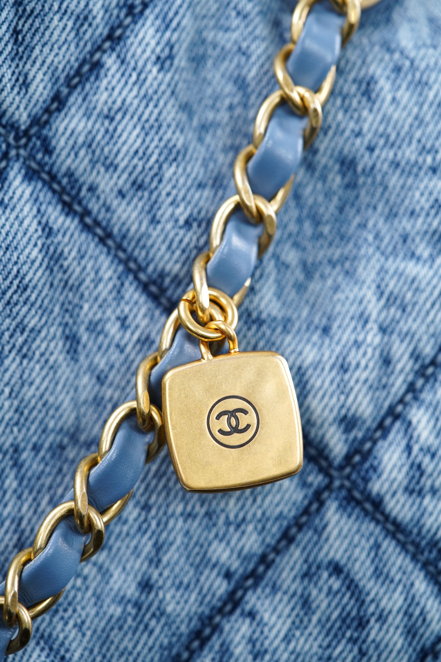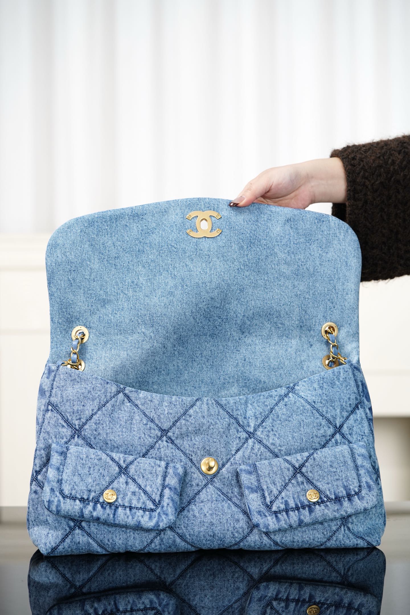 𝐂𝐡𝐚𝐧𝐞𝐥 𝟐𝟓𝐤 双口袋牛仔hobo 浅蓝 大号 经典大菱格,翻盖式包盖➕双口袋设计🔥 超大容量!秋冬就是要买大包👜 复古感、松弛感十足的水洗浅蓝色牛仔✨ 调性十足! 那串标志性的链条⛓️上,“双𝐂小挂坠”增添不少灵动感✨ 前后口袋隔层 容量感人✔️ 多种背法 上身优雅迷人!男女通背‼️ 尺寸:27x45x10cm