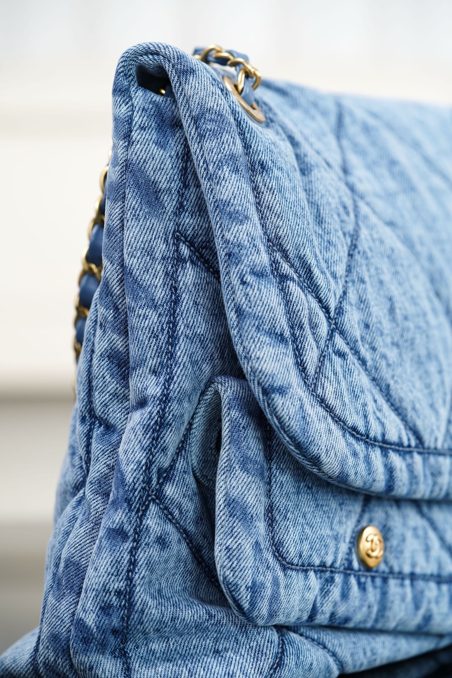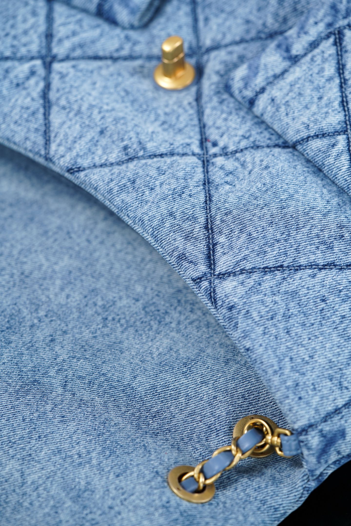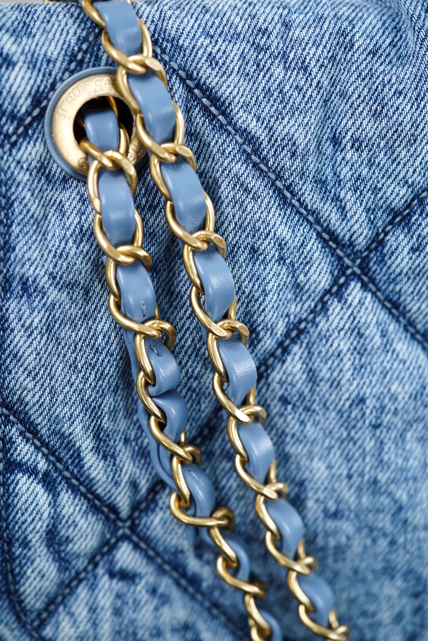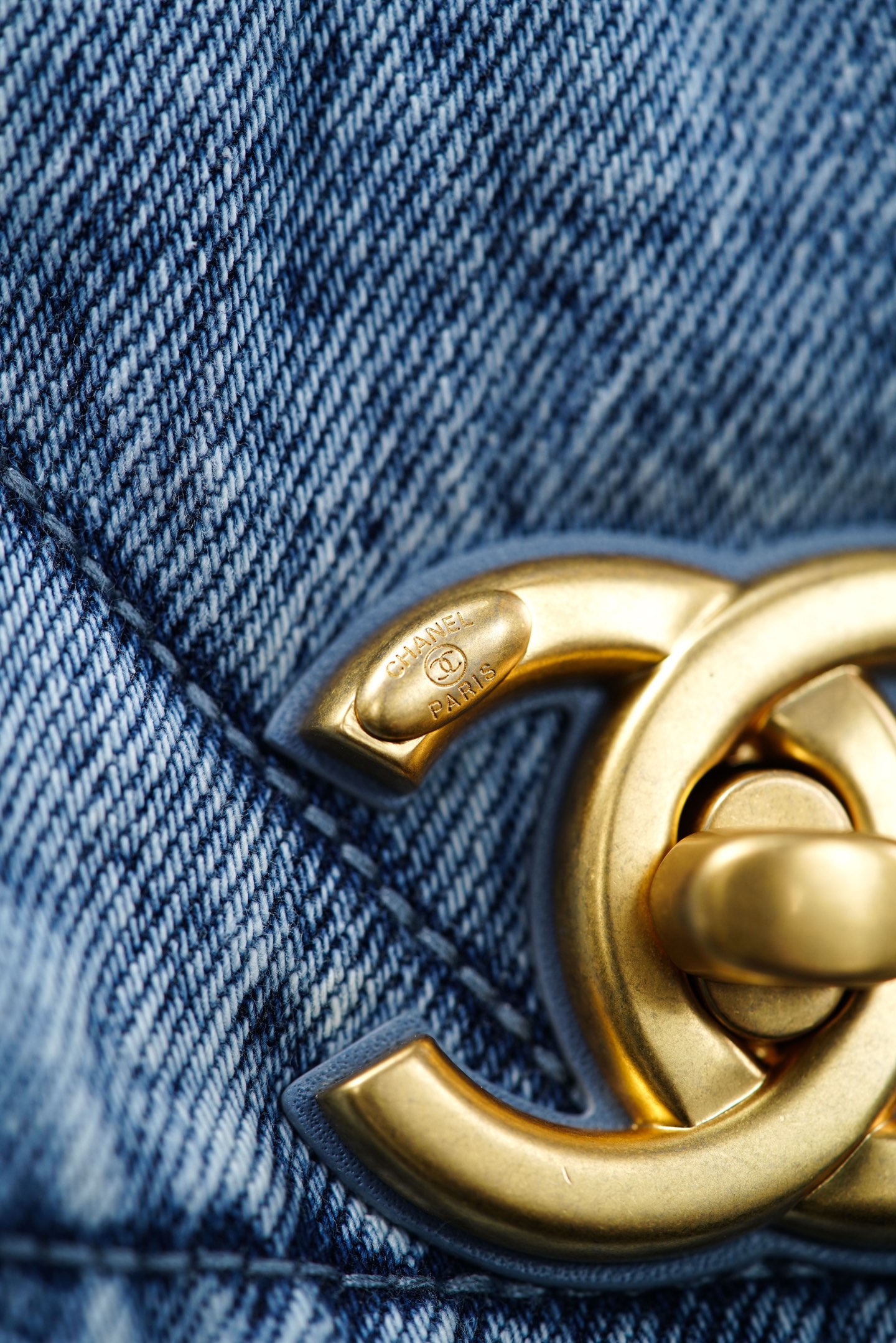 𝐂𝐡𝐚𝐧𝐞𝐥 𝟐𝟓𝐤 双口袋牛仔hobo 浅蓝 大号 经典大菱格,翻盖式包盖➕双口袋设计🔥 超大容量!秋冬就是要买大包👜 复古感、松弛感十足的水洗浅蓝色牛仔✨ 调性十足! 那串标志性的链条⛓️上,“双𝐂小挂坠”增添不少灵动感✨ 前后口袋隔层 容量感人✔️ 多种背法 上身优雅迷人!男女通背‼️ 尺寸:27x45x10cm