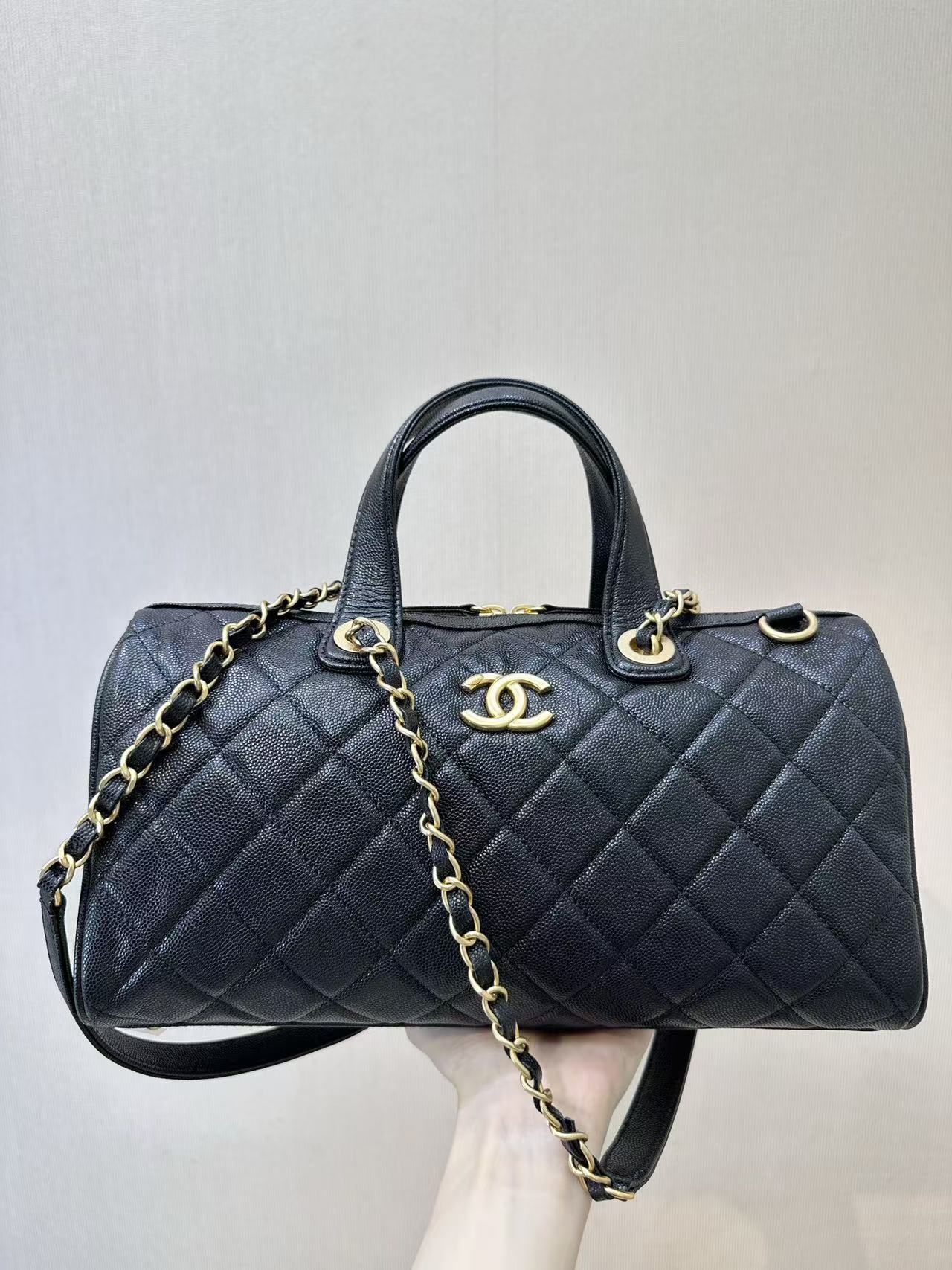 双手柄,搭配双链条肩带,外面设有拉链袋,设计很贴心。通体油腊牛皮搭配菱格纹绗缝,细节满满,正面醒目 logo,优雅大气,不会没有识别度,颜值爆表,这款波士顿把时髦玩的明明白白!