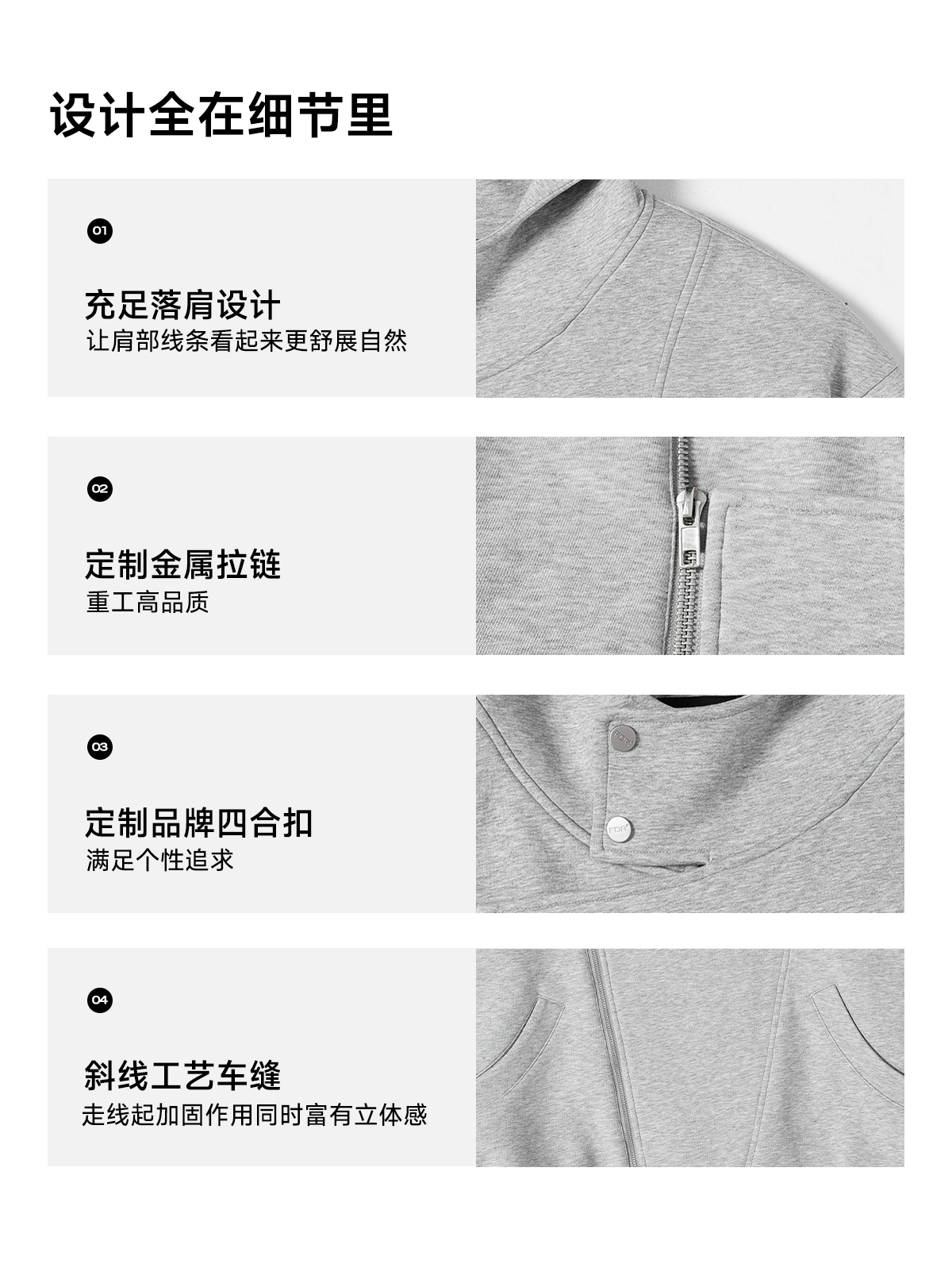 【限时7折】FDR官方店 460g高克重双拉链开衫空气层连帽卫衣外套男女春季上衣
