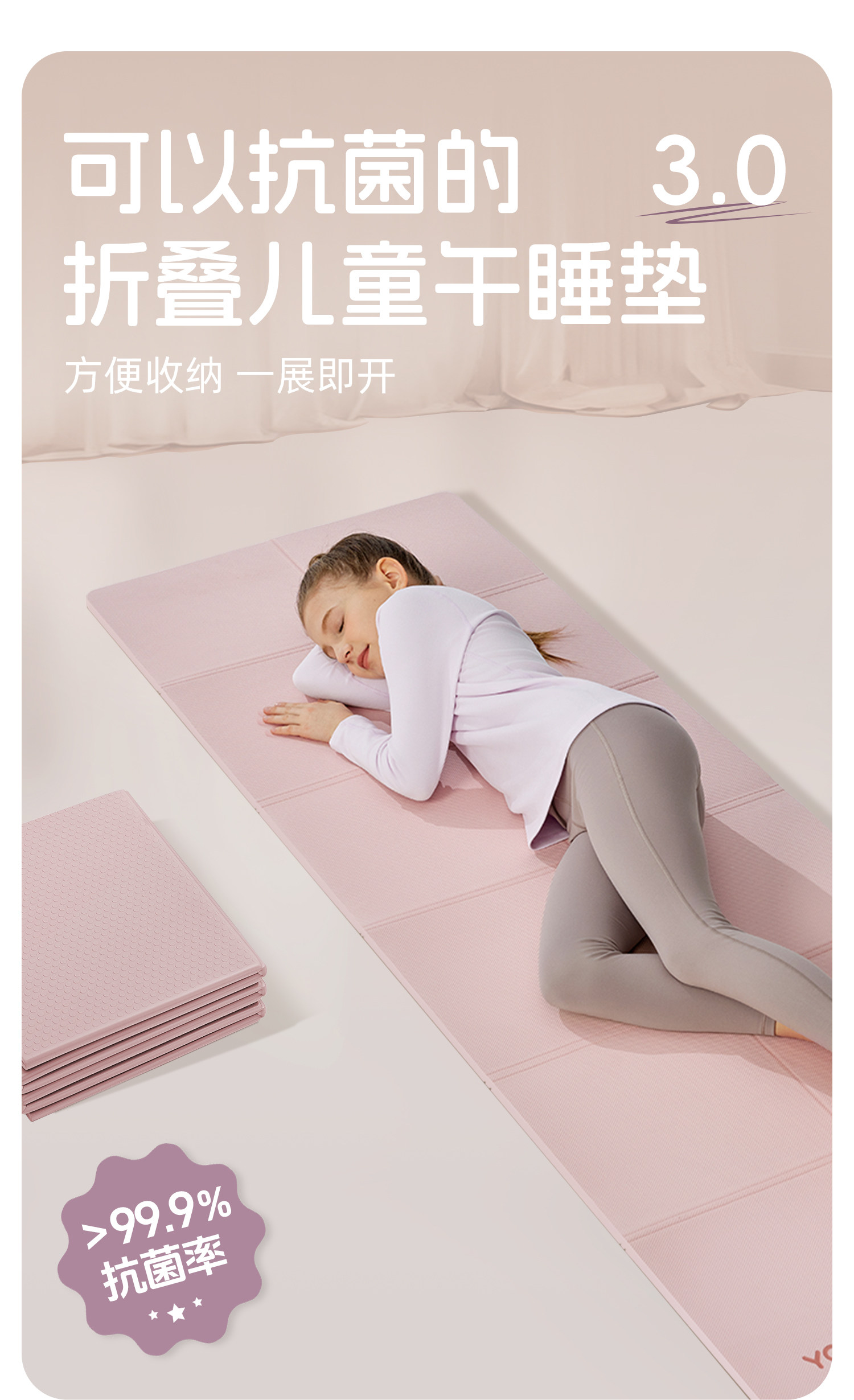 小学生折叠午睡垫防滑抗菌瑜伽垫午休地垫儿童家用健身加厚舞蹈女YOTTOY