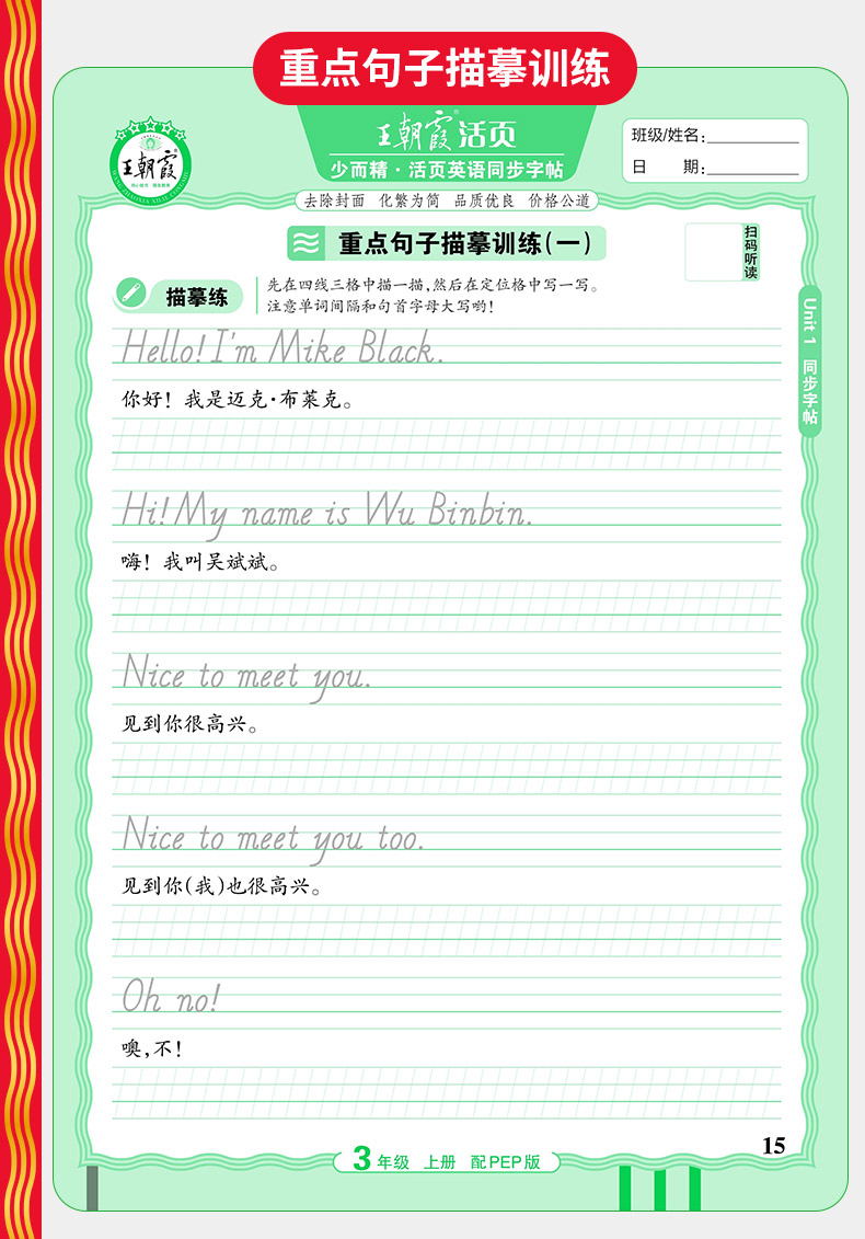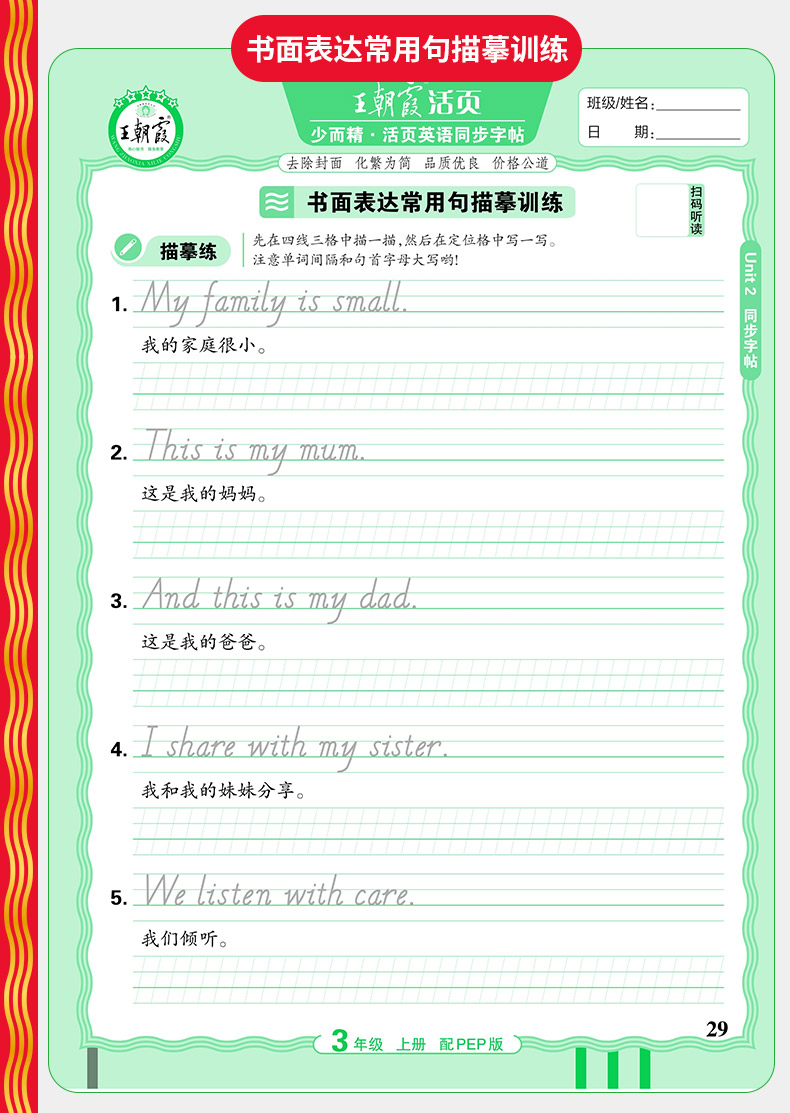 2025秋上王朝霞人教版1-6年级练字帖小学生语文活页字帖同步课堂暑假每日一练