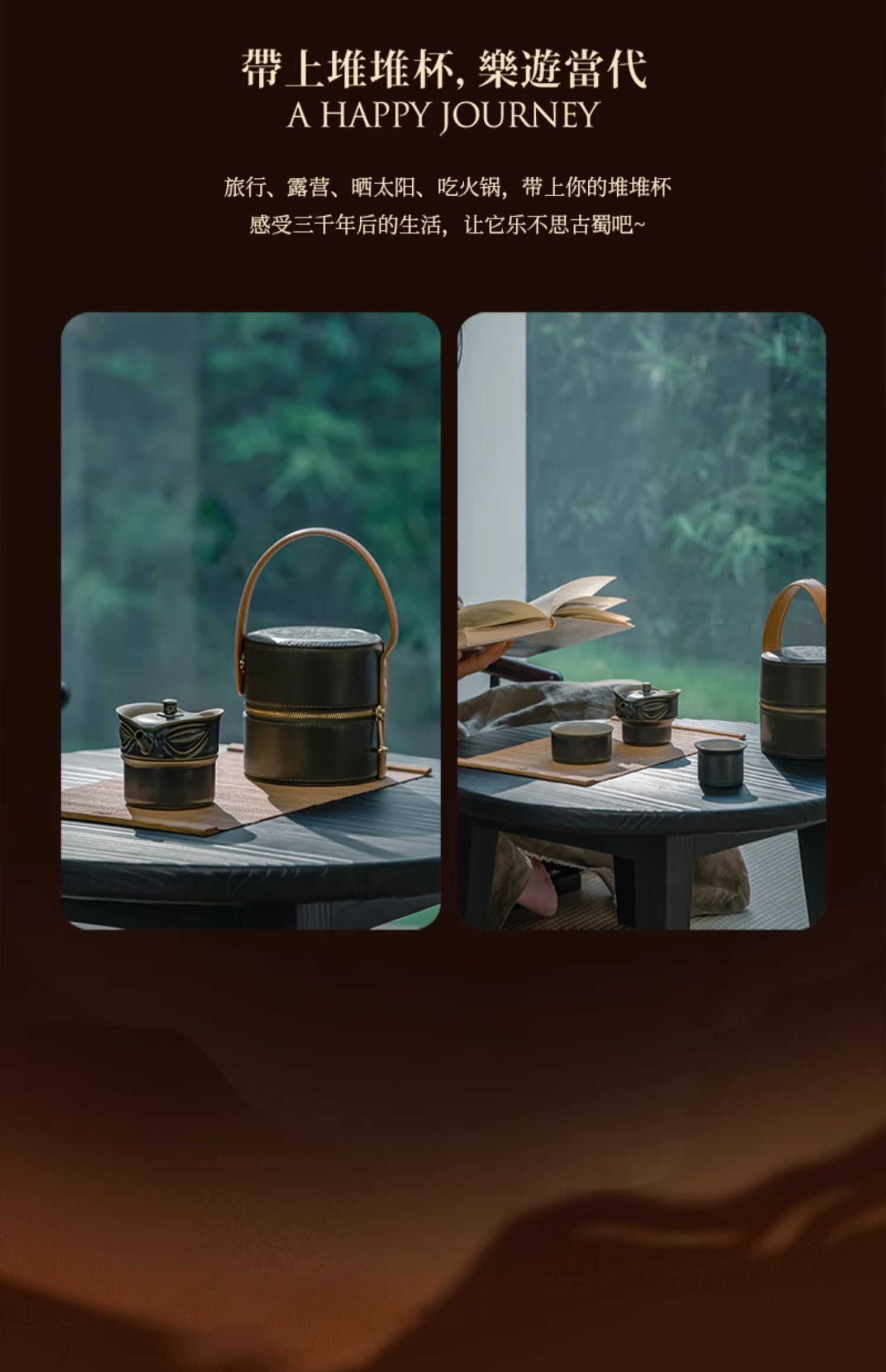 【预售7天】万仟堂旅行茶具套装家用一人高颜值户外茶具套装便携式茶具三星堆 瓷器商品不支持七天无理由