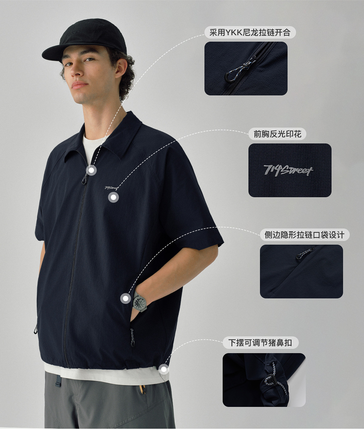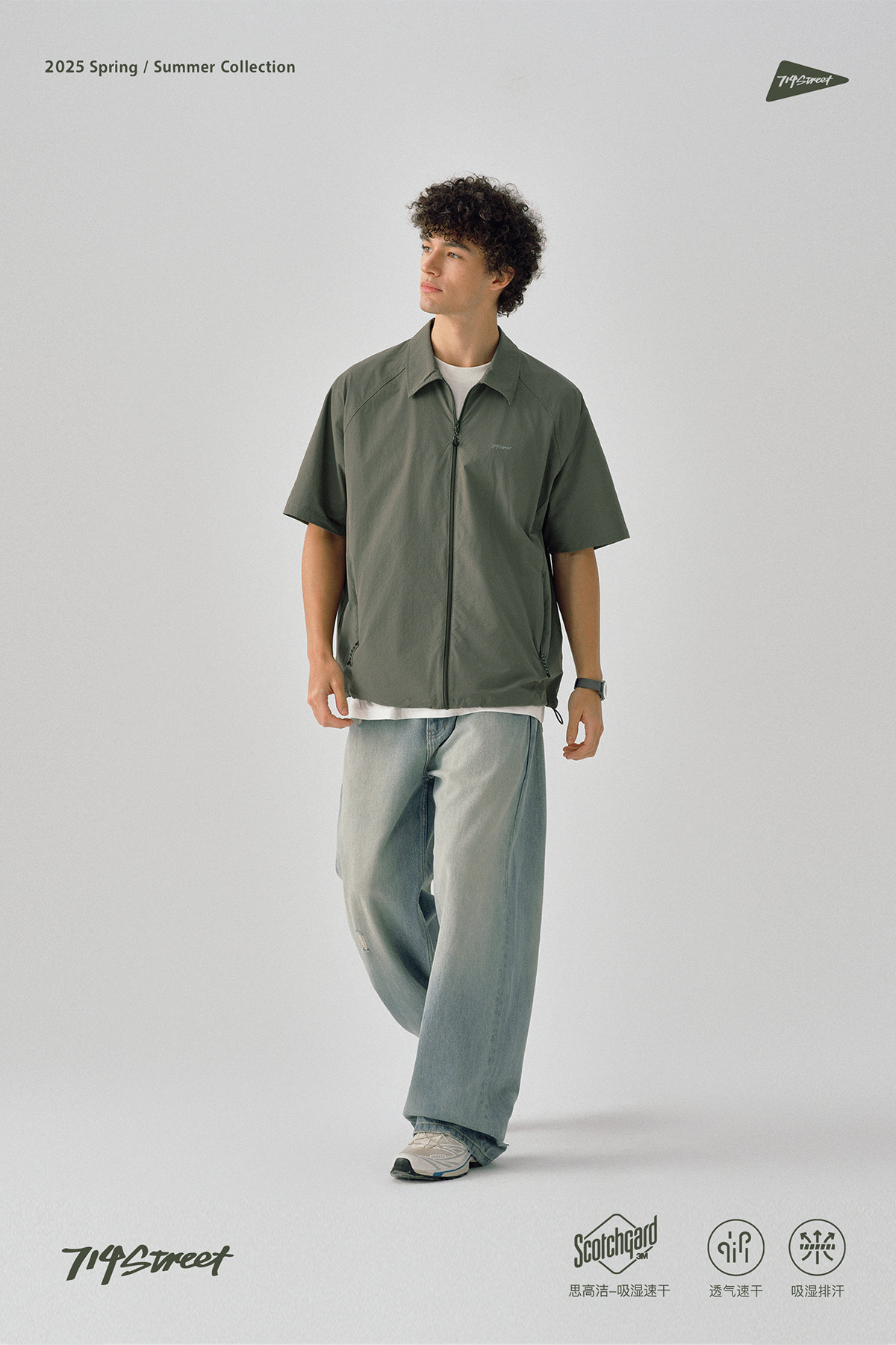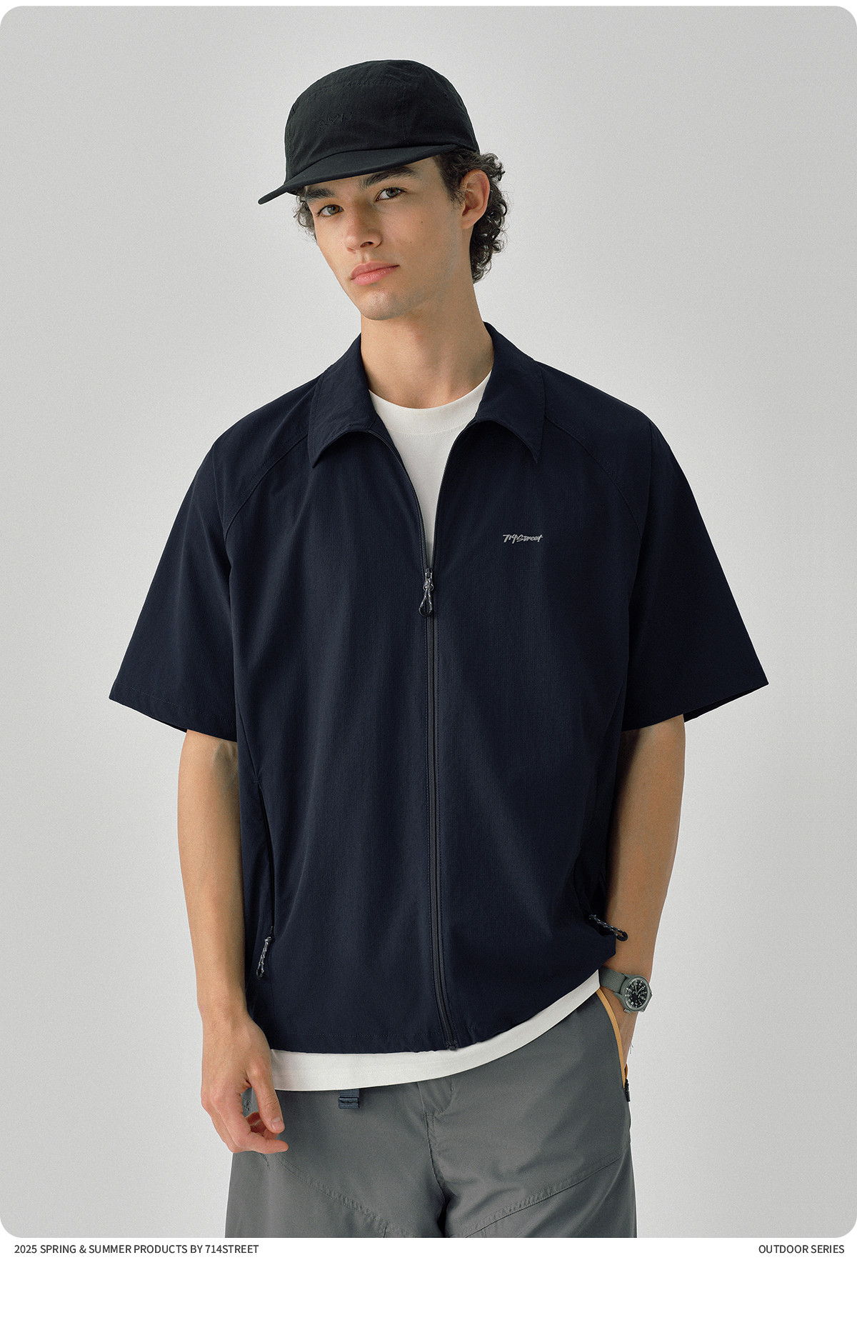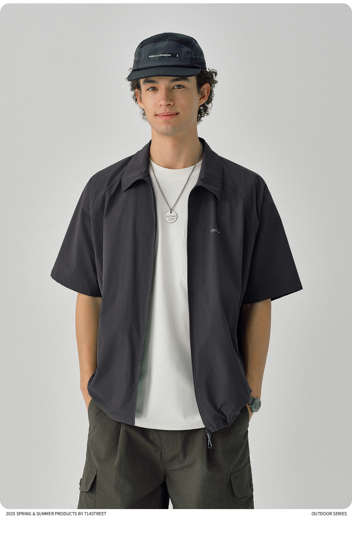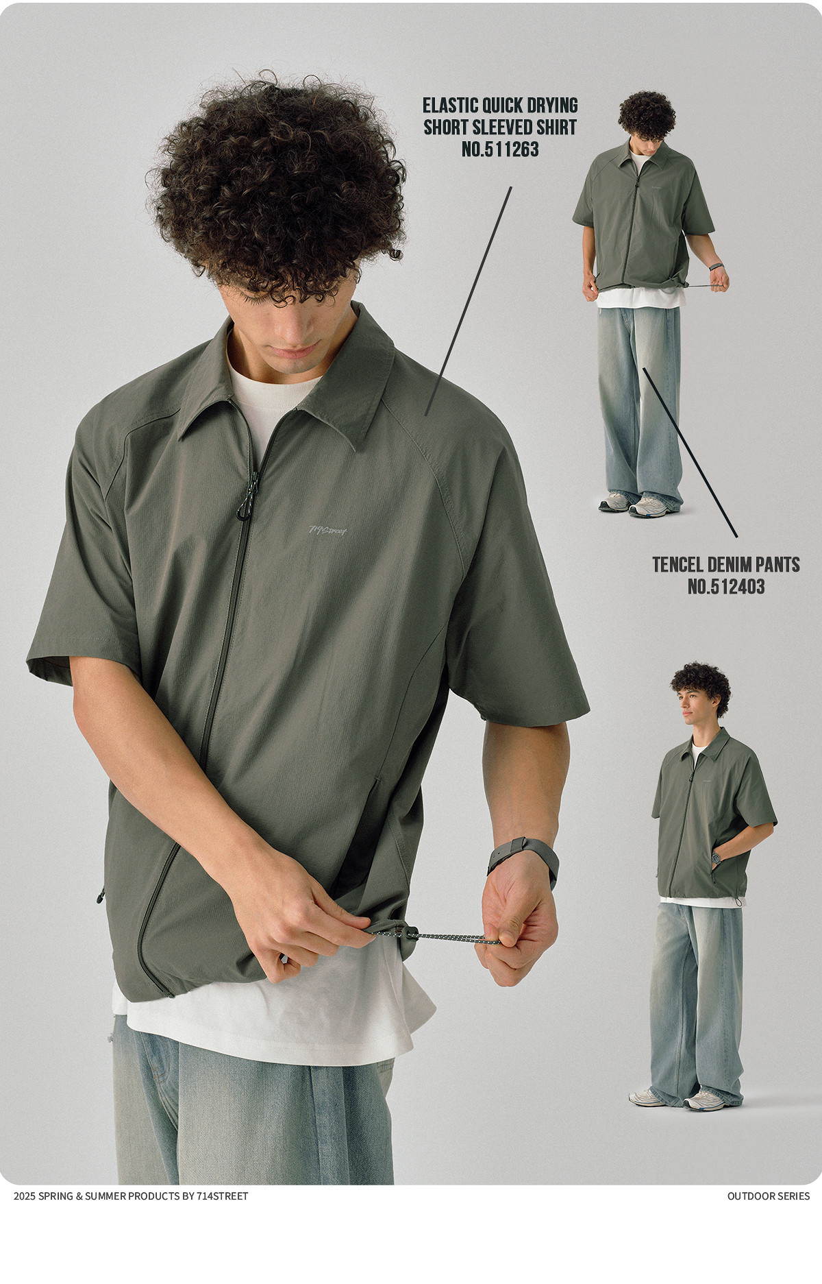 714street轻薄透气户外速干短袖衬衫男2025夏季新款抗皱衬衣外套