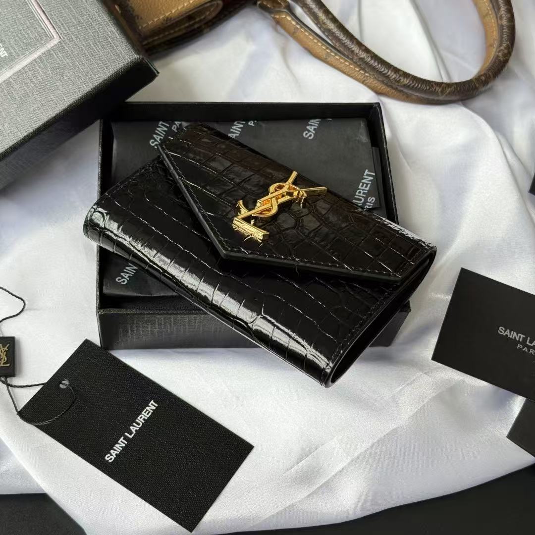 -ysl两折短夹钱包 卡包 正版开发 采用进口牛皮配独制五金