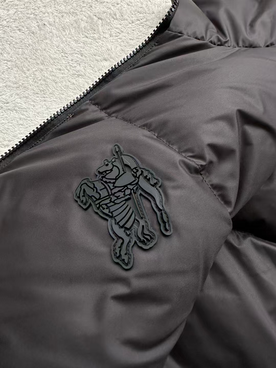 原版购入于北京SKP 10800 肩缝前后左右对位 领口袖口对位 面料不能纬斜太严重 车位需要调整逢头来确保完美对位 另一面标新立异的立体生胶材质飞马徽标Logo 四合扣采用黄铜底扣 原版合金材料定制 拉开按合声音清脆