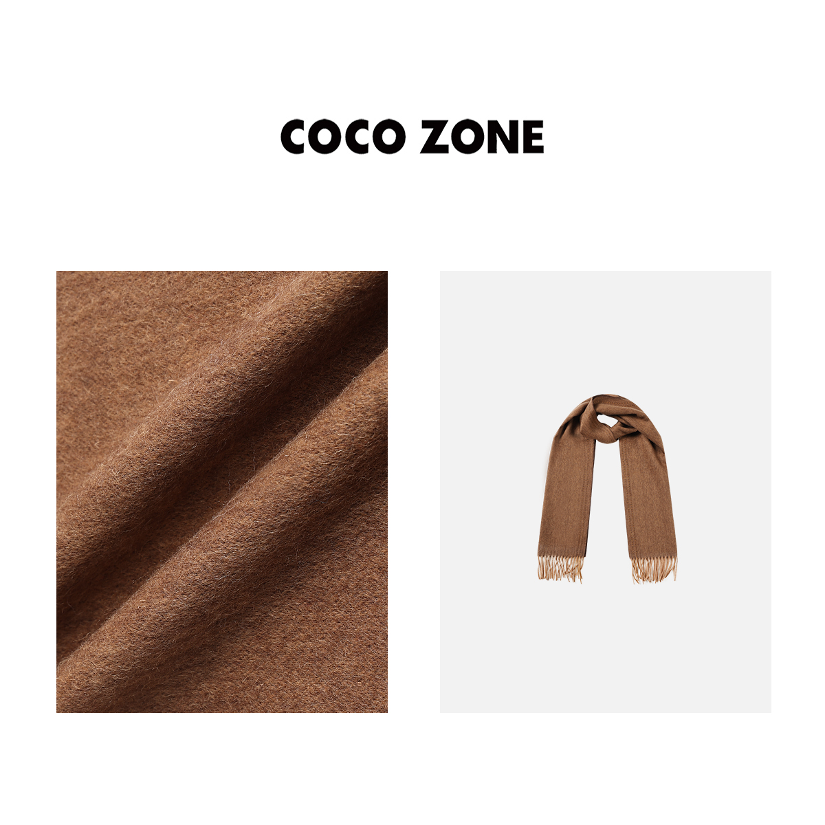 COCO ZONE 美拉德100羊毛围脖巾流苏保暖潮牌女装23C19659