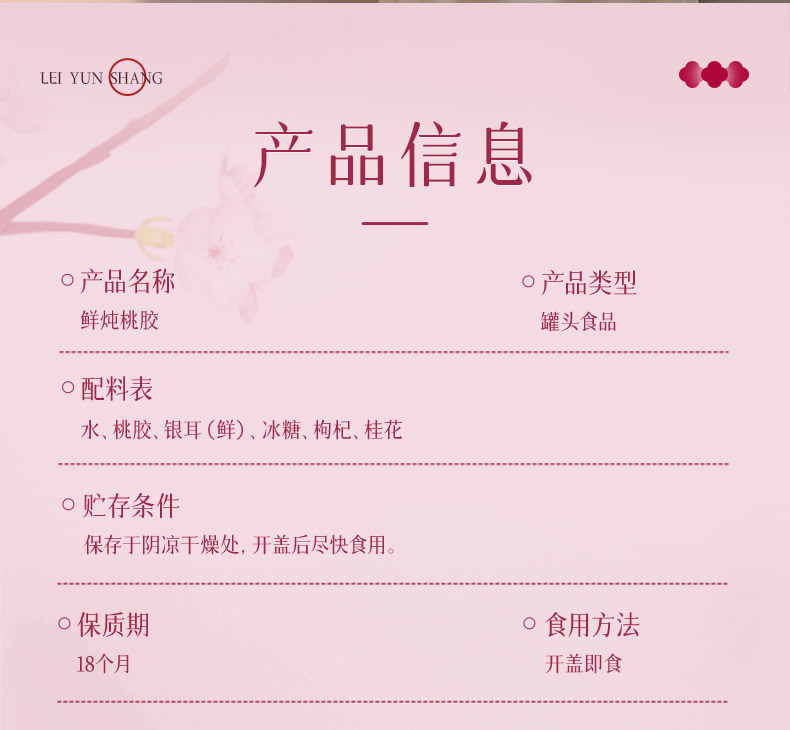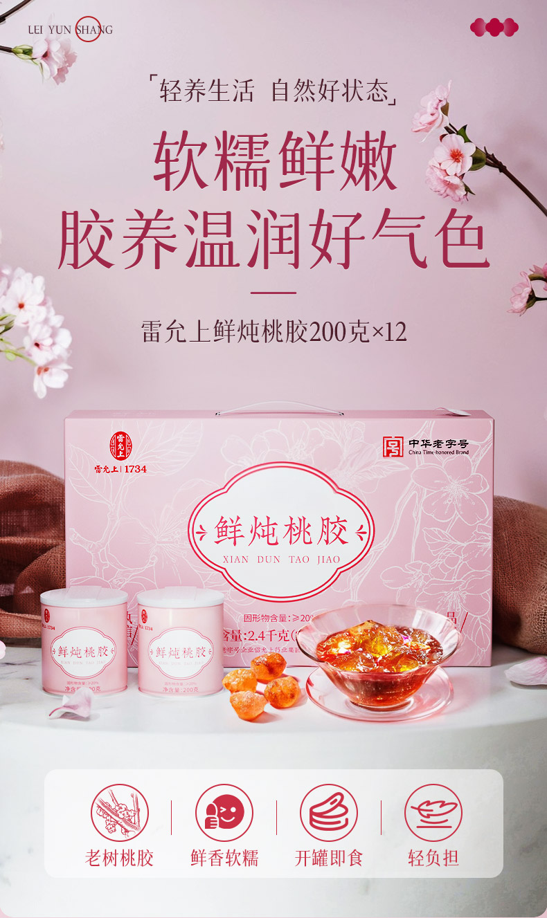 雷允上鲜炖桃胶2.4kg(200g*12罐)/盒