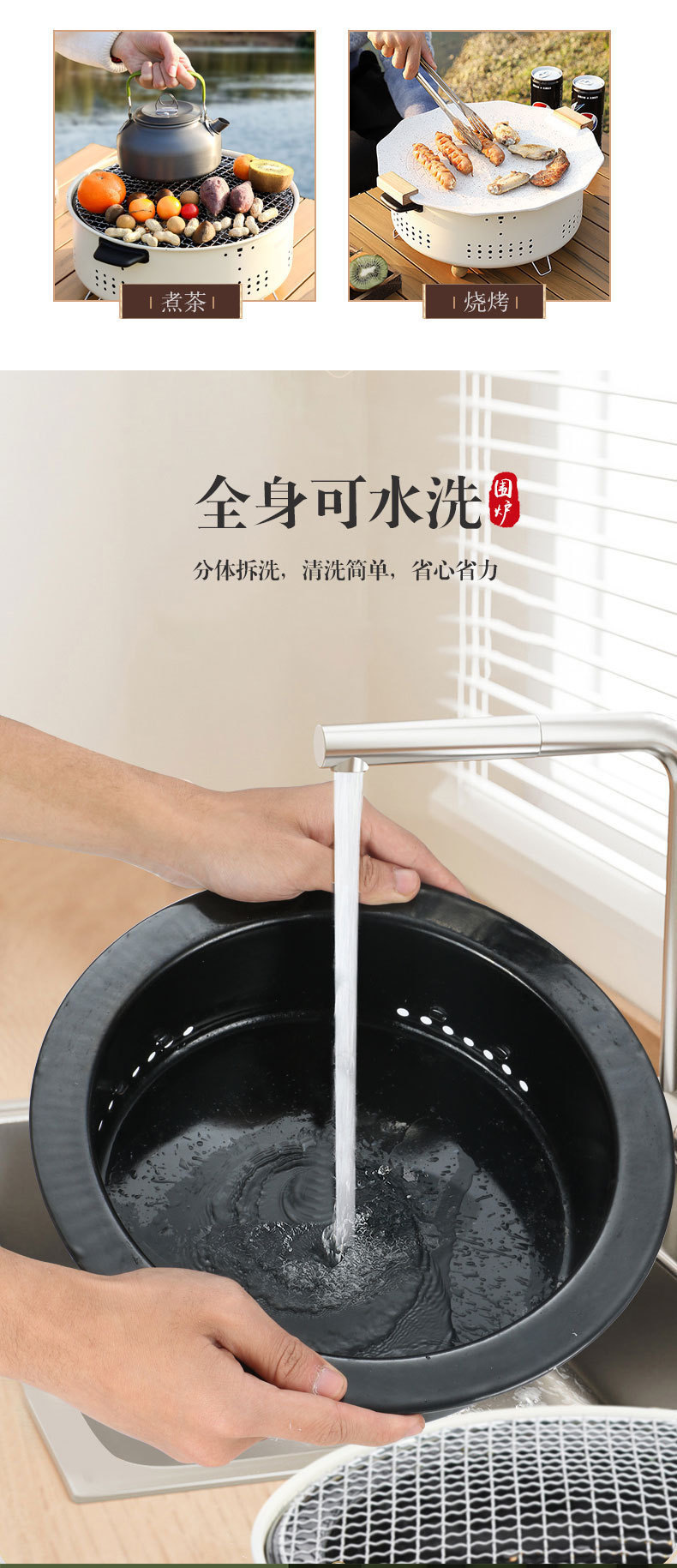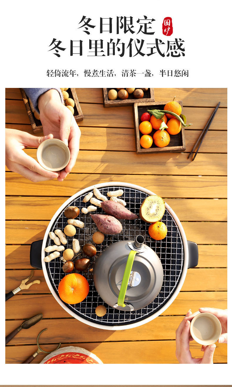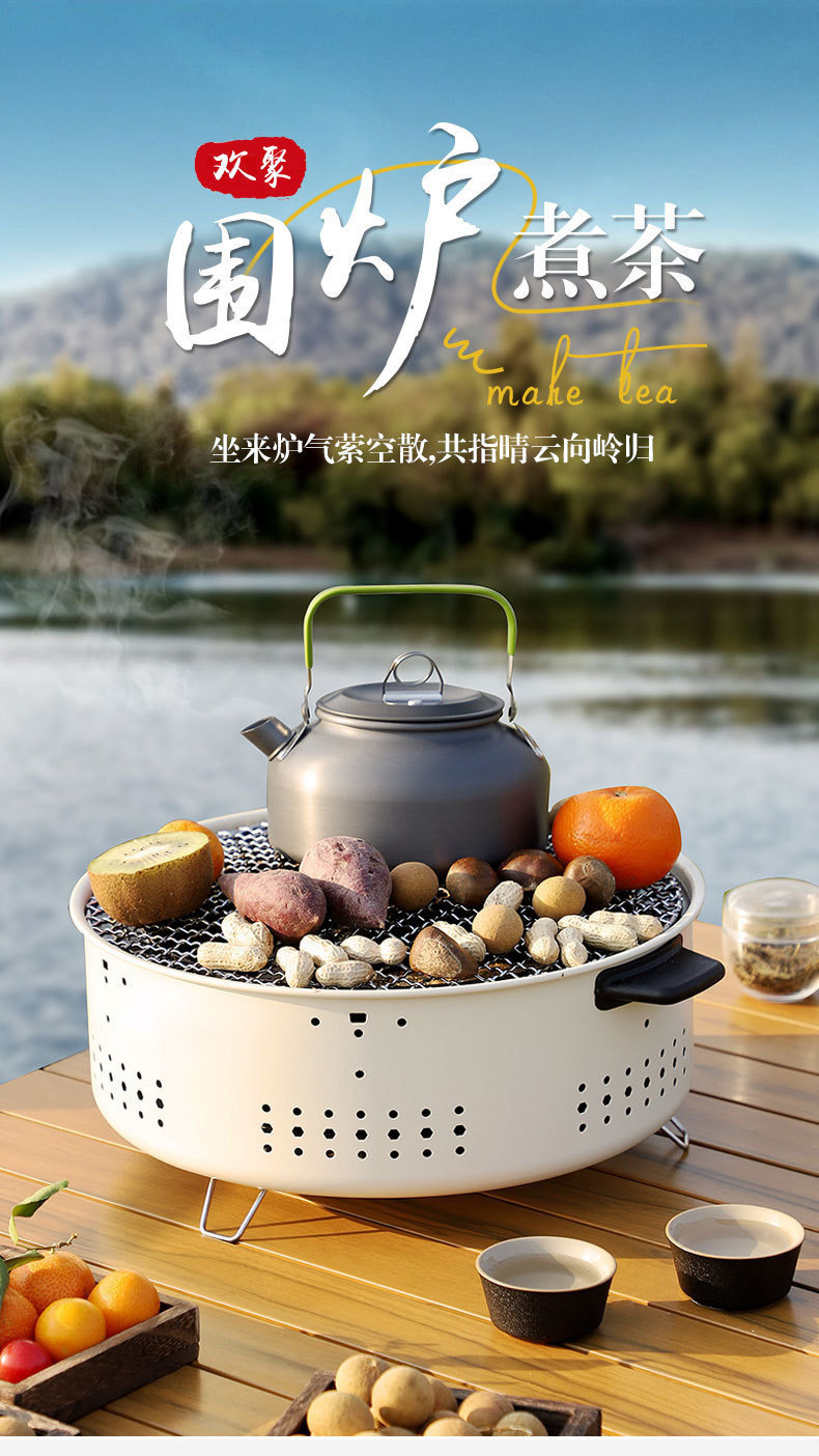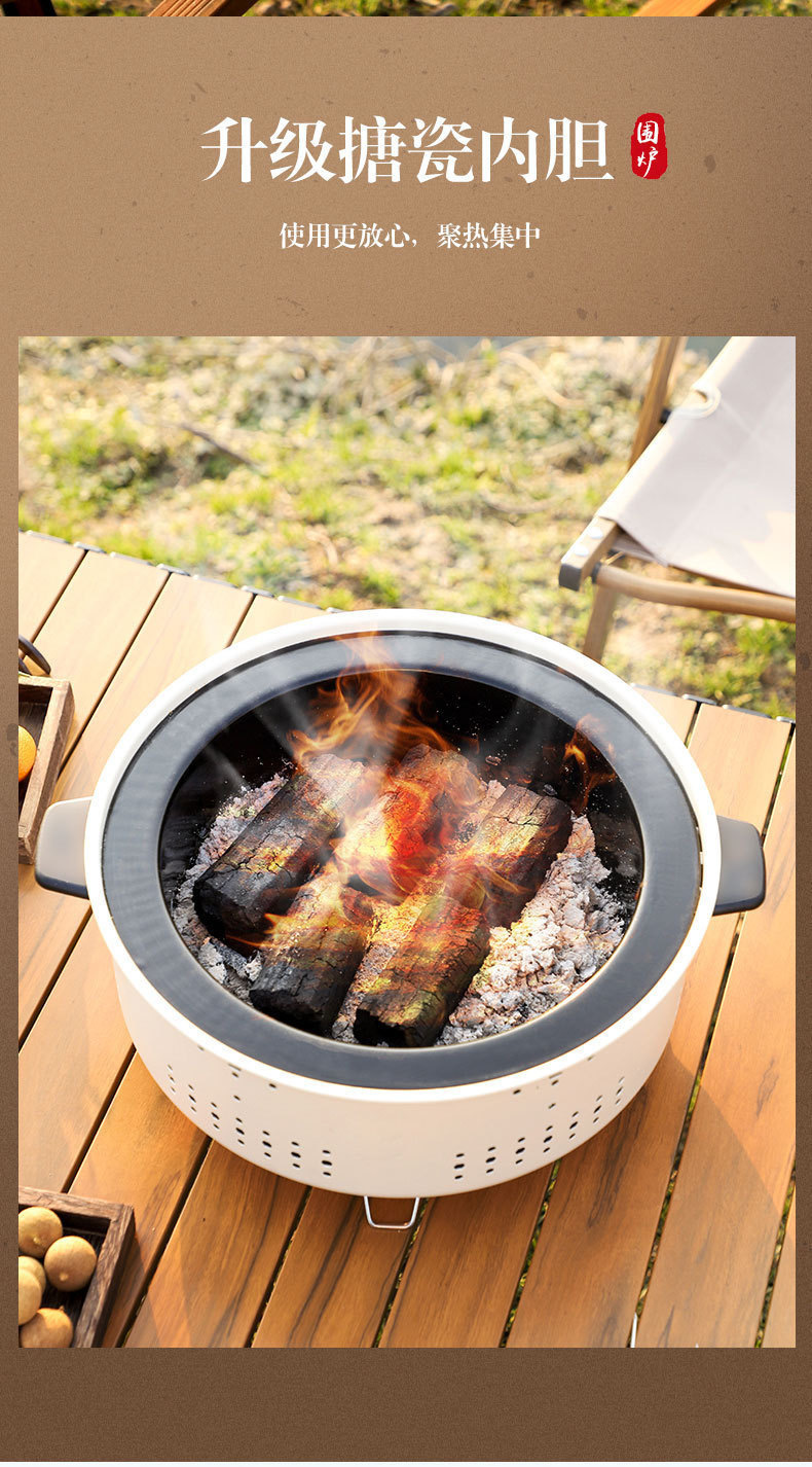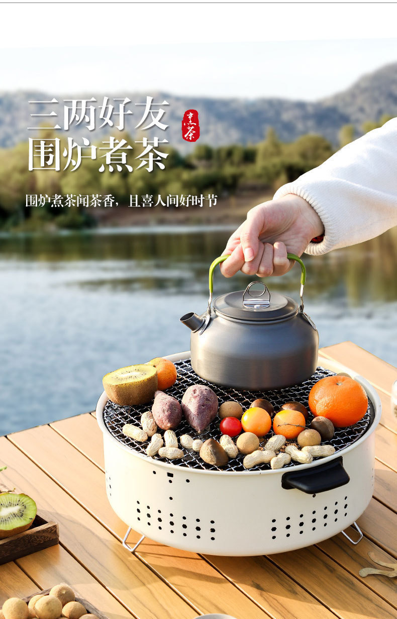 路悠悠圆形烧烤炉围炉煮茶象牙白ZC0768