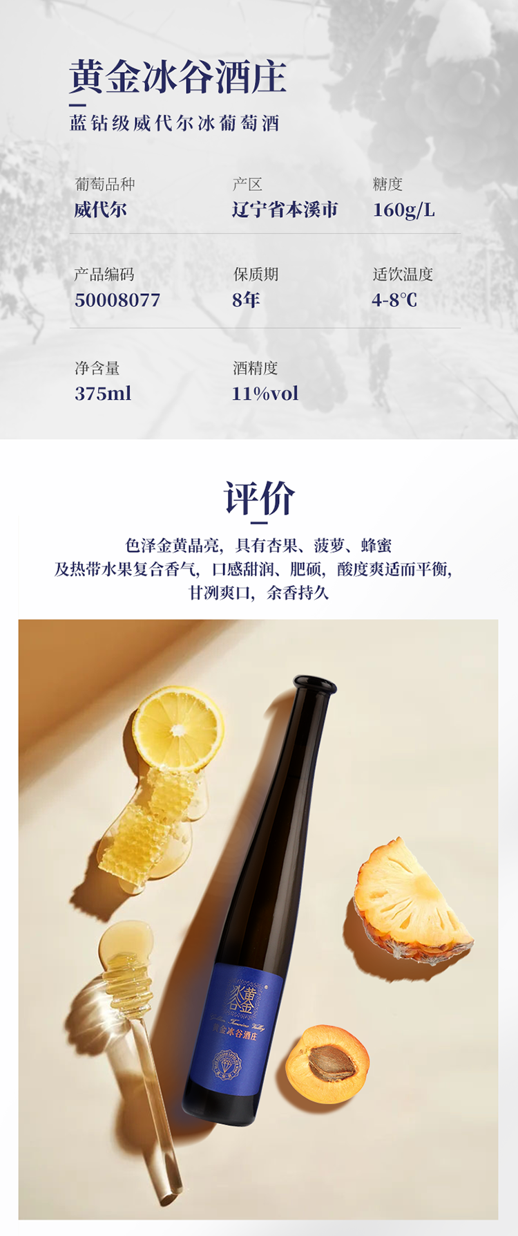 张裕黄金冰谷蓝钻级威代尔冰葡萄酒375ml
