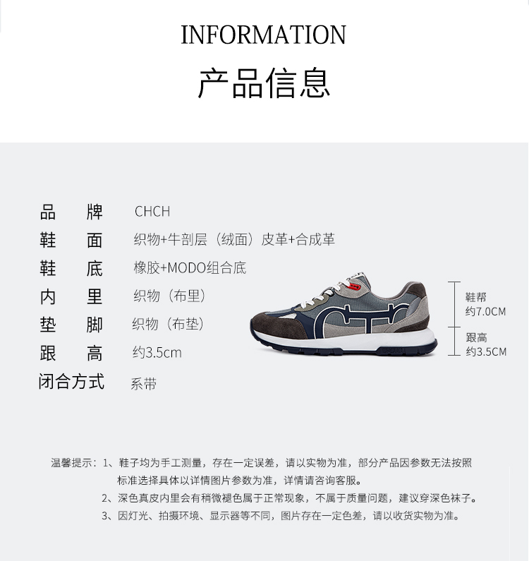 CHCH24春夏新品牛皮拼接时尚大气男士休闲平衡鞋CO1A2011