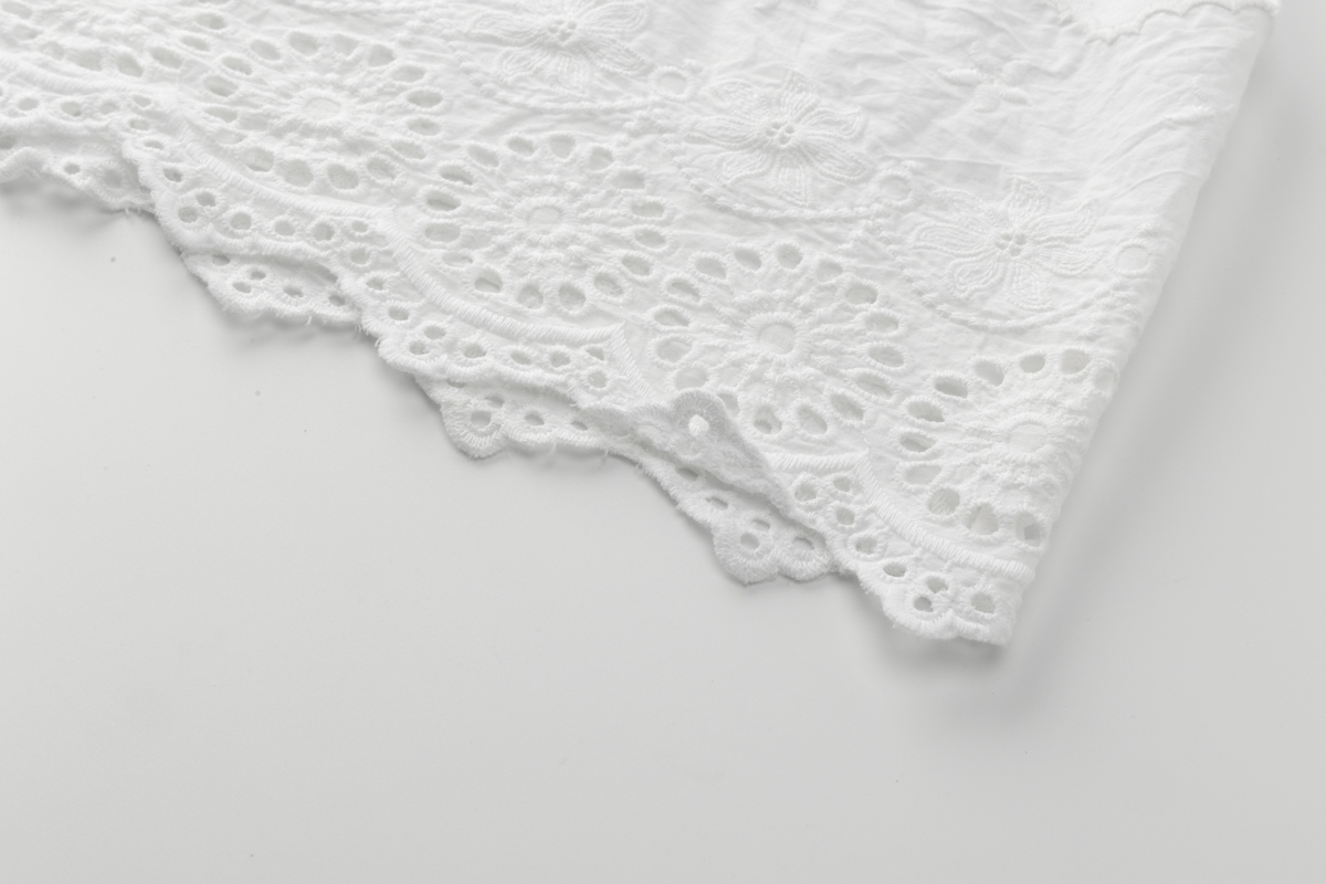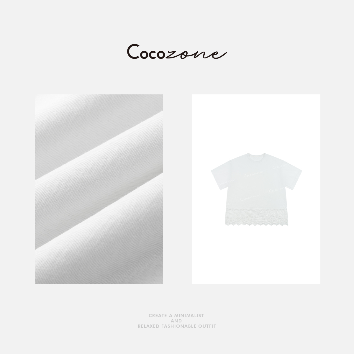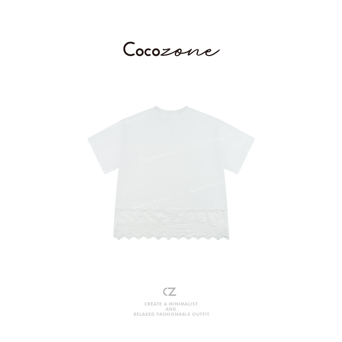 COCO ZONE 刘一一 棉麻混纺设计感拼接镂空短袖T恤ACD2A0266