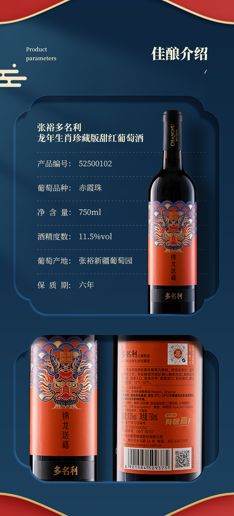 张裕多名利锦龙送福龙年珍藏甜红葡萄酒750ml