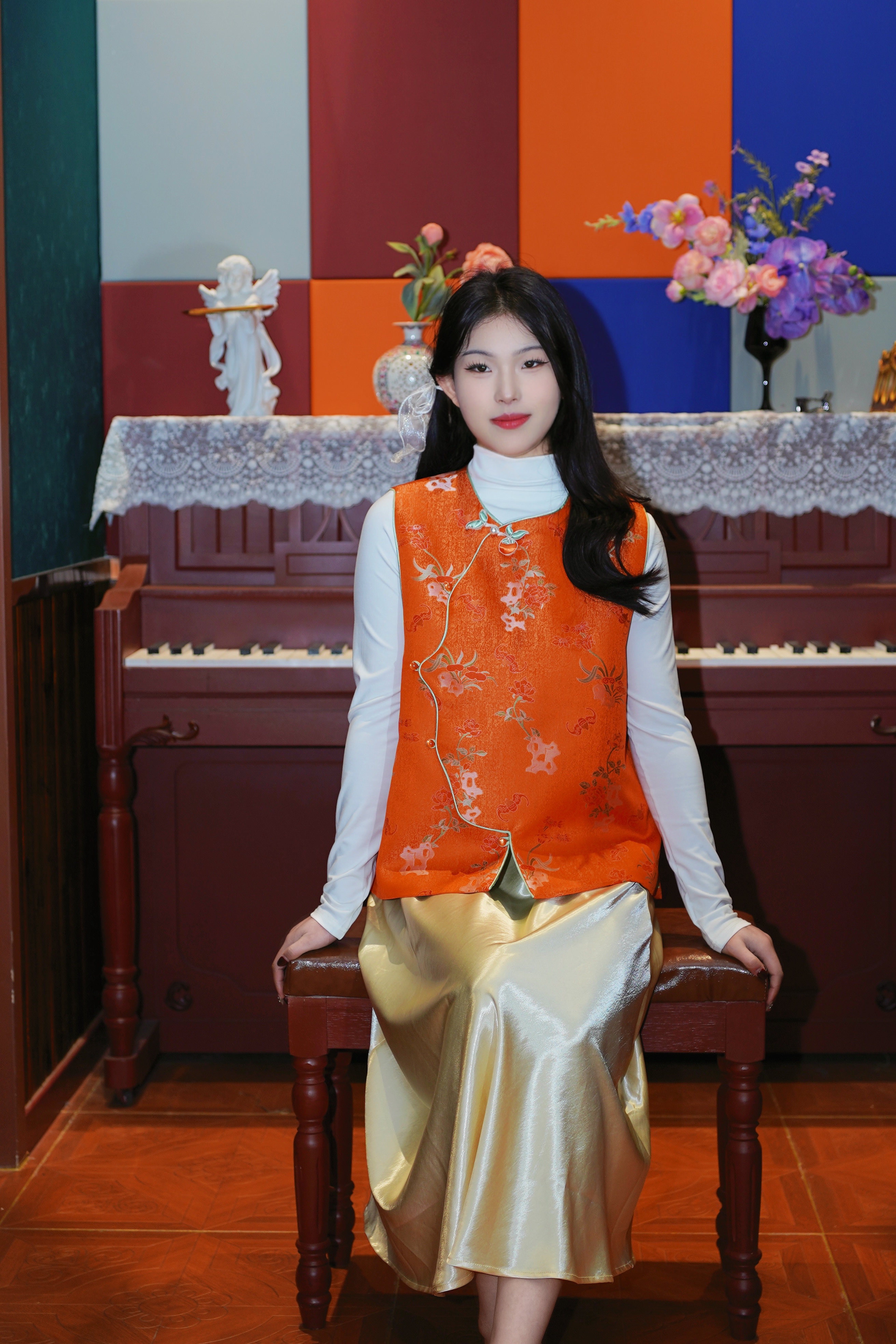 【岱赭】非遗宋锦|织锦缎马甲新中式人丝人棉国风牡丹提花唐装坎肩马甲