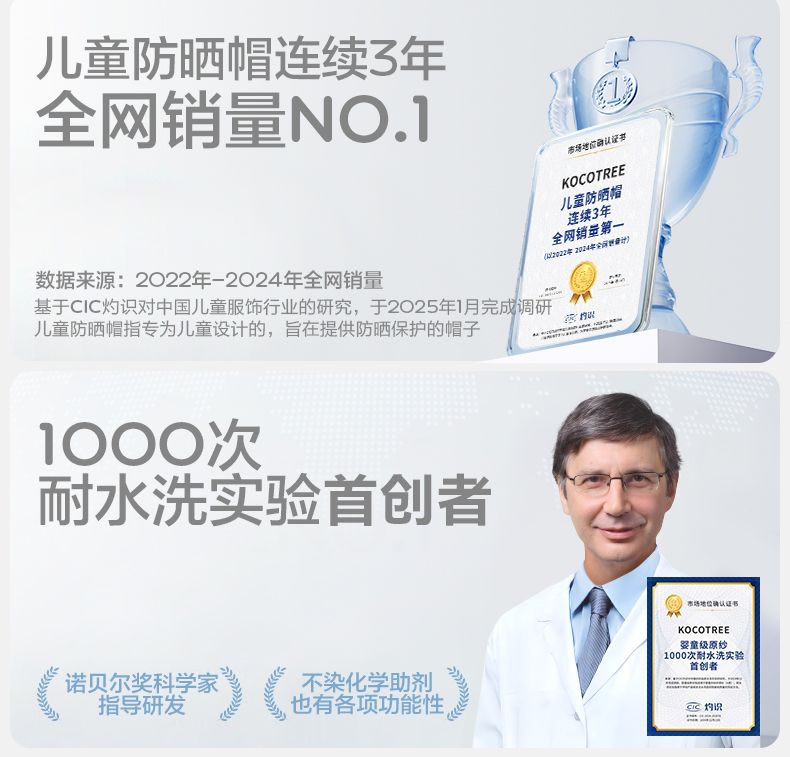 KK树儿童防晒帽防紫外线宝宝遮阳帽夏季男童女孩渔夫帽原纱大帽檐果果岛呼吸盆帽