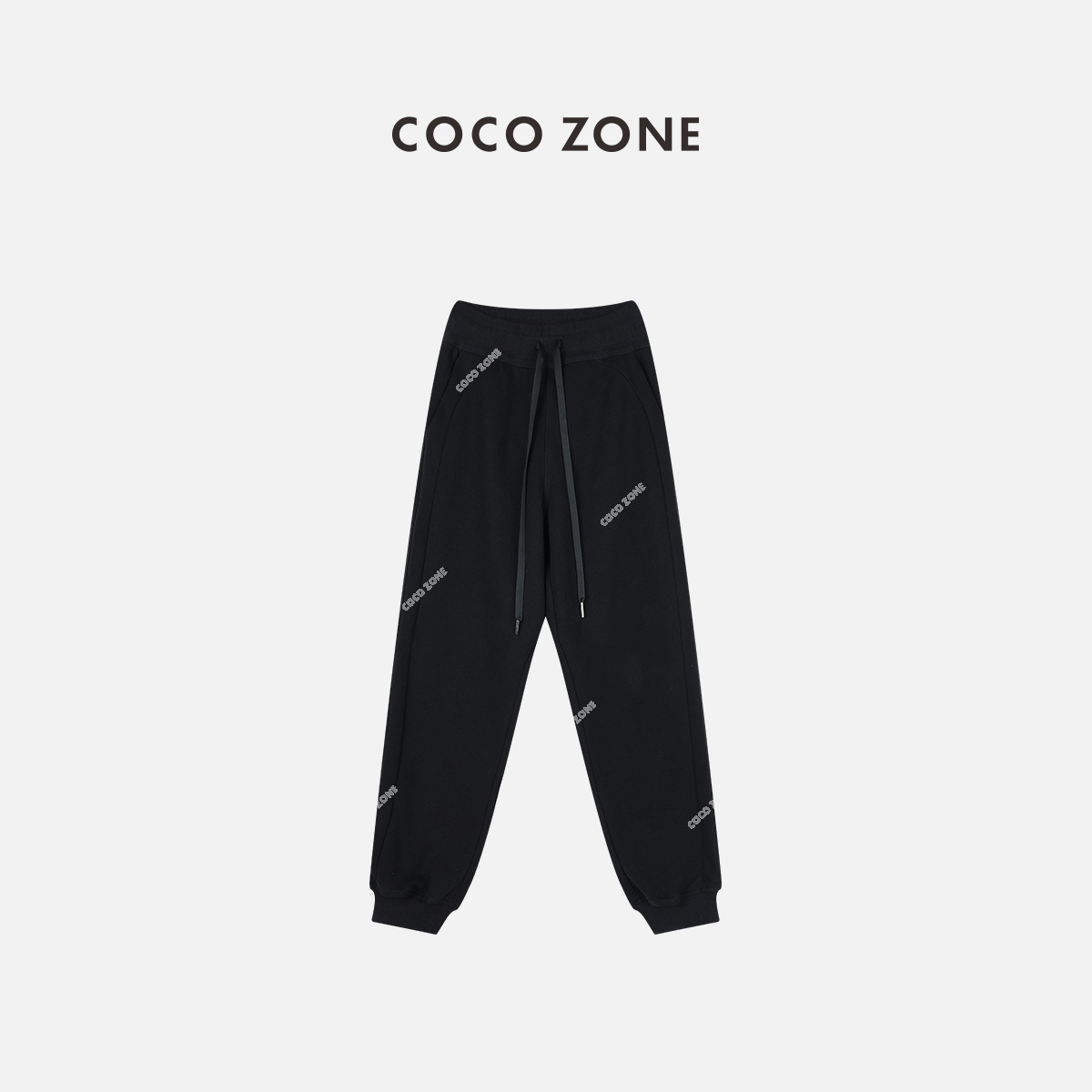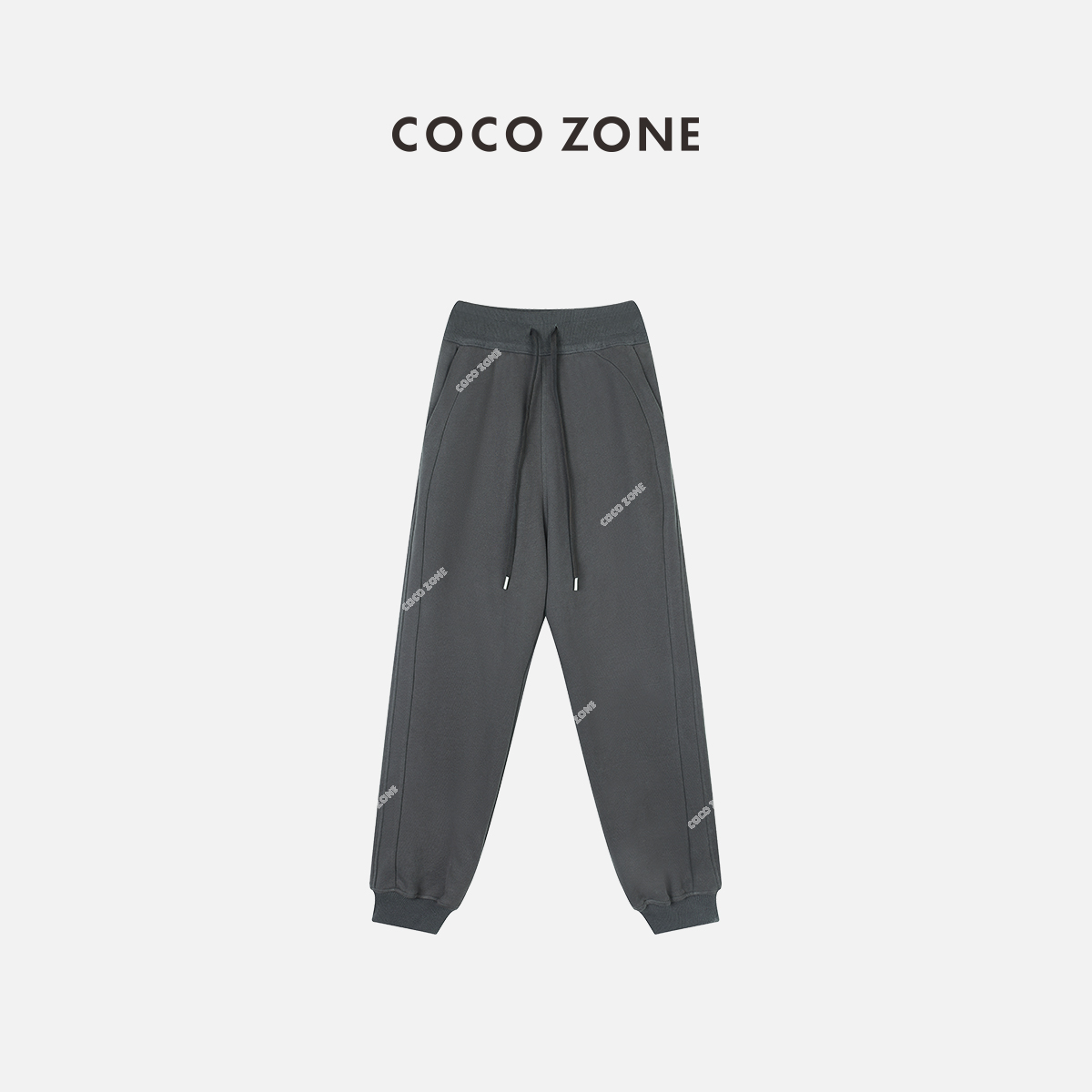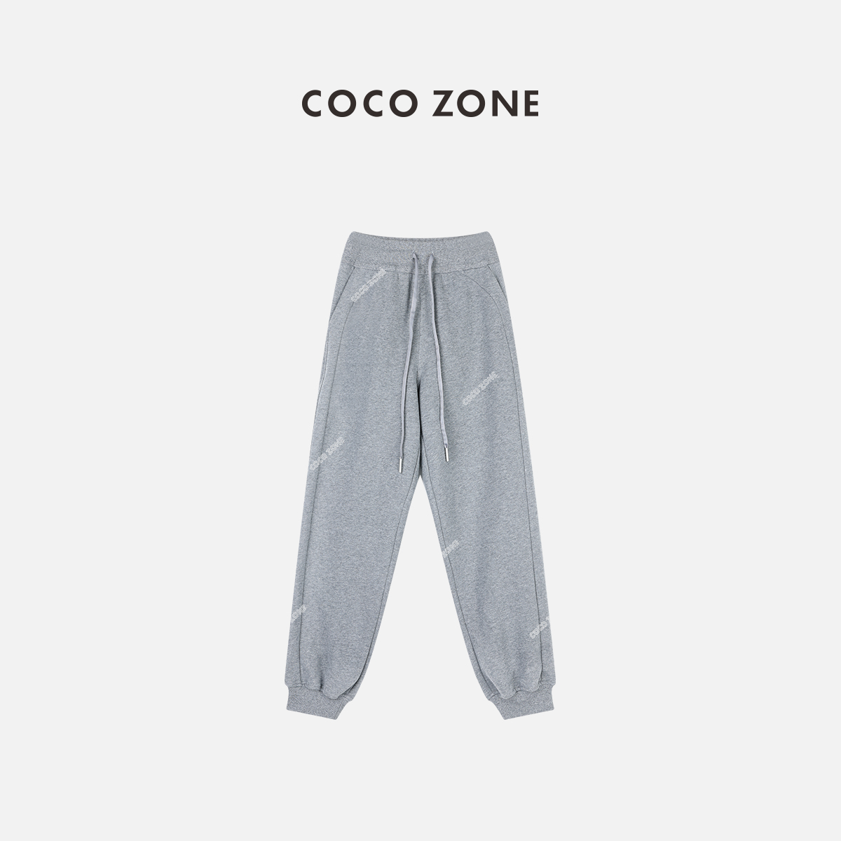 COCO ZONE美拉德春秋松紧腰裤显瘦束脚阔腿直筒裤23C30126