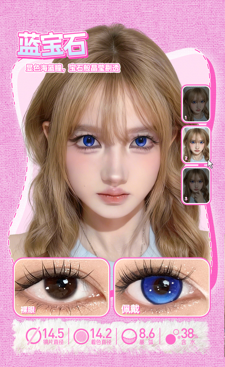 新款【蓝宝石】14.5大直径半年抛美瞳1片装