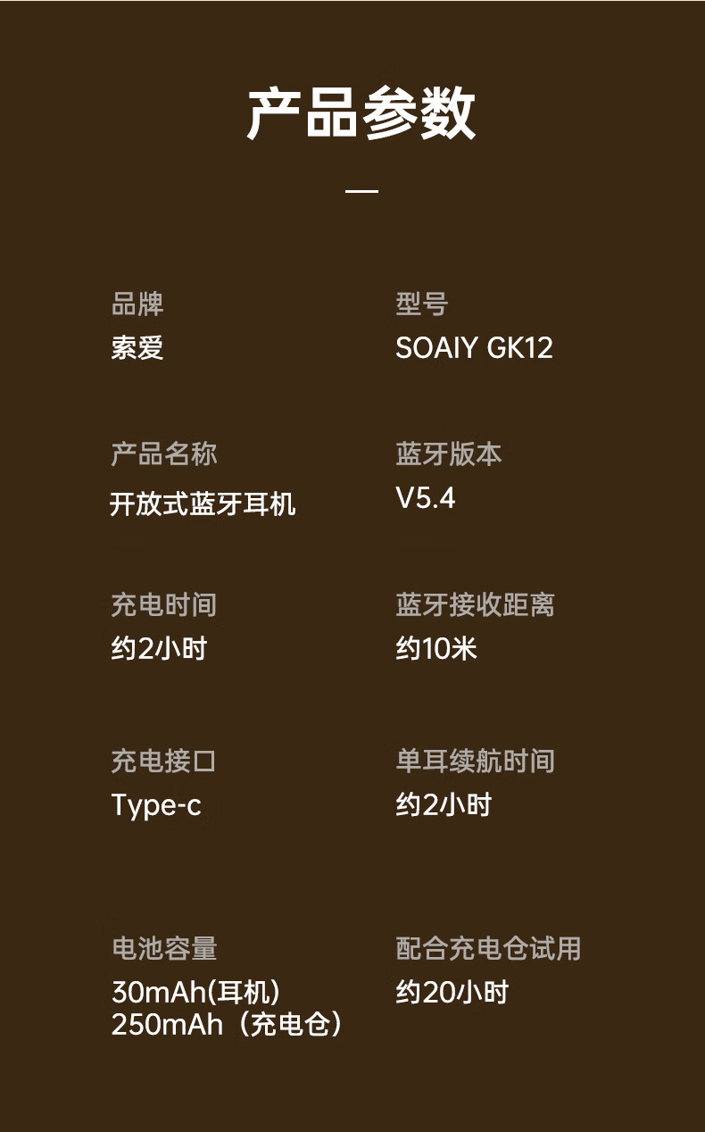 索爱夹耳气传导蓝牙耳机 GK12鎏金粉