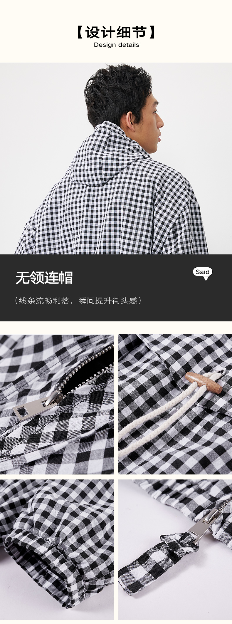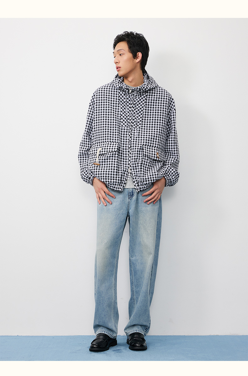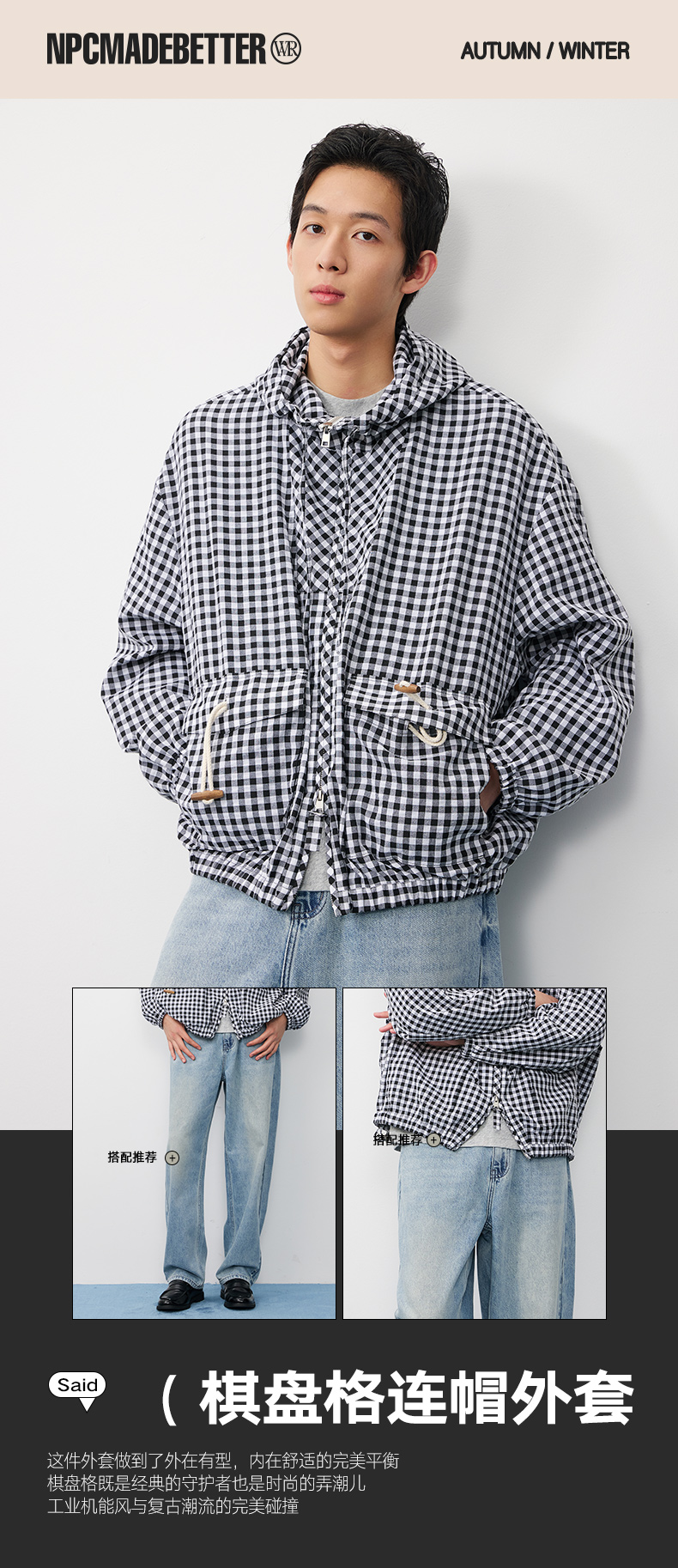 潮牌棋盘格连帽外套男休闲百搭秋季上新NP58TJ19