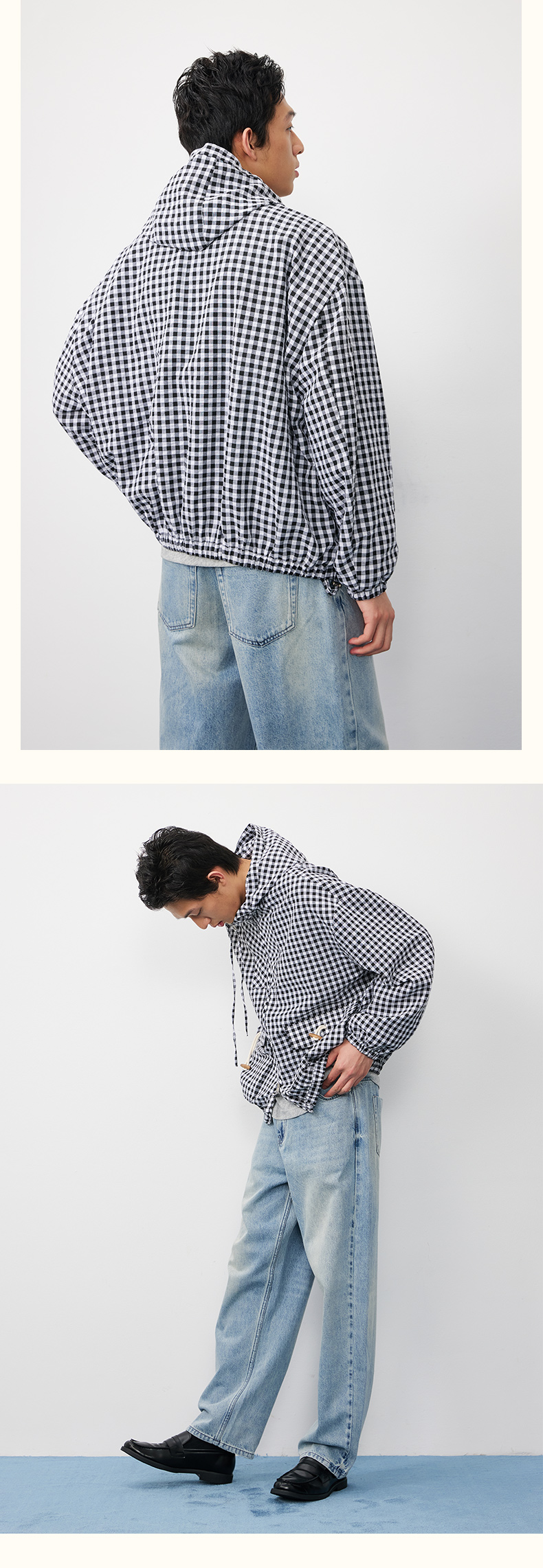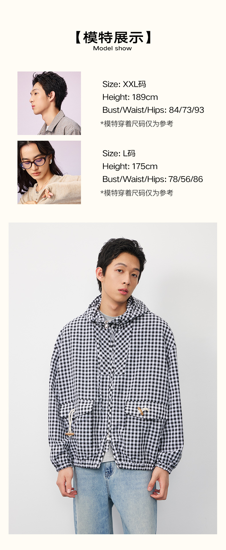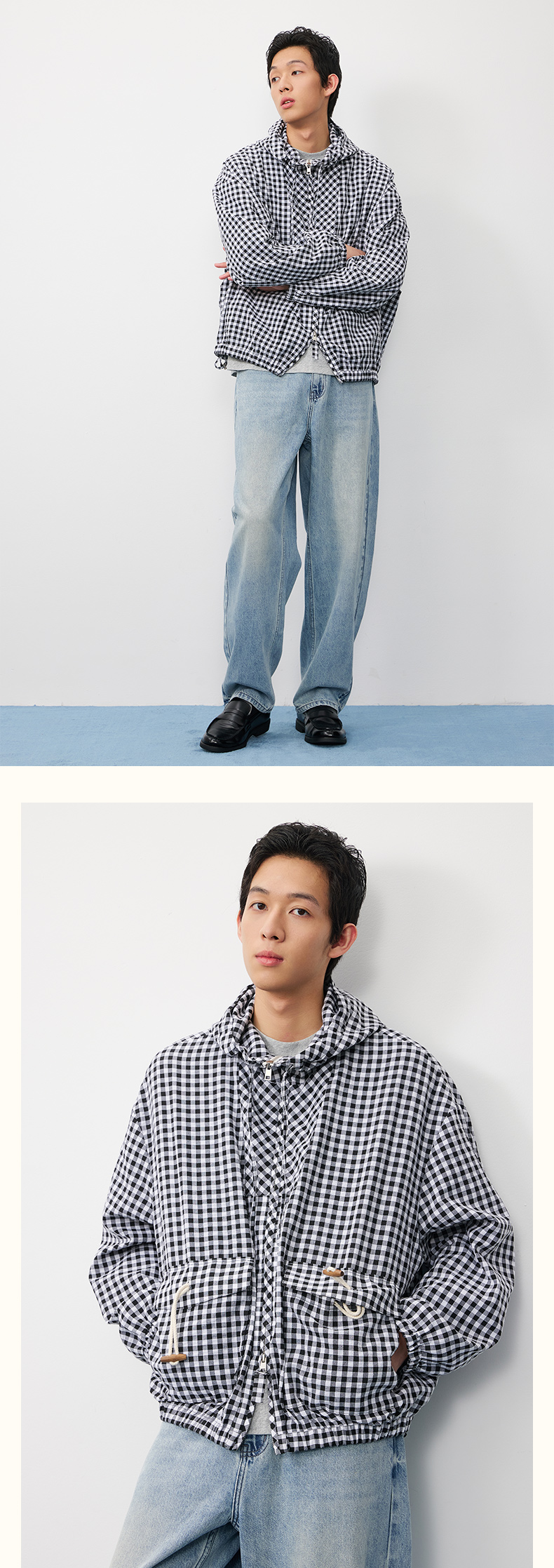 潮牌棋盘格连帽外套男休闲百搭秋季上新NP58TJ19