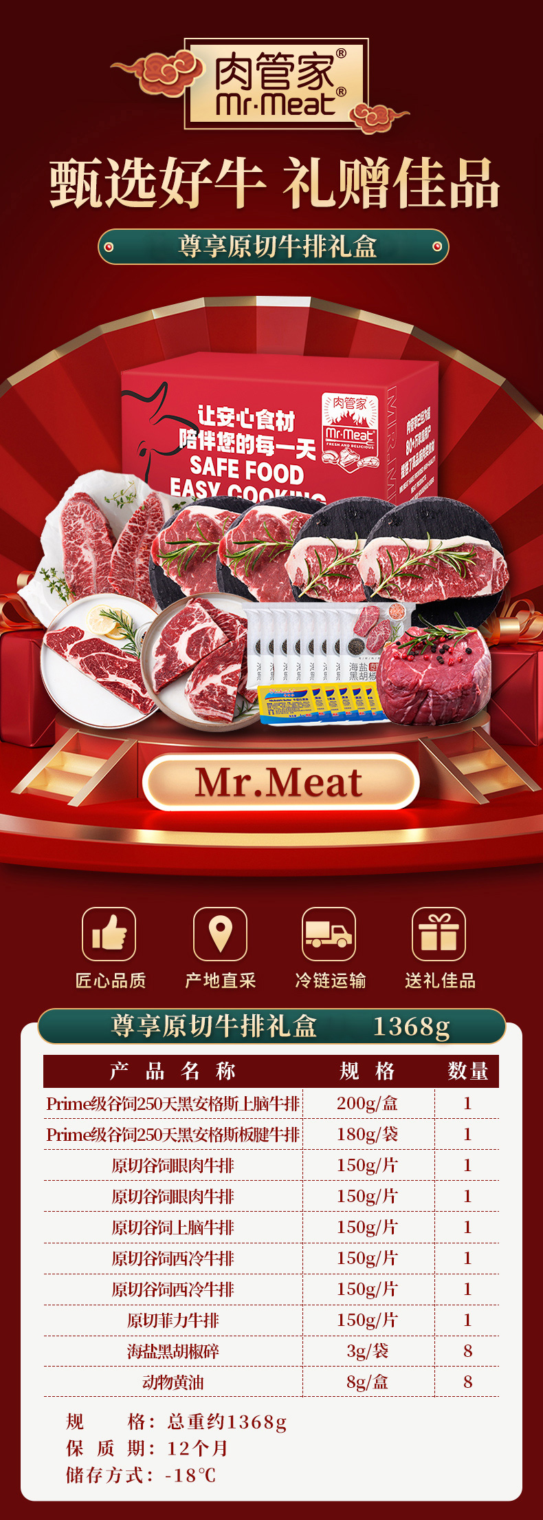 肉管家Mr.Meat 尊享原切牛排礼盒598型 1368g(注:冷冻生鲜类商品不退,质量问题只换)
