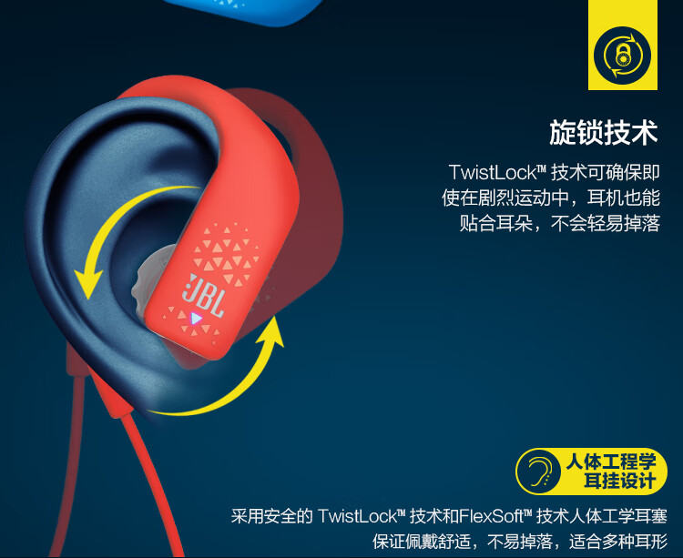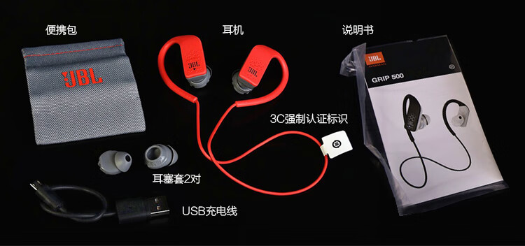 JBL Grip500 半入耳式无线蓝牙运动耳机 Grip500 黑色