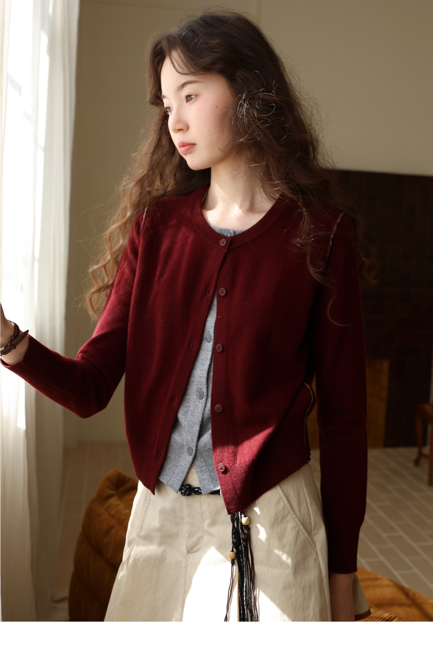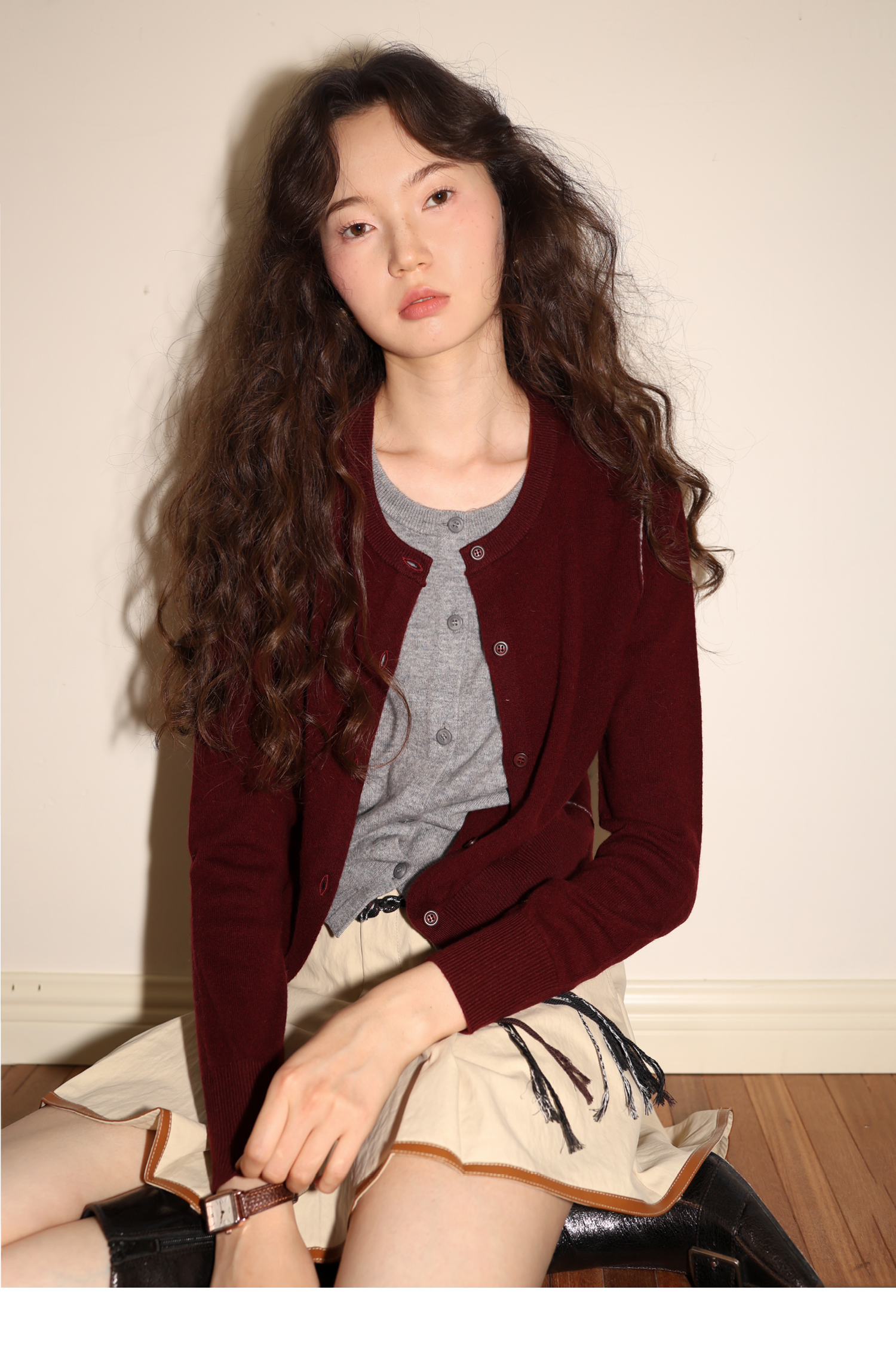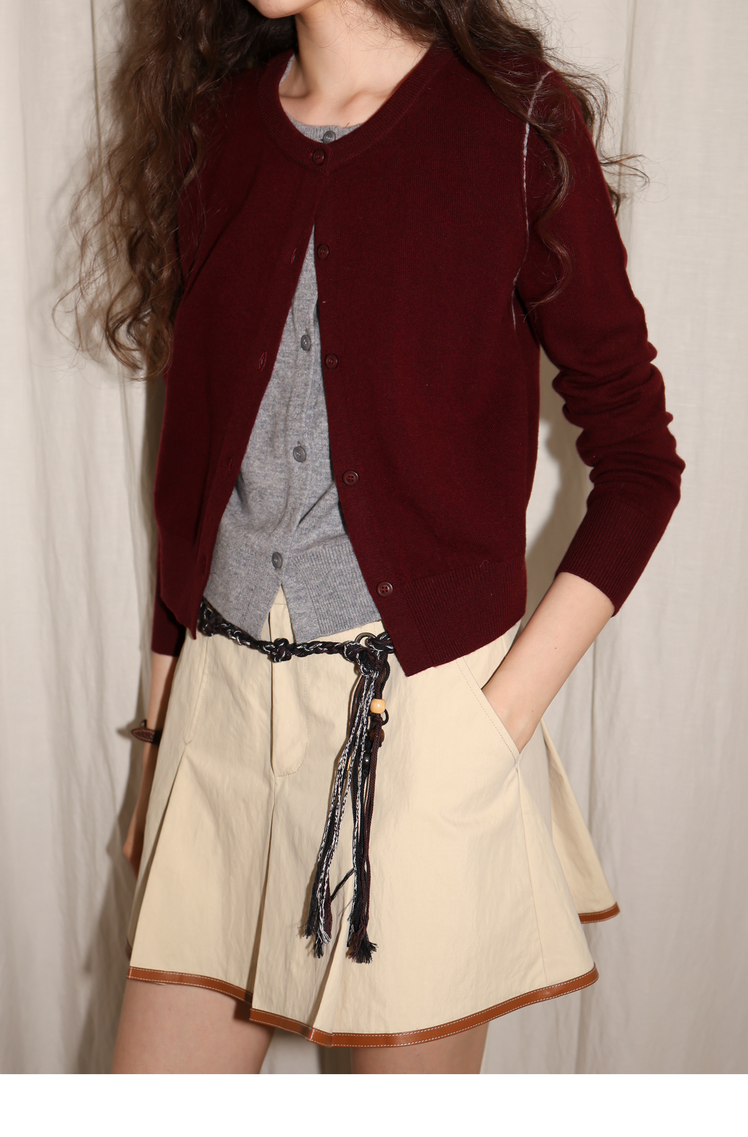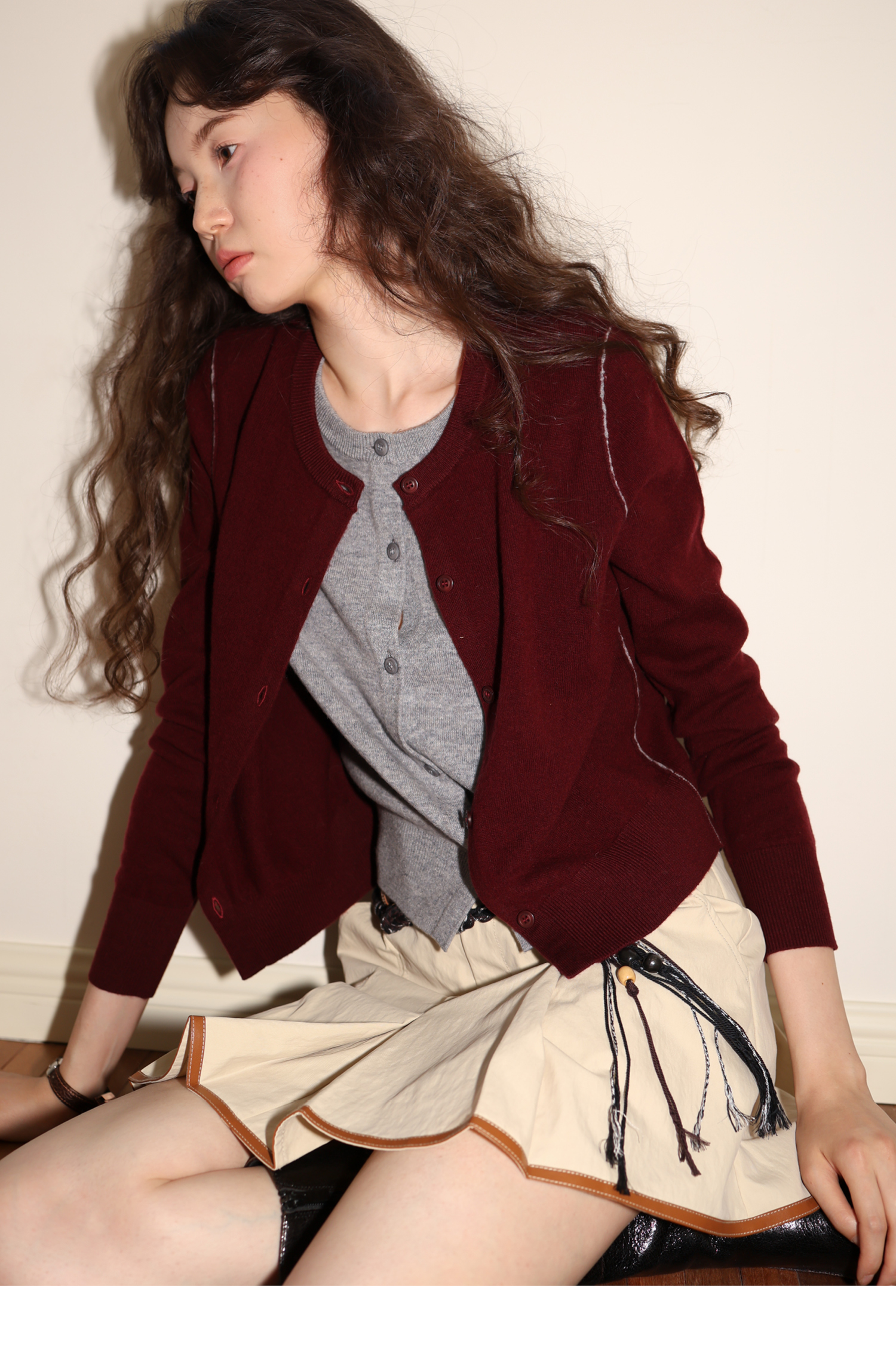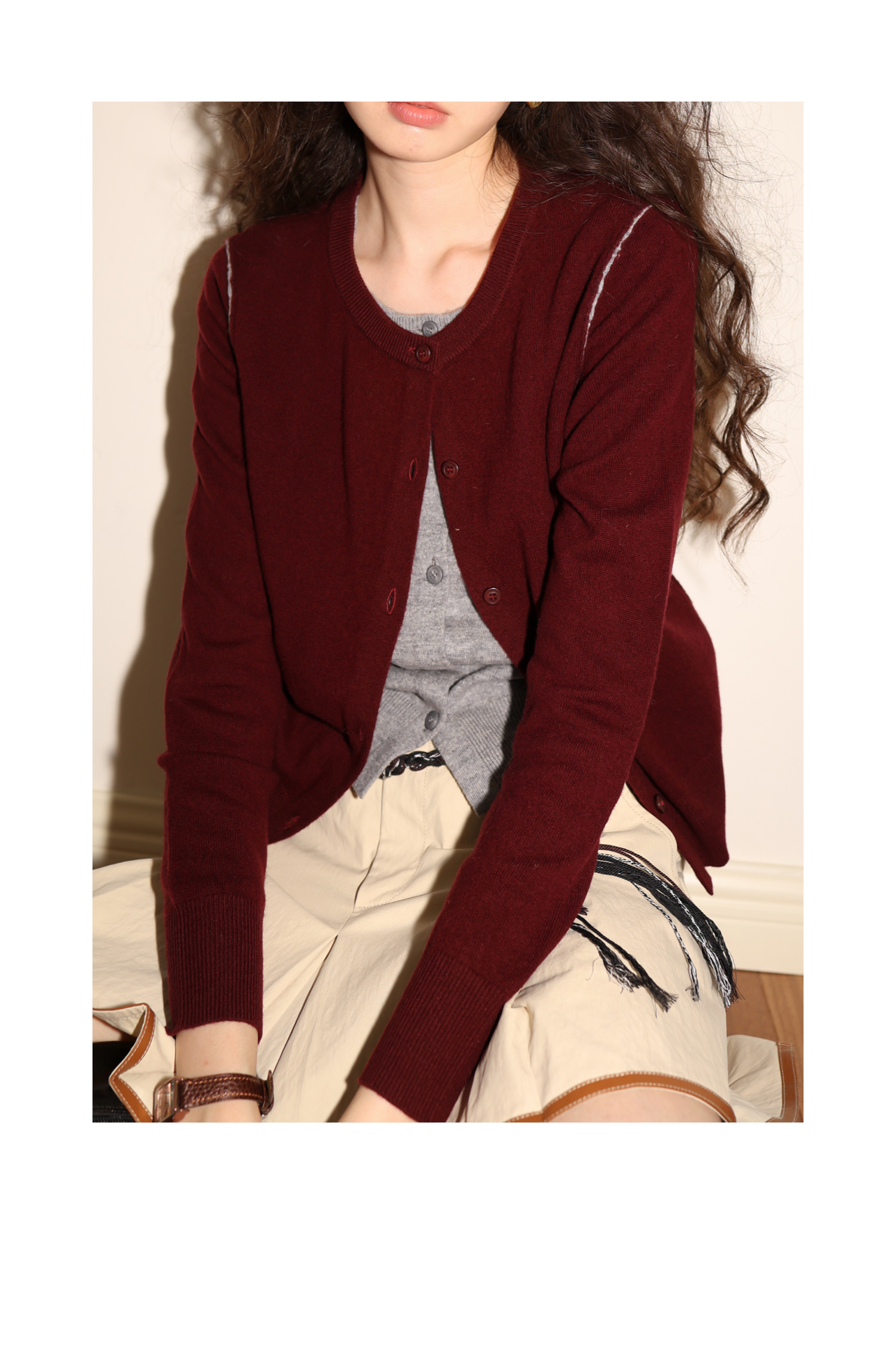【8/6新品】素舶时髦知识分子miu风撞色假两件纯羊毛针织开衫上衣