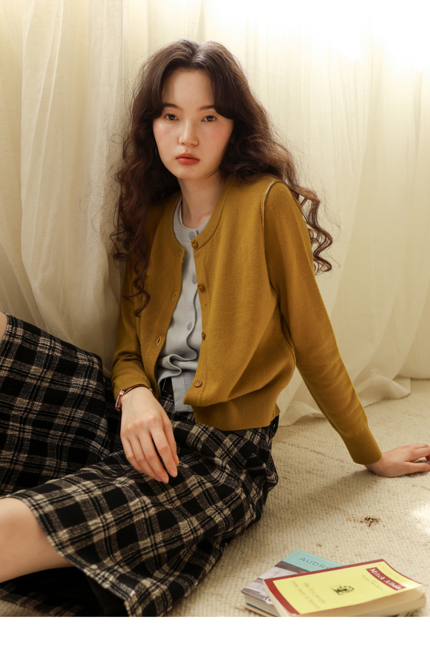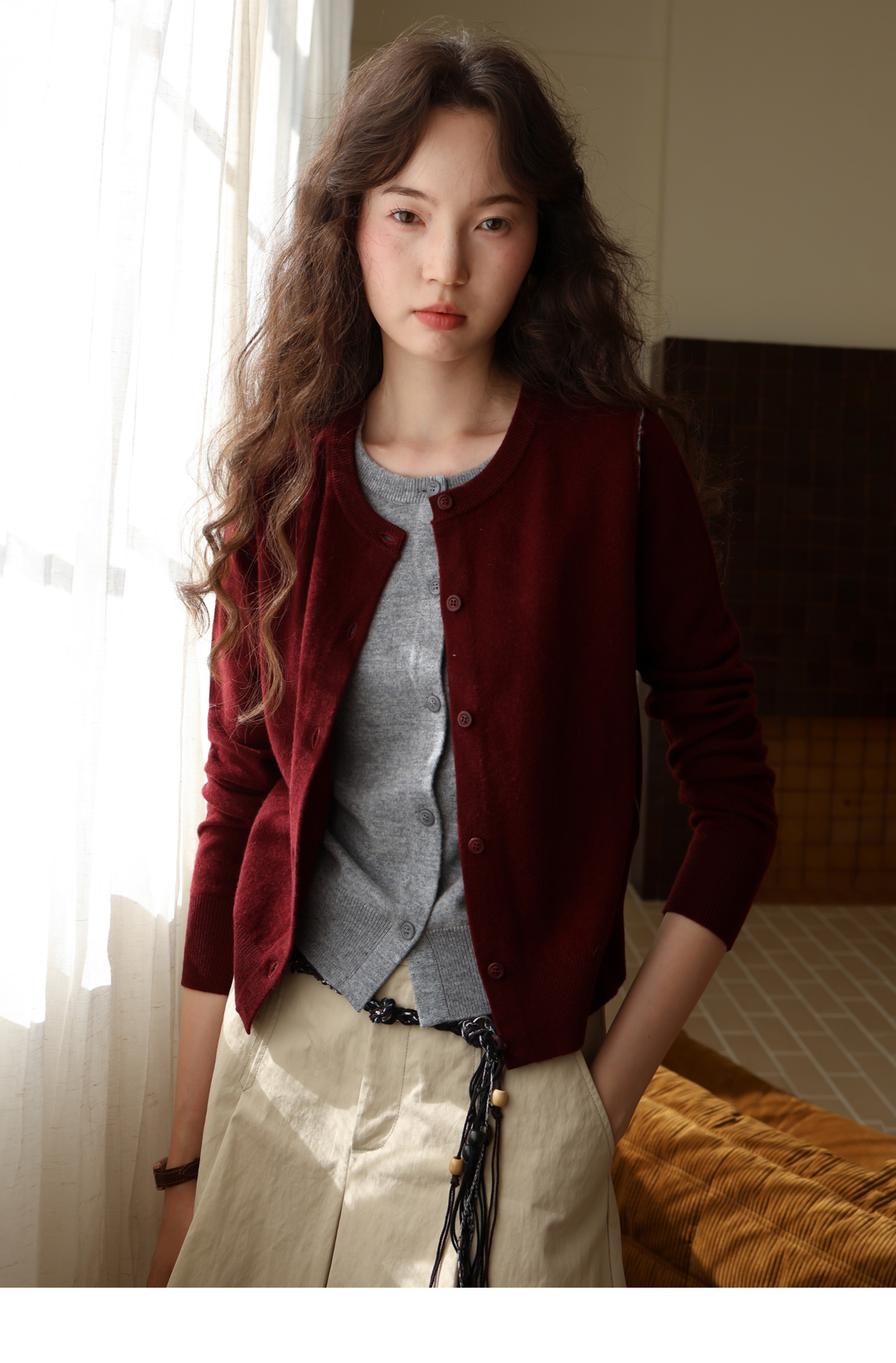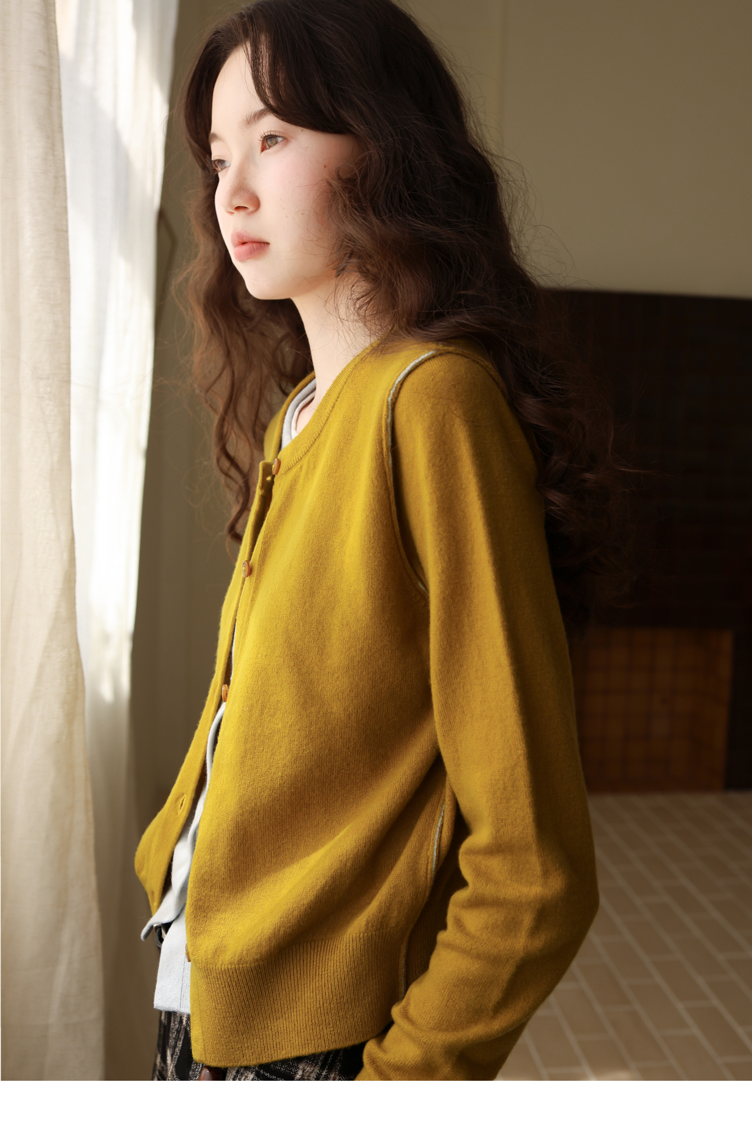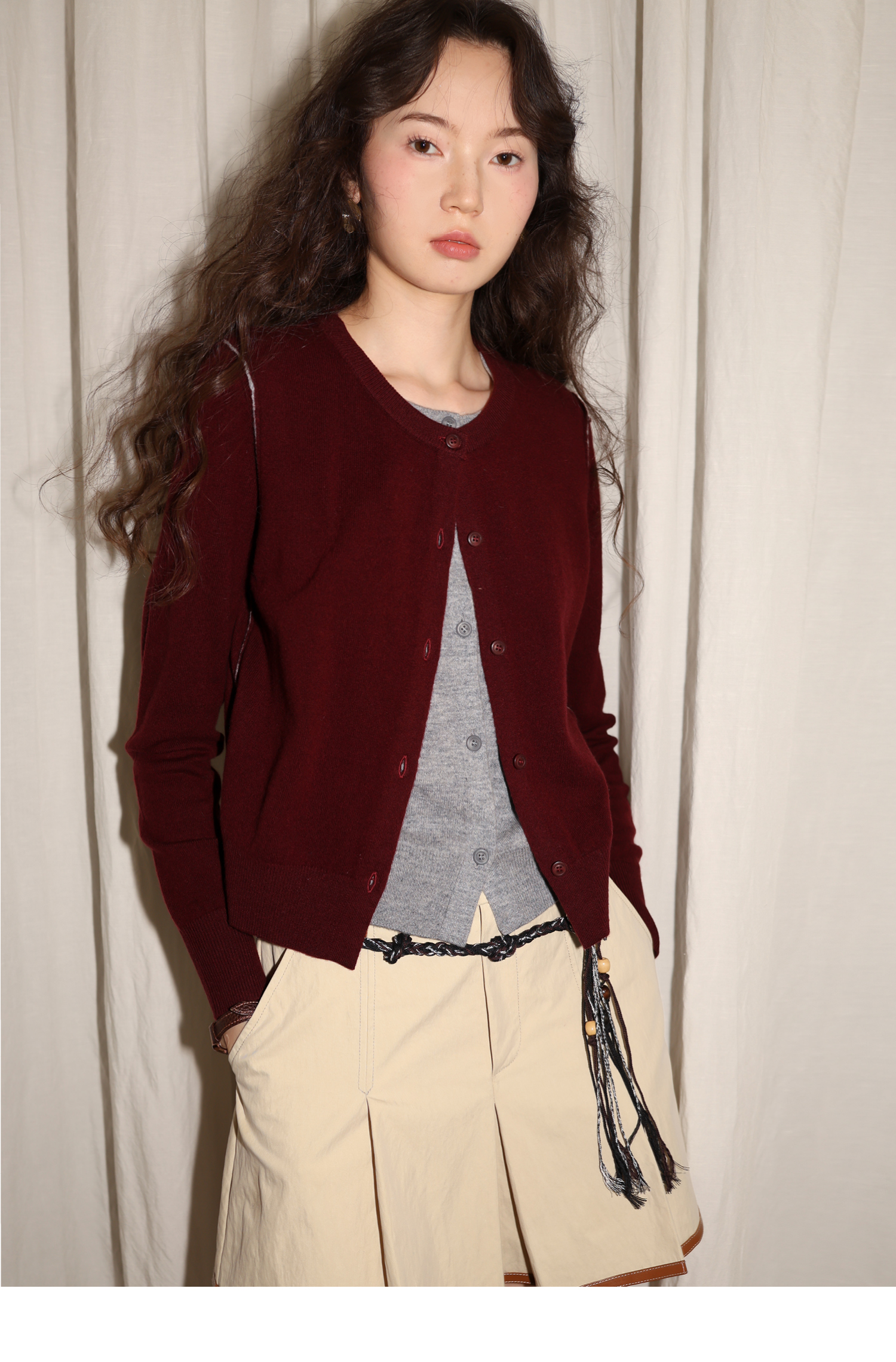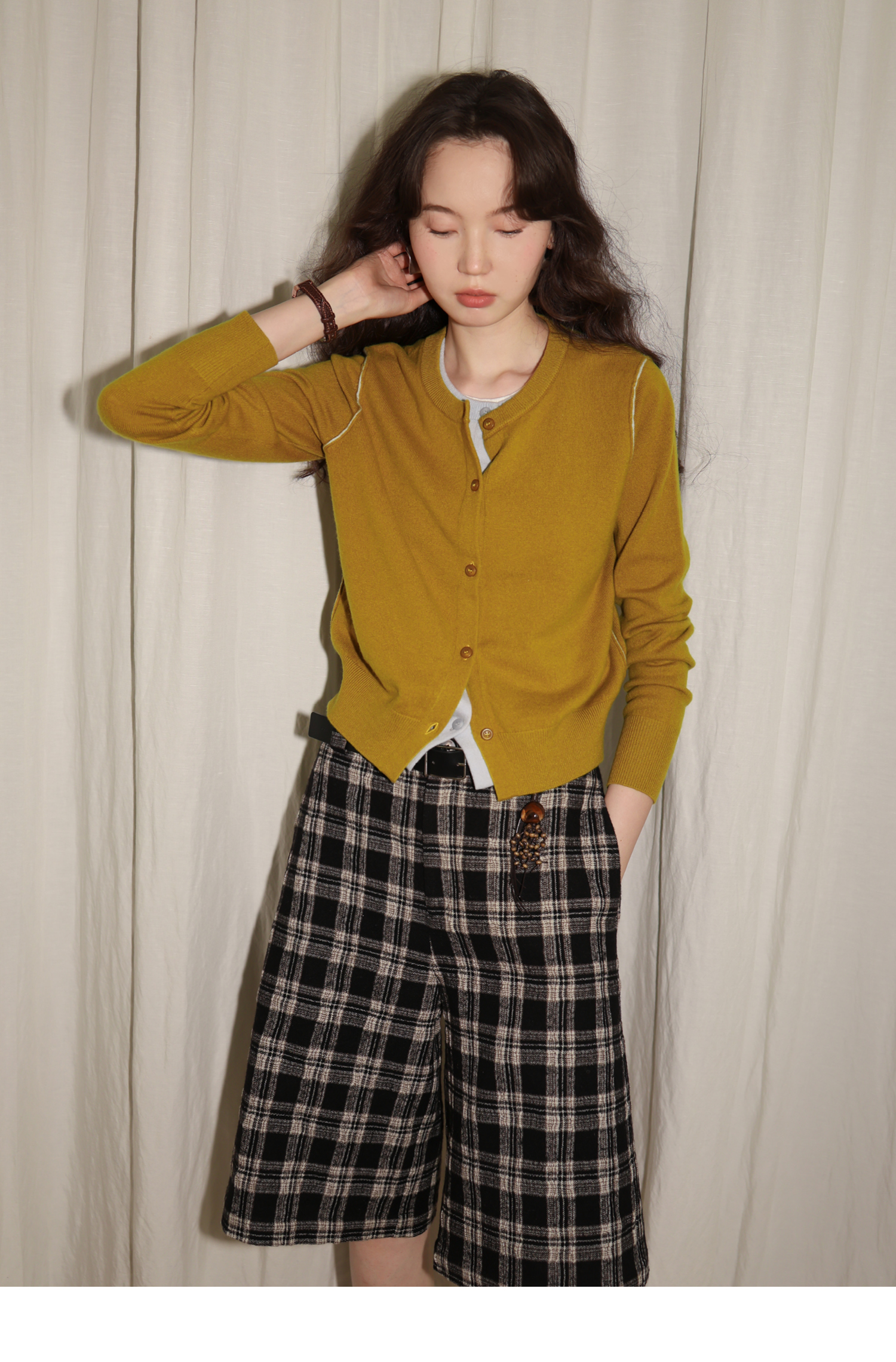 【8/6新品】素舶时髦知识分子miu风撞色假两件纯羊毛针织开衫上衣