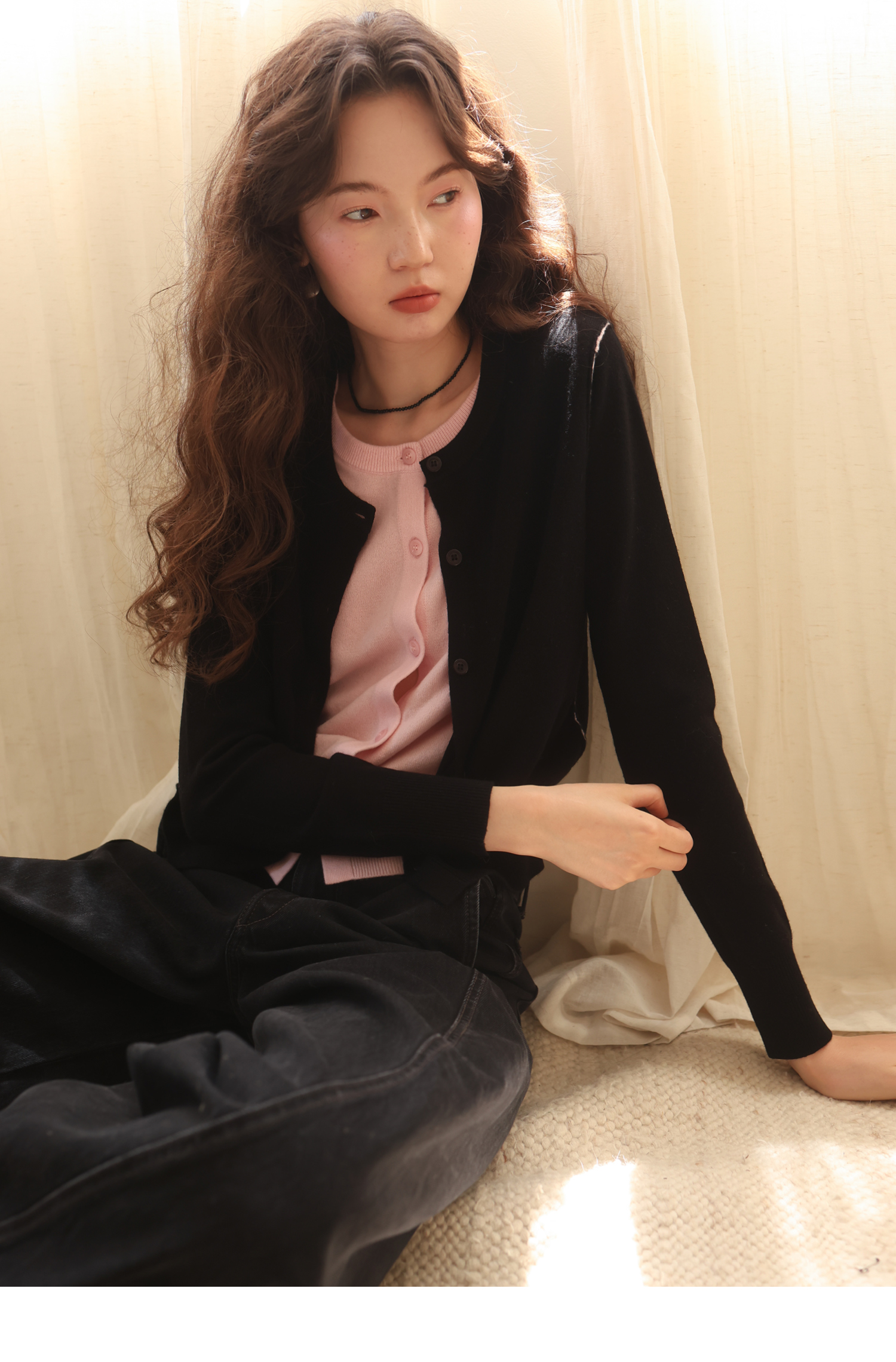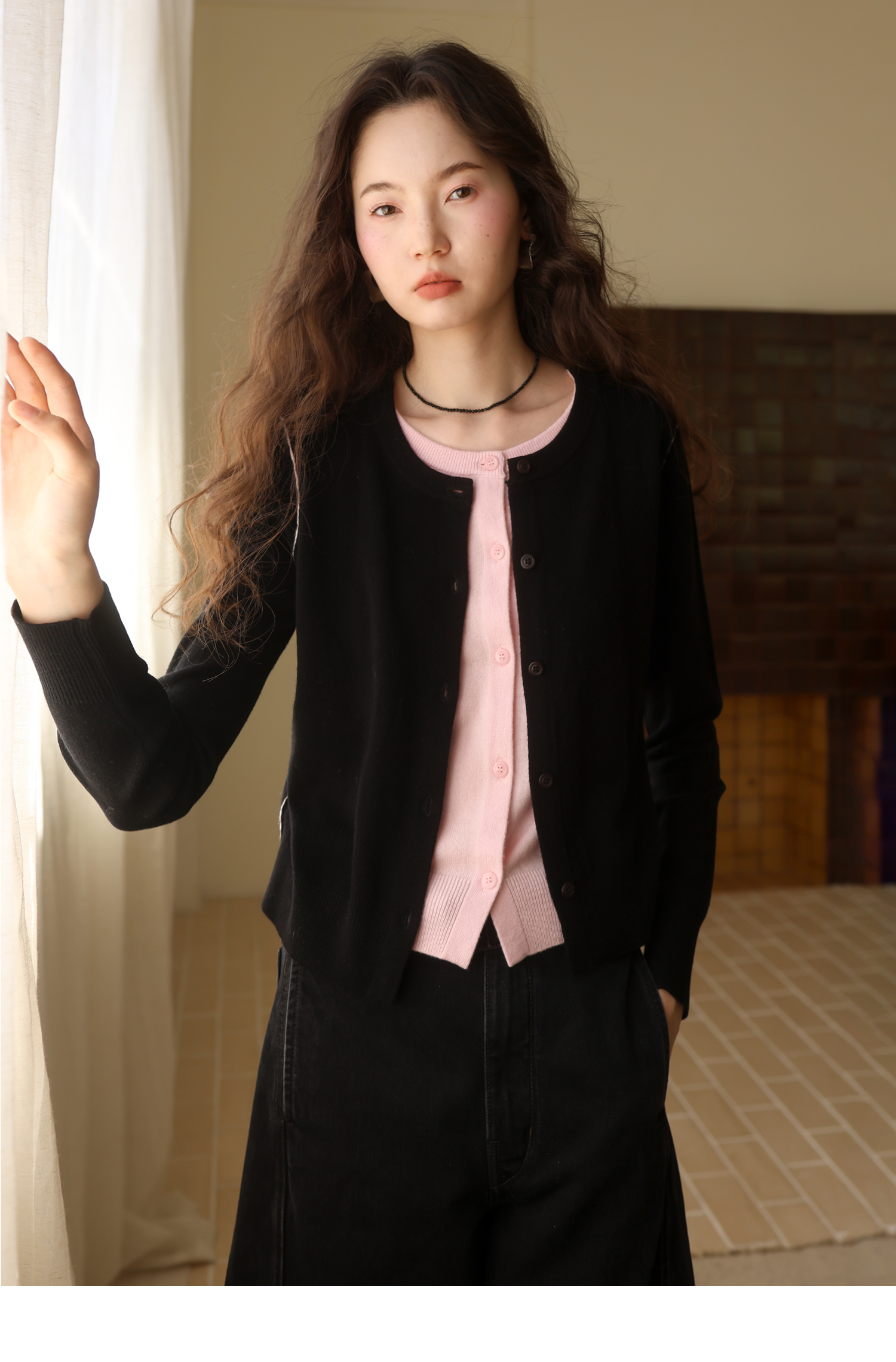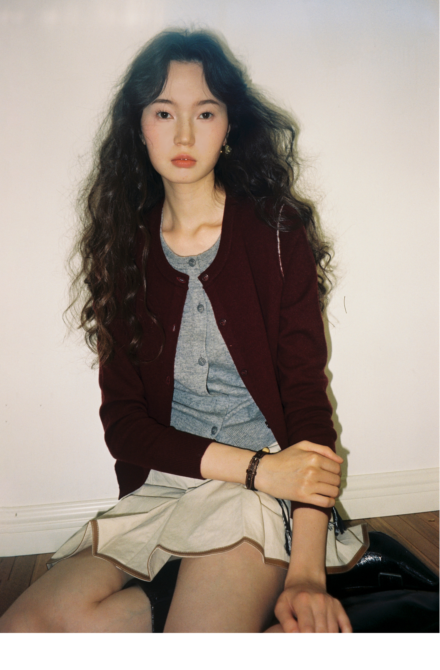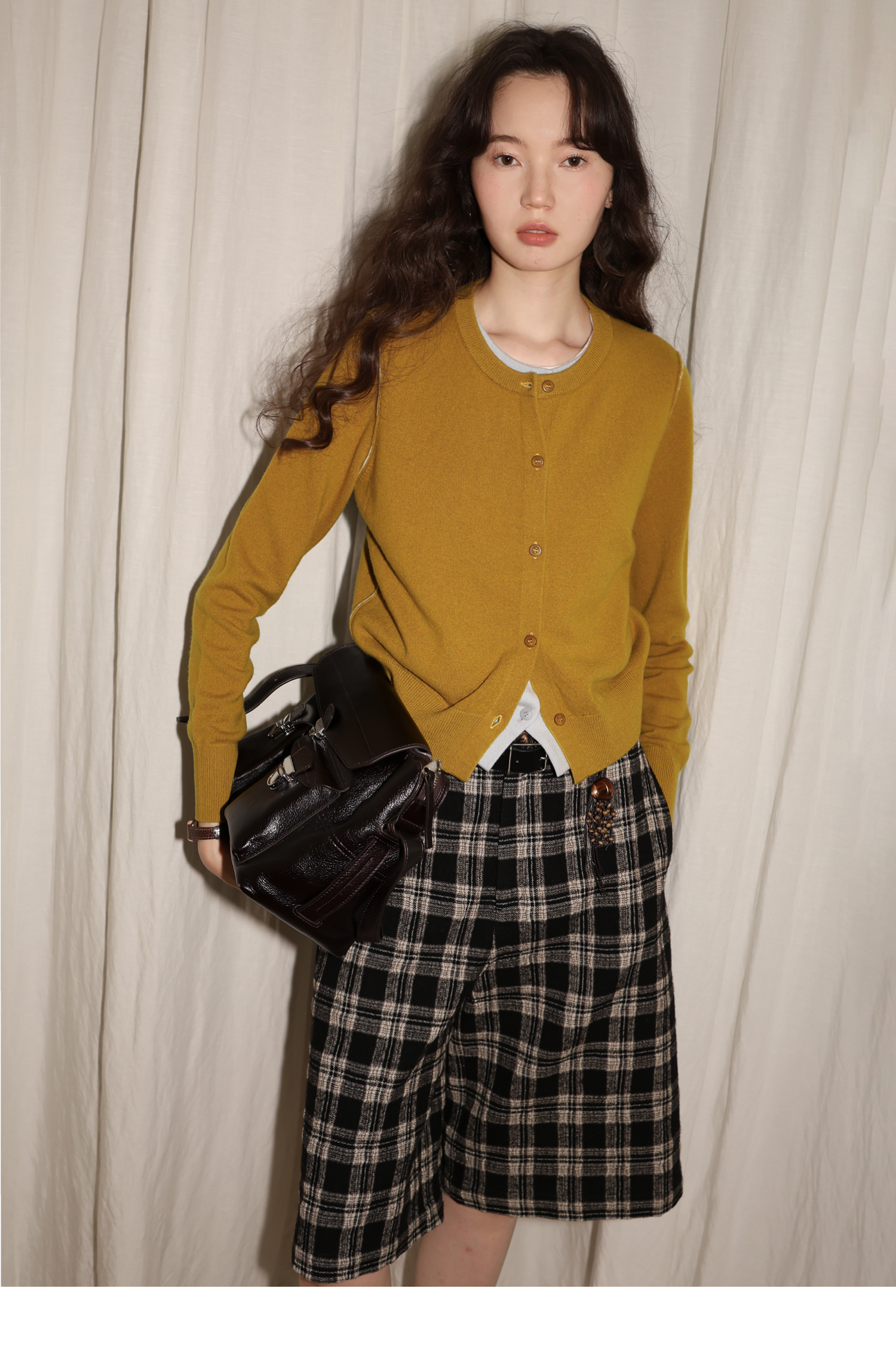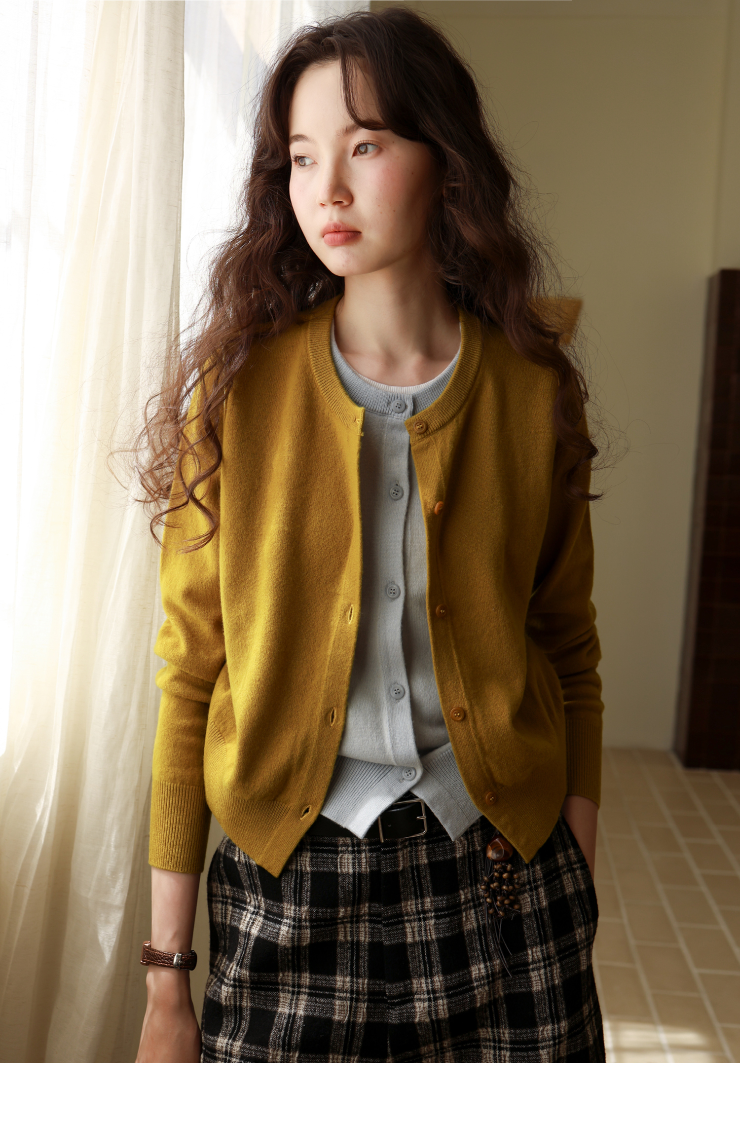 【8/6新品】素舶时髦知识分子miu风撞色假两件纯羊毛针织开衫上衣
