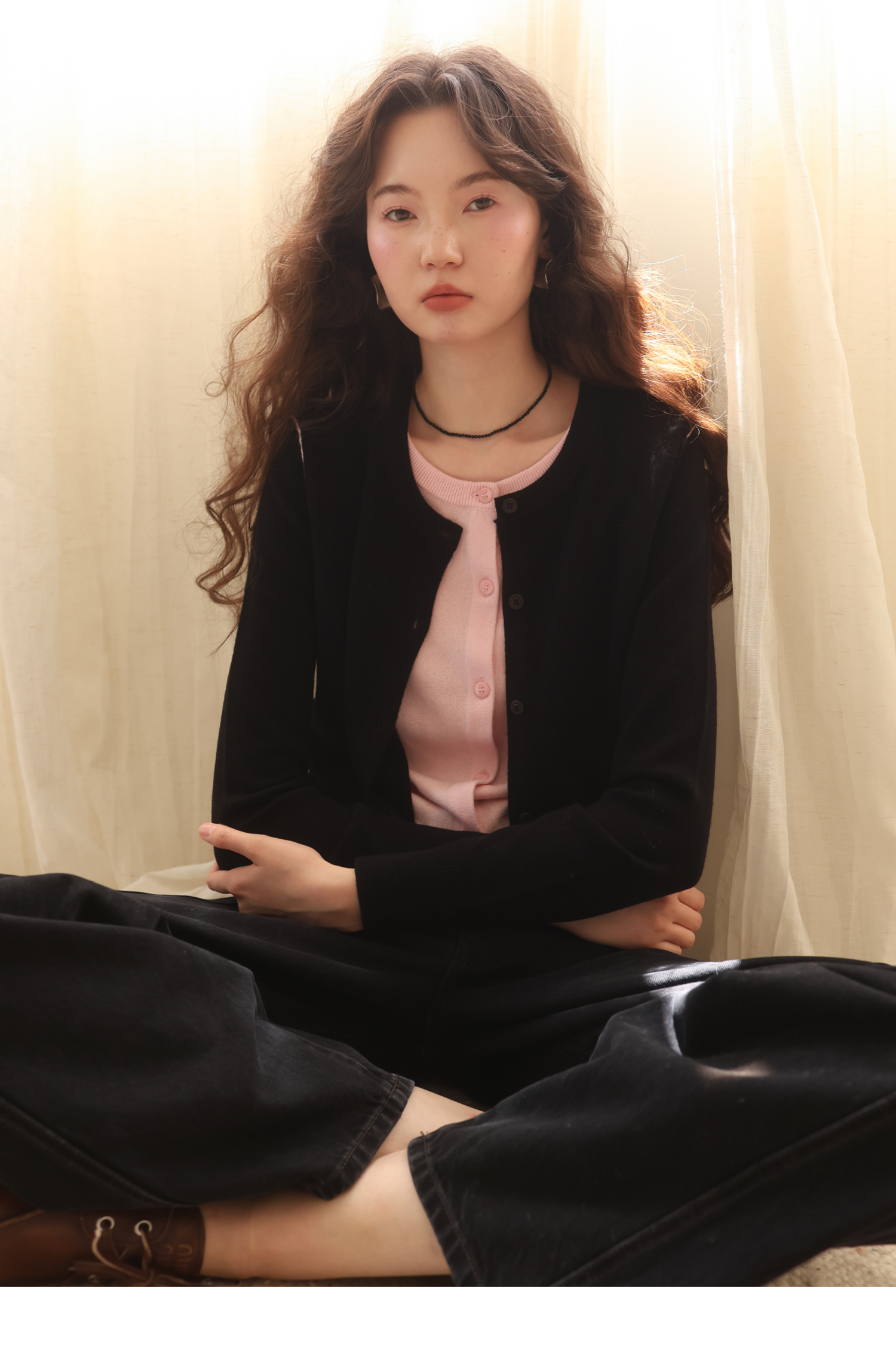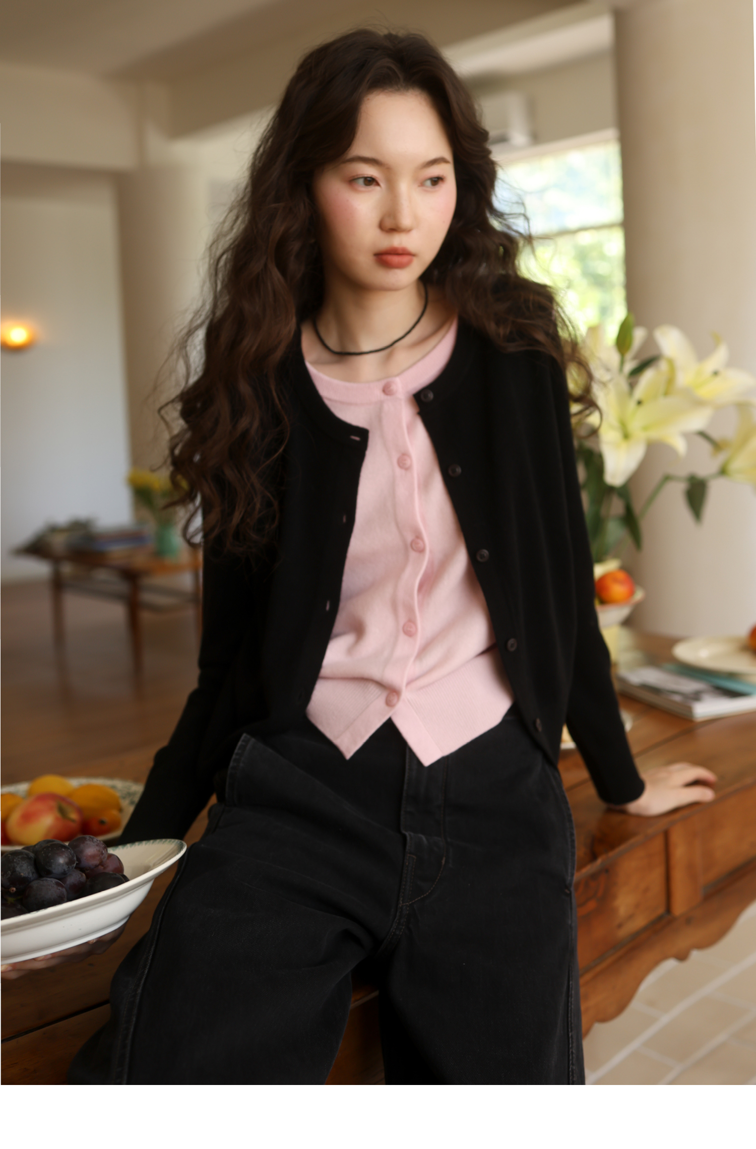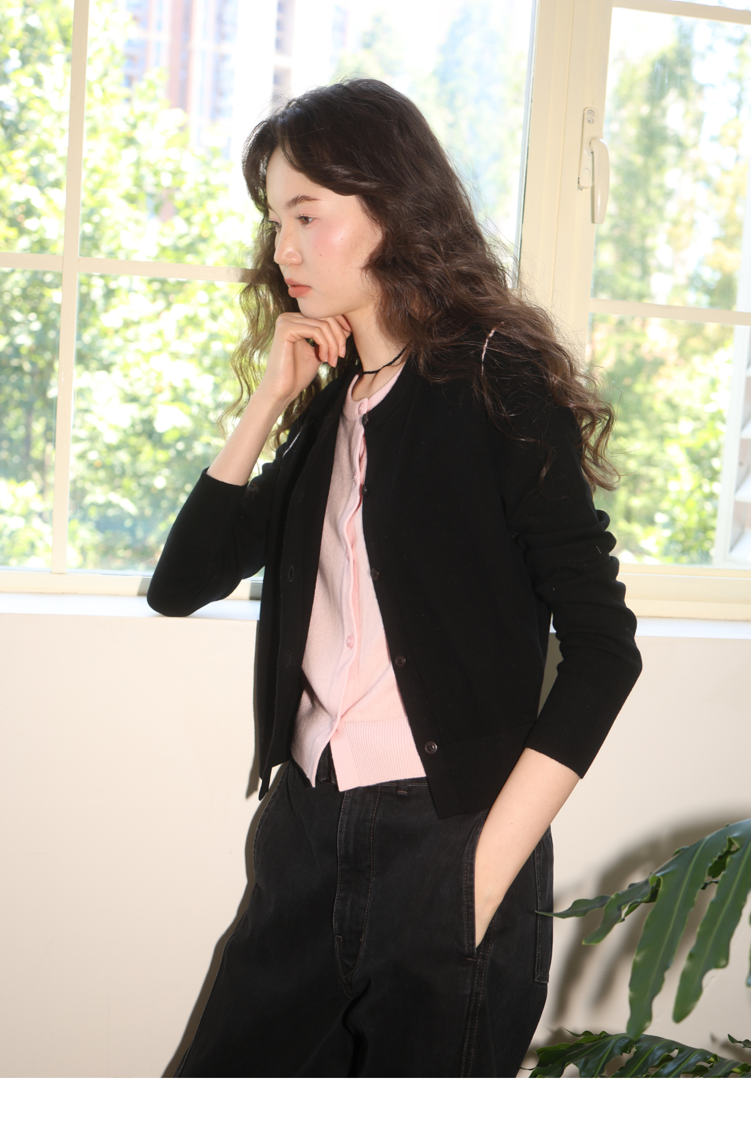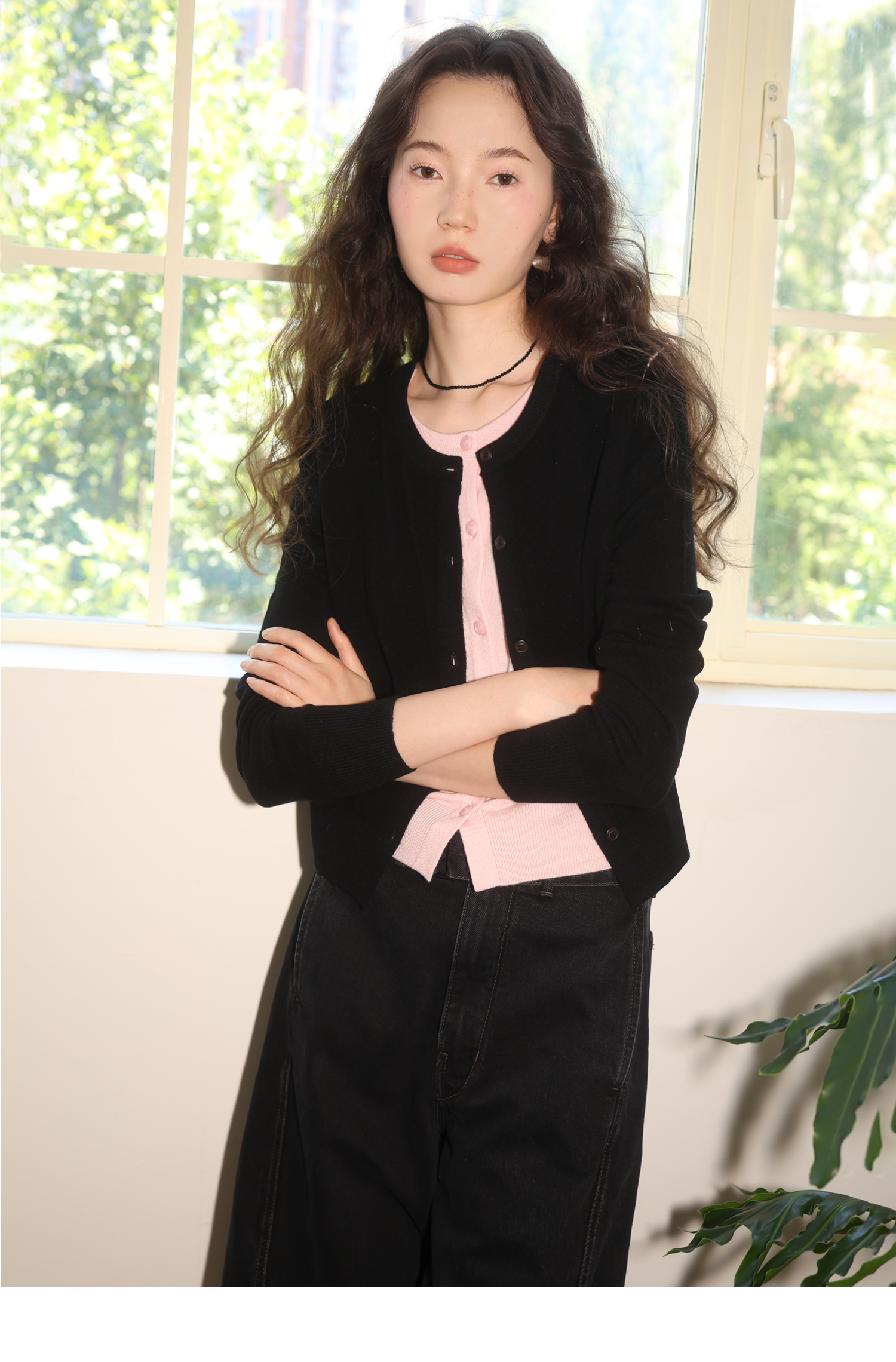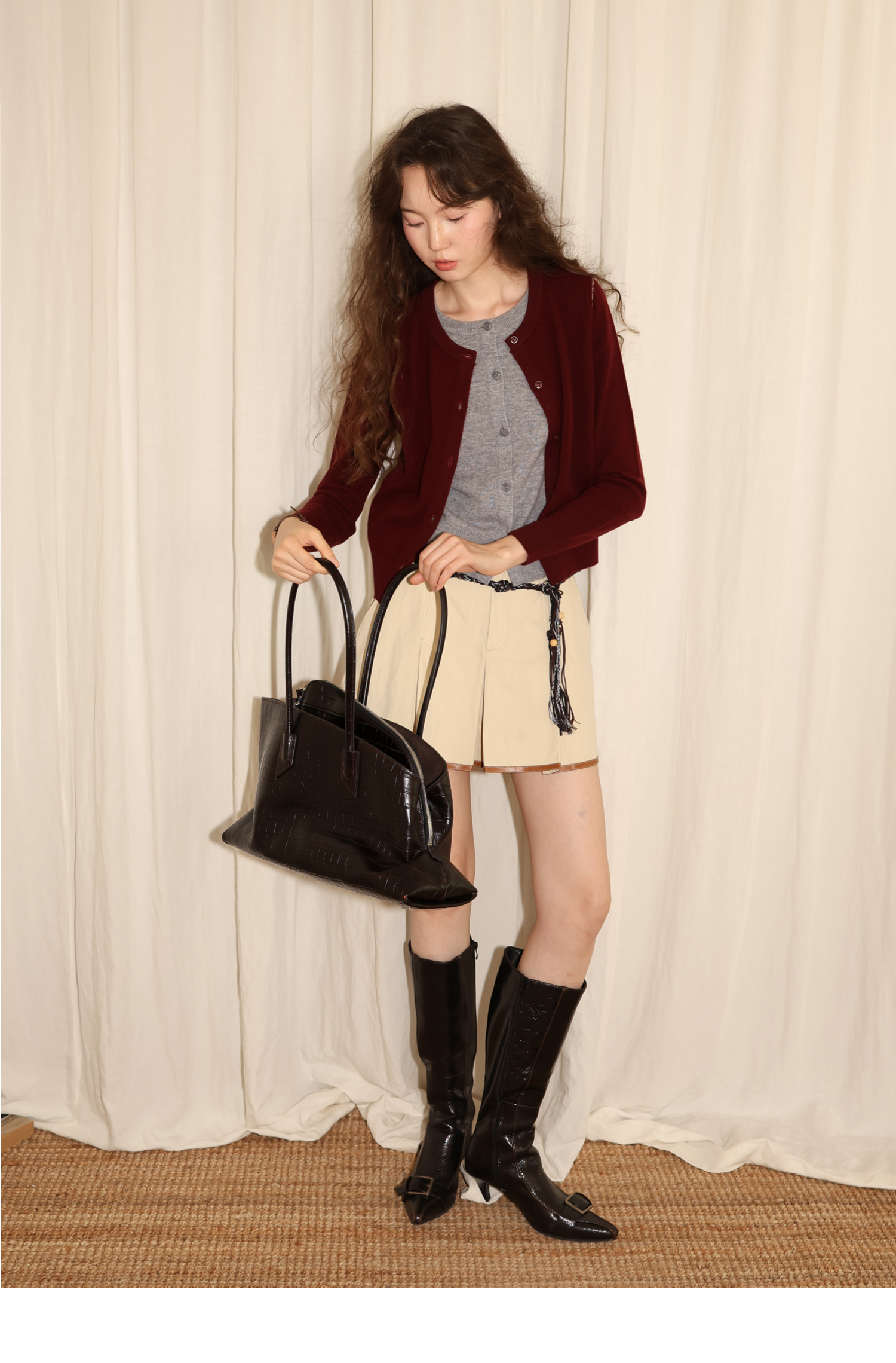 【8/6新品】素舶时髦知识分子miu风撞色假两件纯羊毛针织开衫上衣