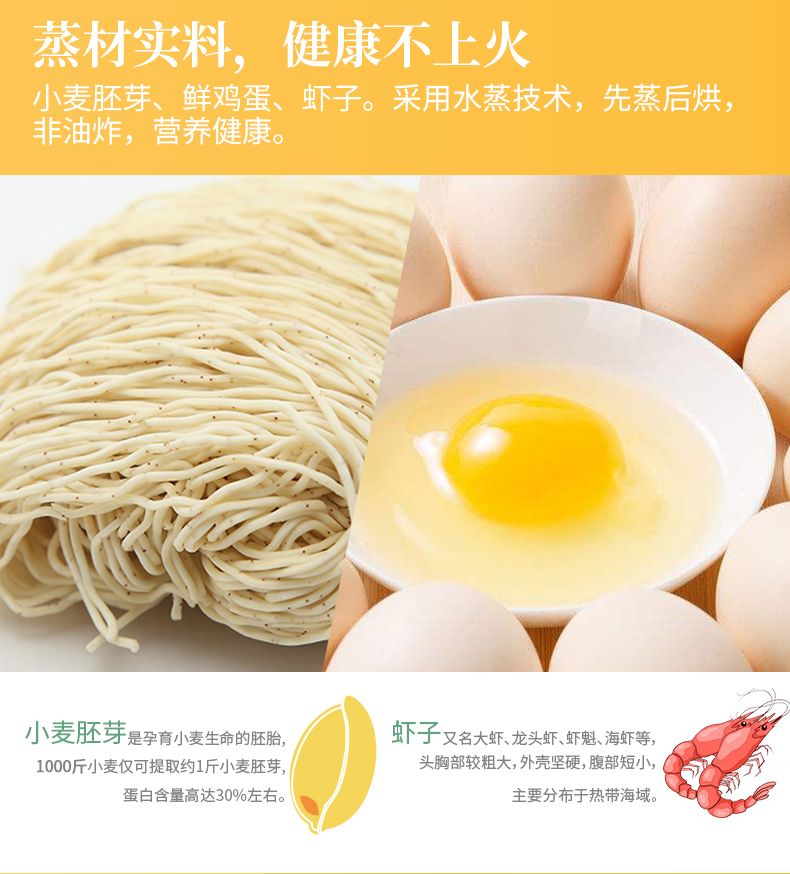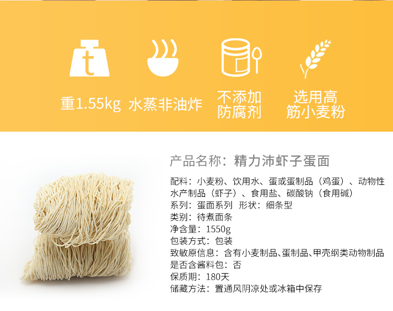 精力沛虾子蛋面 面条 虾子鸡蛋面非油炸箱装面饼健康营养1.55公斤