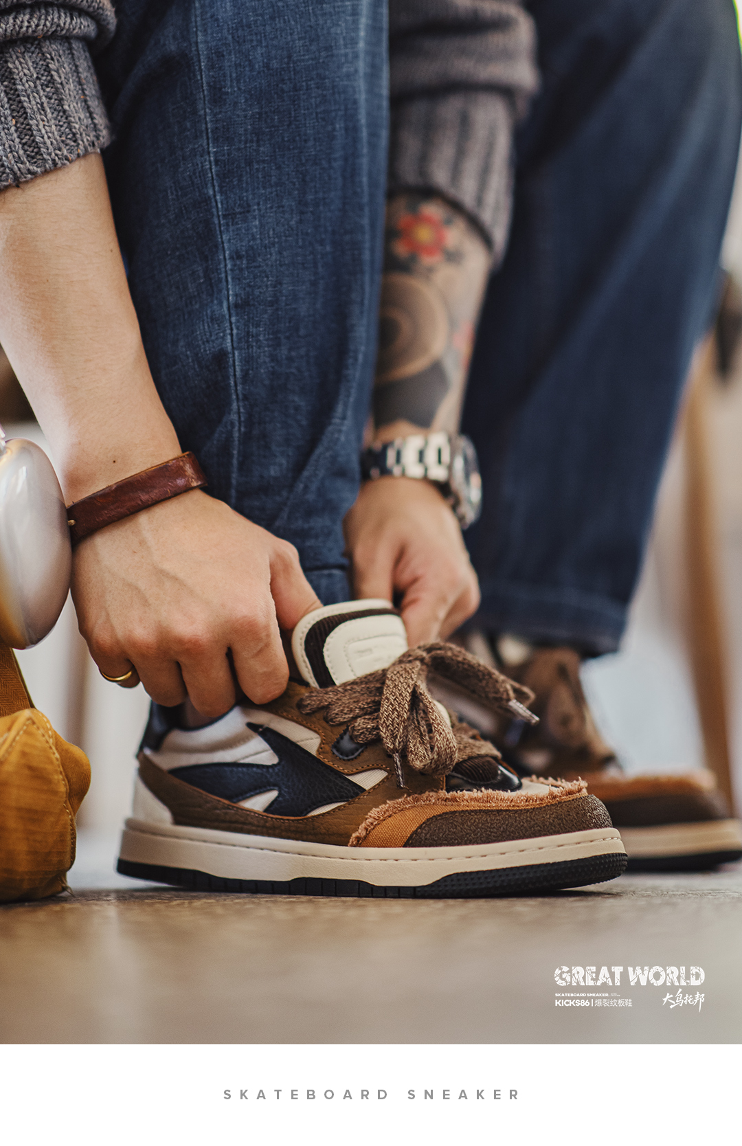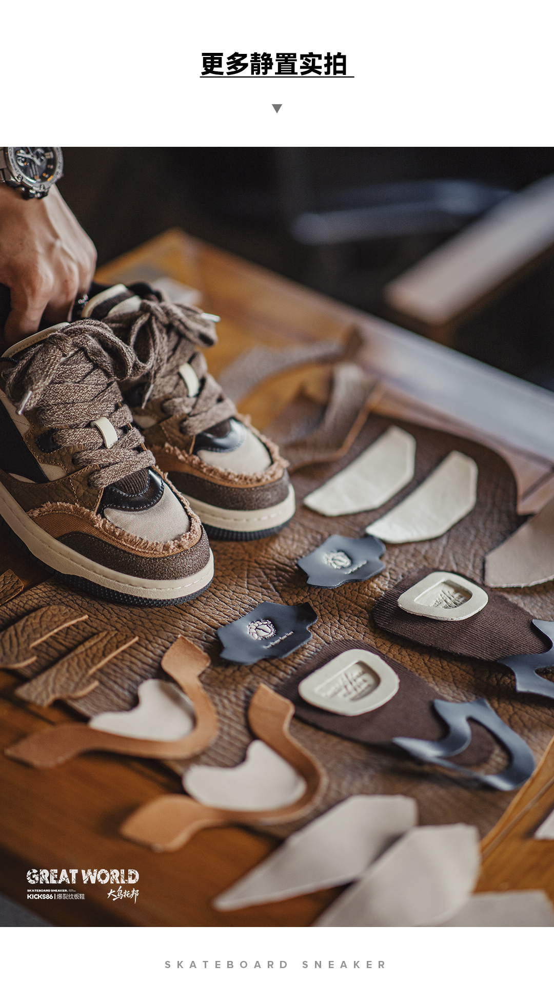 【马登男鞋】2025夏季新款英伦风棕色板鞋百搭大头休闲皮鞋潮低帮工装鞋