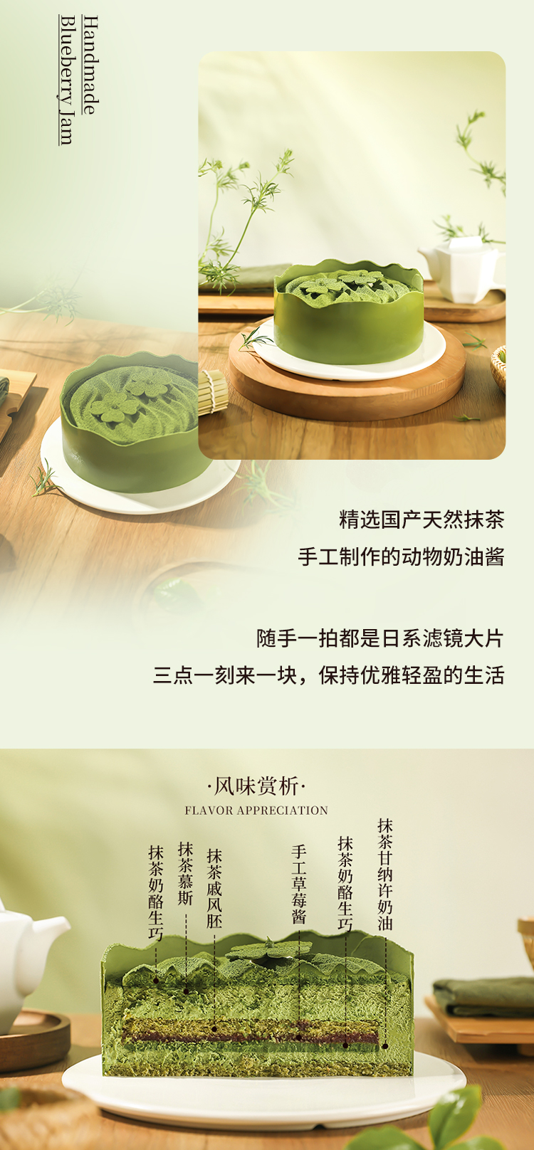 【森语青峦】 抹茶慕斯蛋糕草莓夹心 闺蜜生日蛋糕下午茶新鲜现做