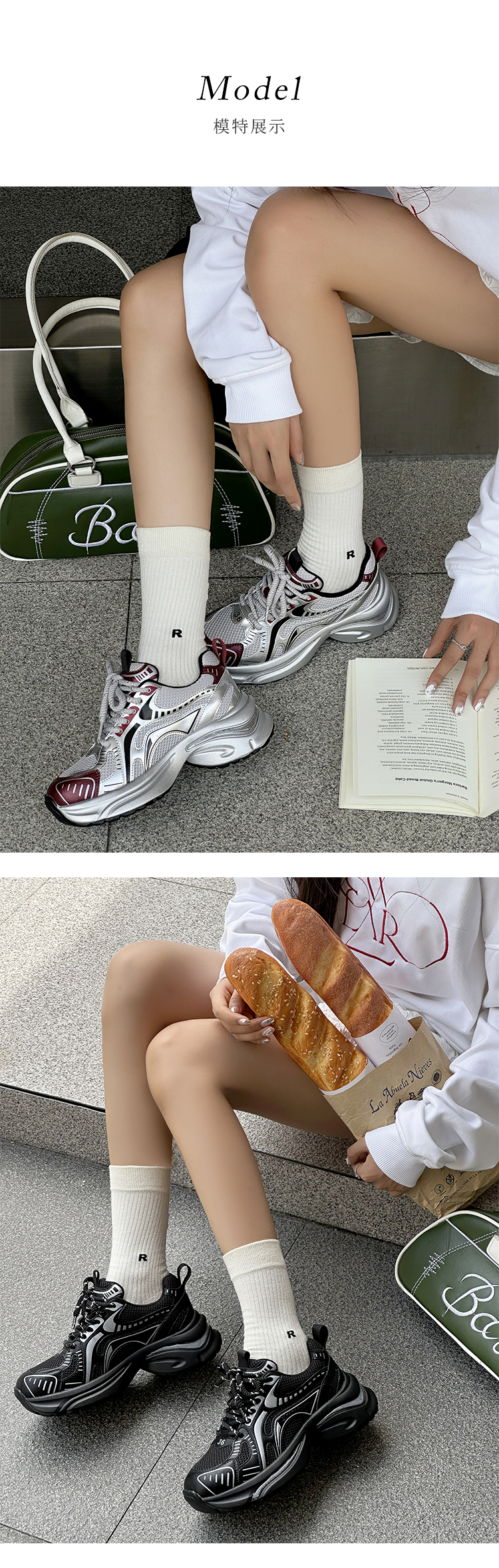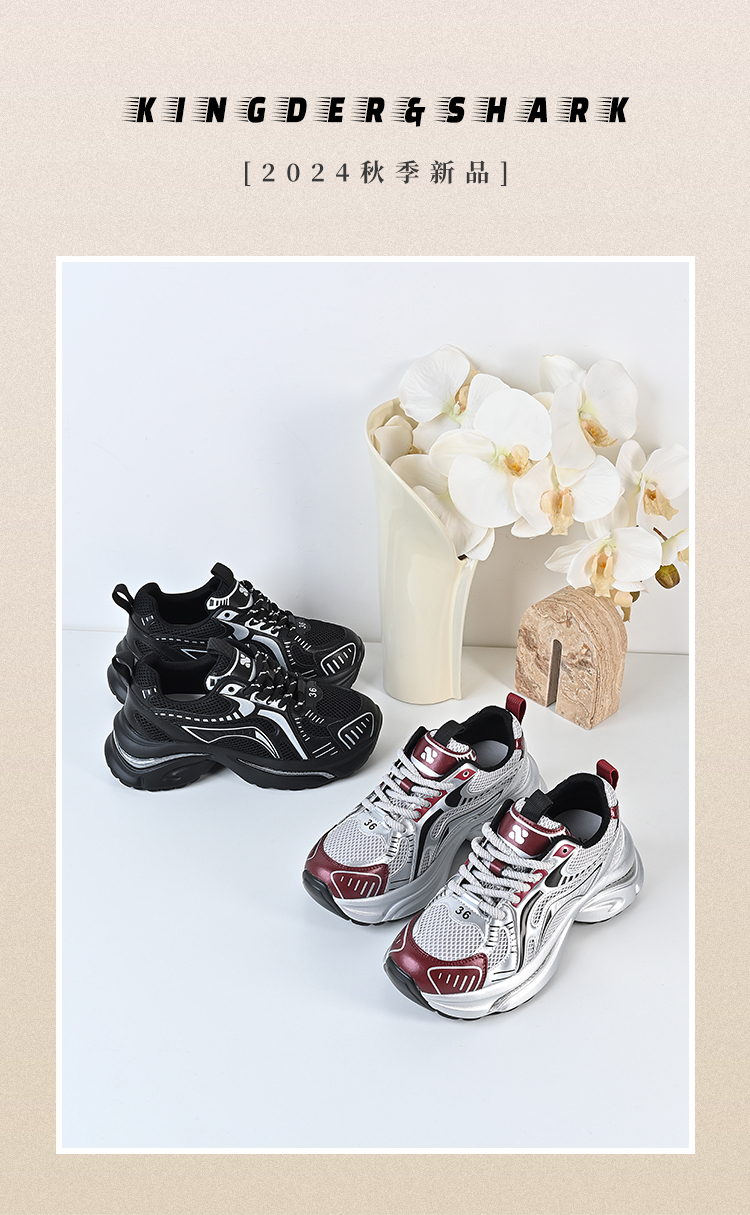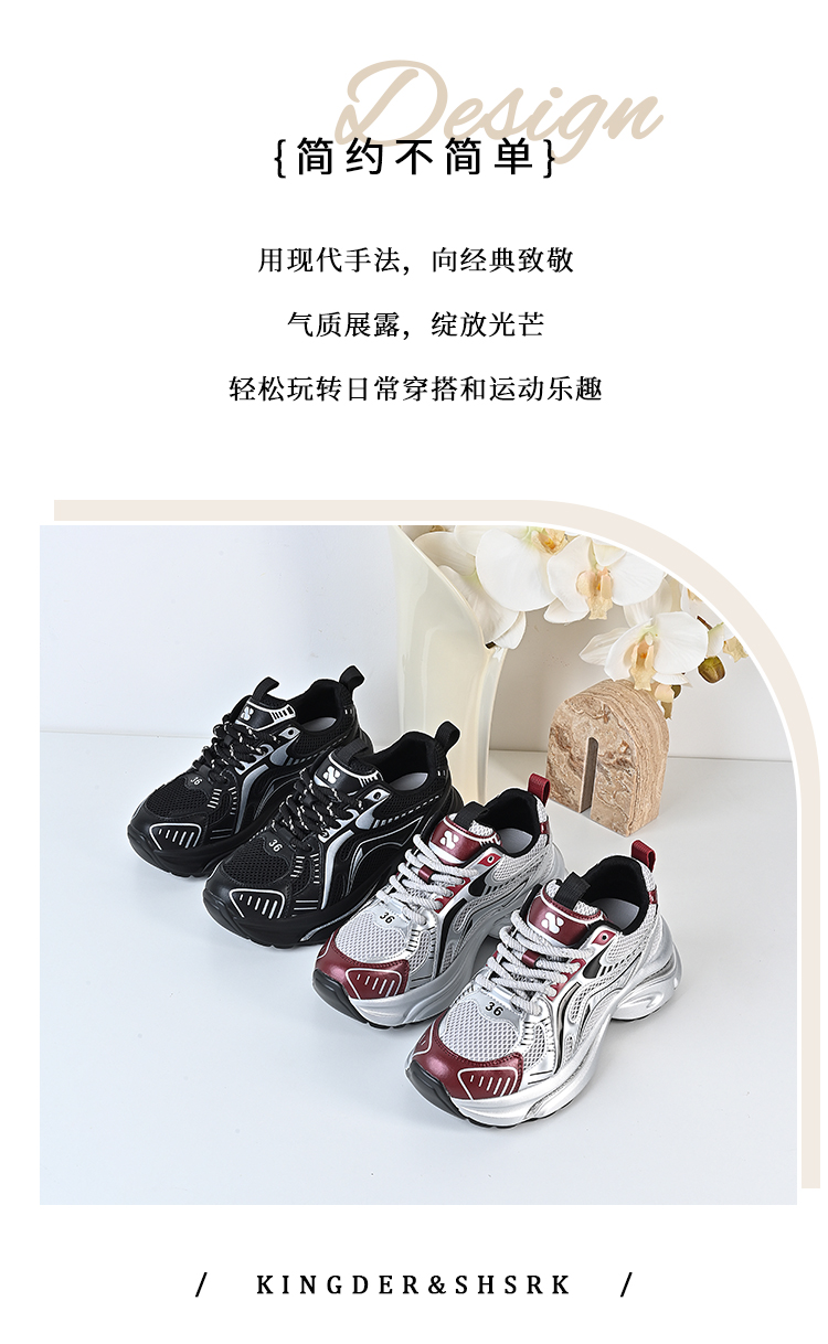 经典鲨2024年秋款安可拉红韩版网面舒适透气老爹鞋休闲鞋女KW160-D37231