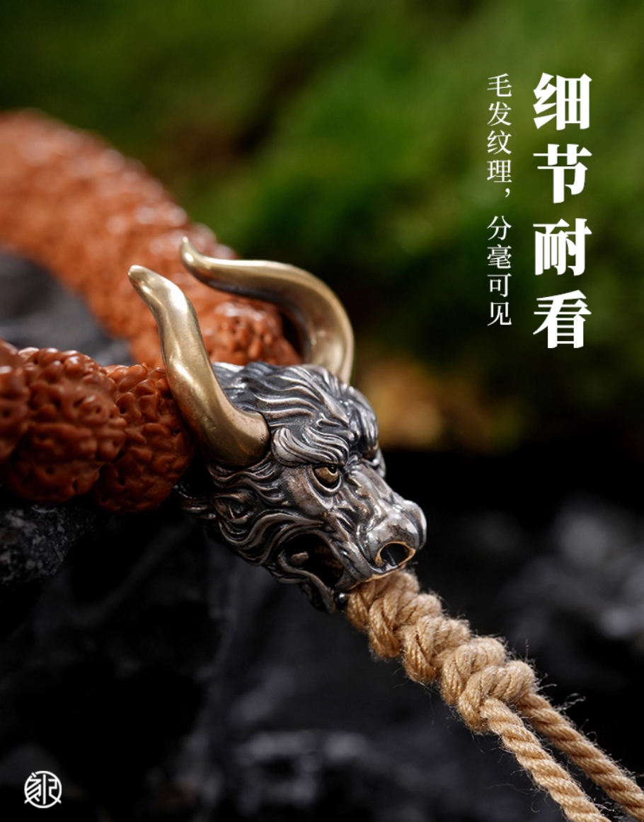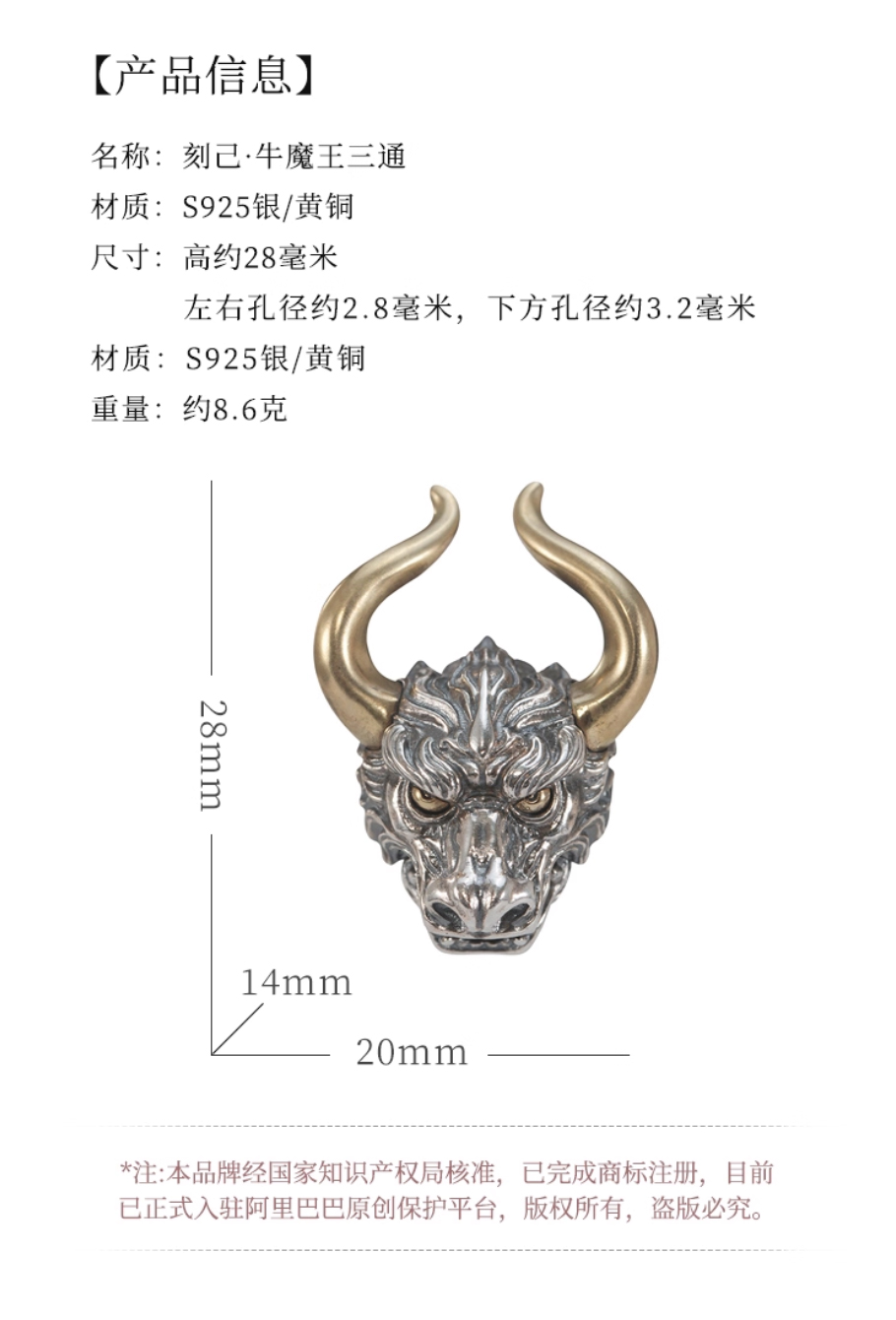 刻己 - 牛魔王三通 S925银黄铜diy饰品配件文玩手串配饰【官方授权 】【48小时发货】