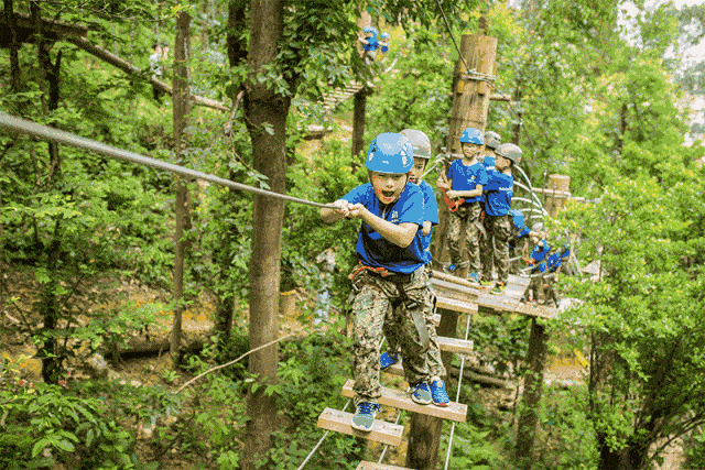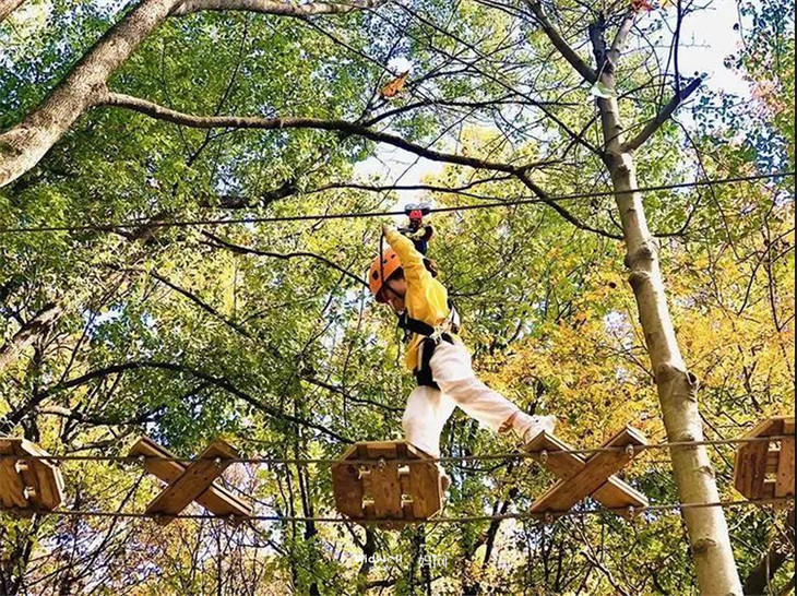 紫金山探险公园,探险家们体验空中飞跃的感觉~