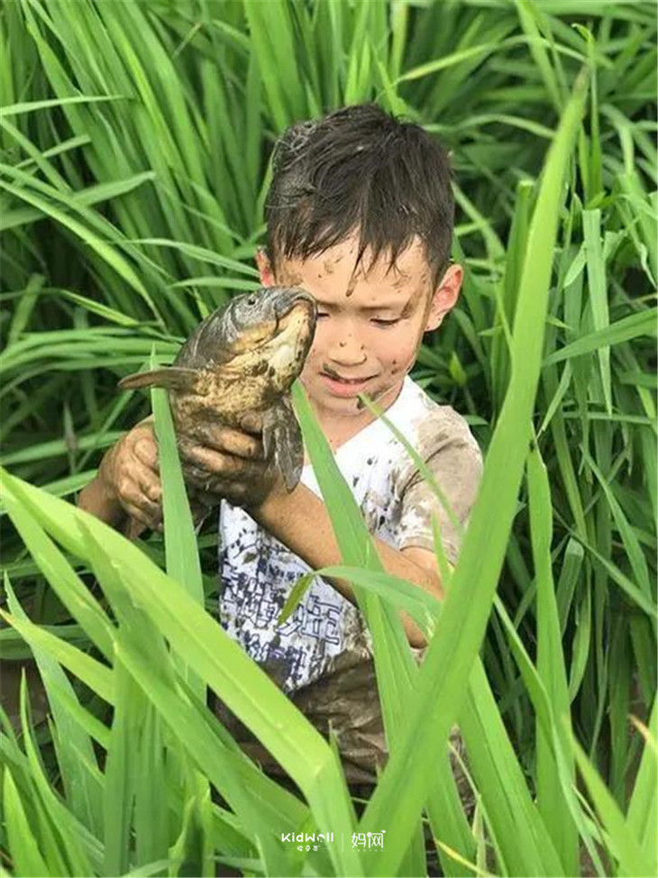 下田会抓鱼,上岸会玩泥