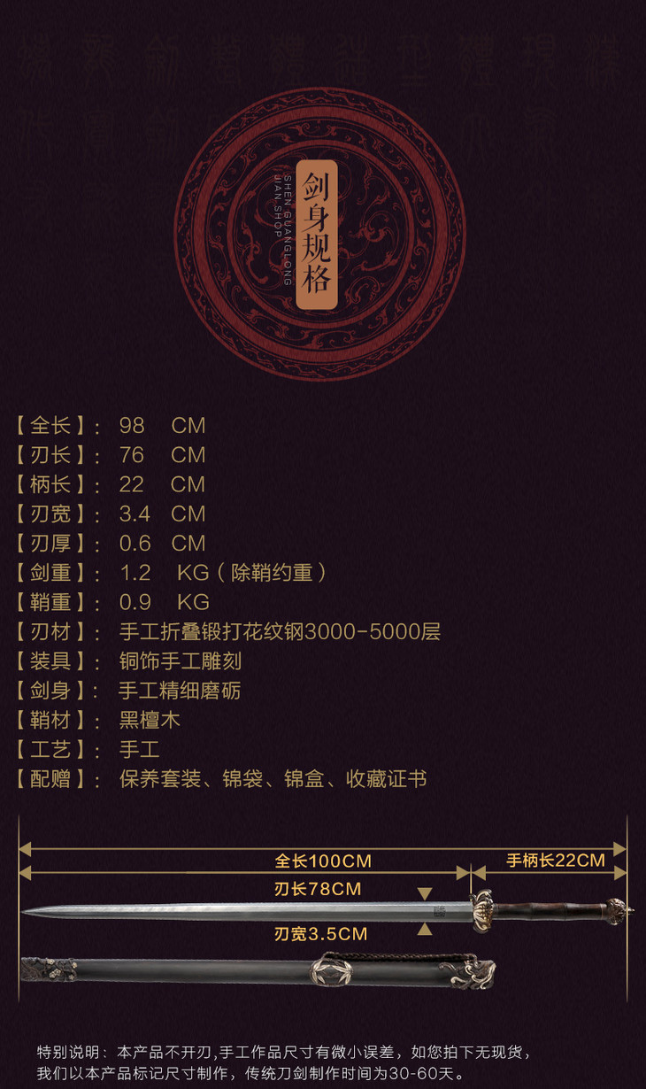 龙天宝剑 龙泉沈广隆沈州作品 全手工花纹钢剑 传统宝剑 工艺品 未开刃