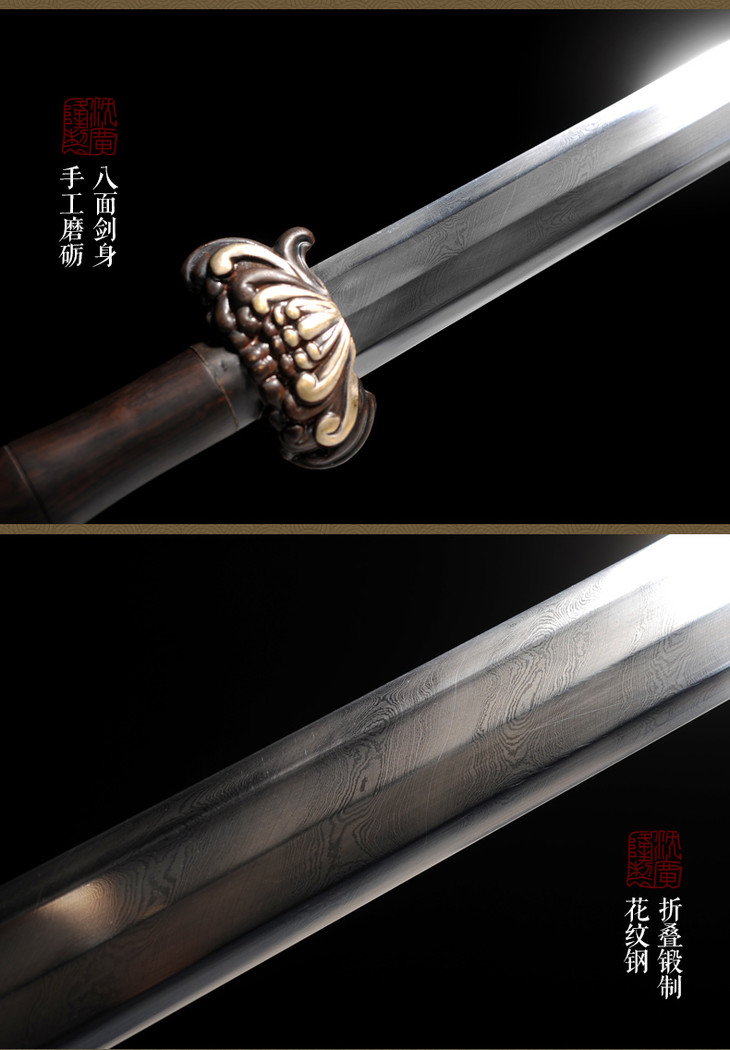 秦皇剑 汉唐横剑冷兵器一体刀剑 花纹钢 龙泉沈广隆宝剑 未开刃