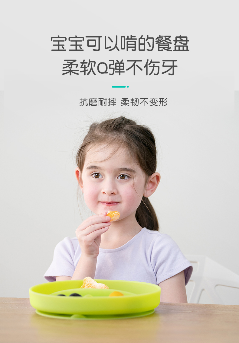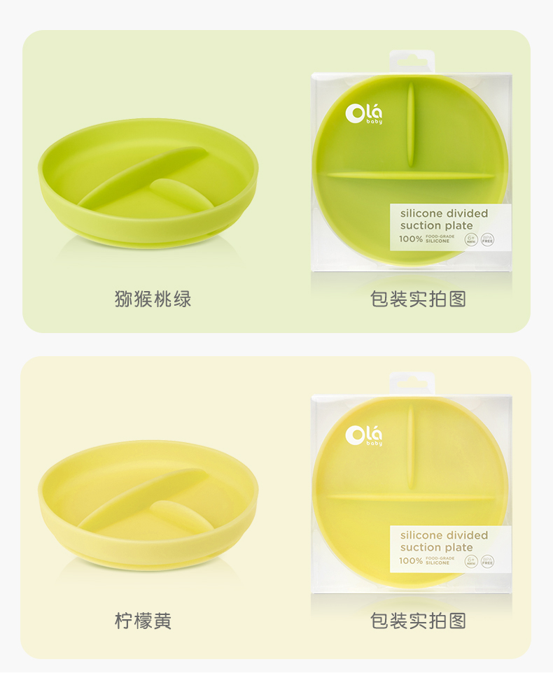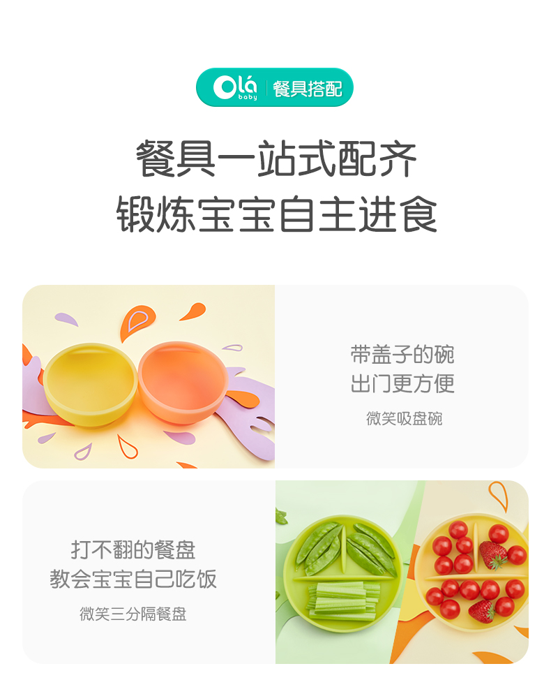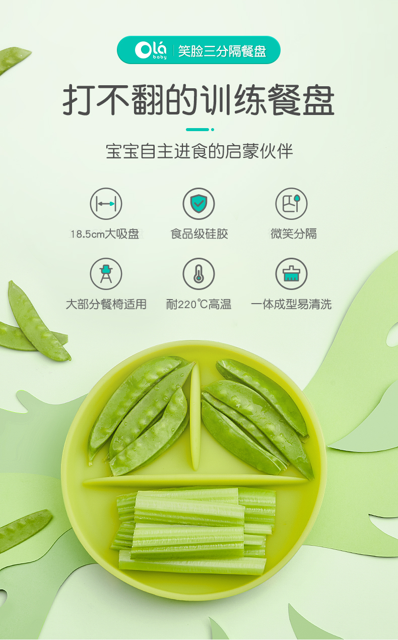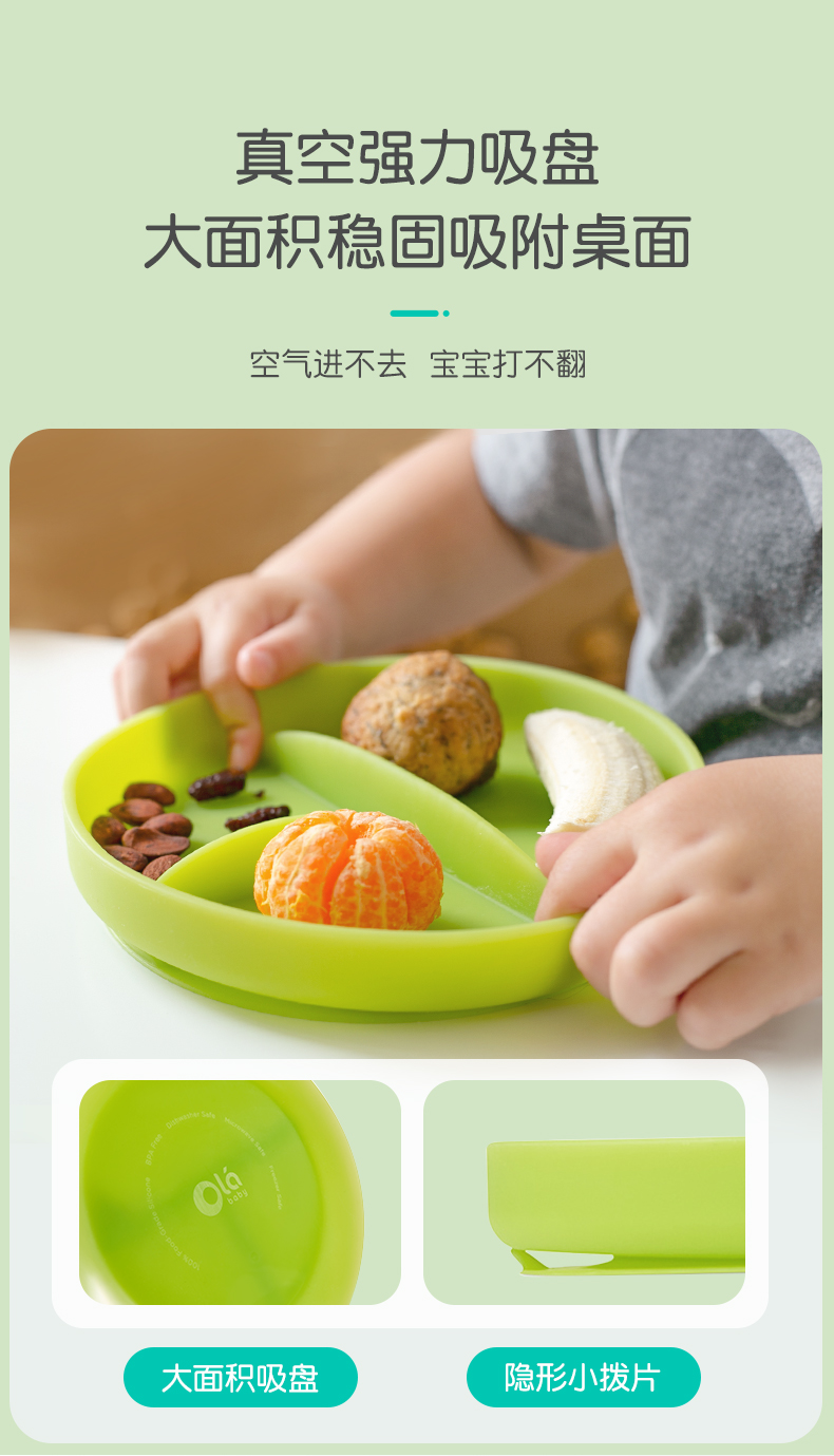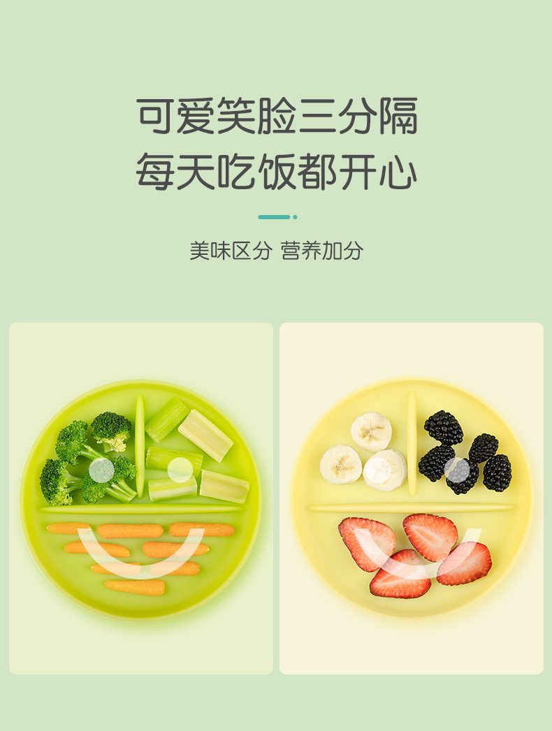olababy硅胶吸盘餐盘三分格笑脸婴幼儿童防摔滑学吃饭辅食水果盘