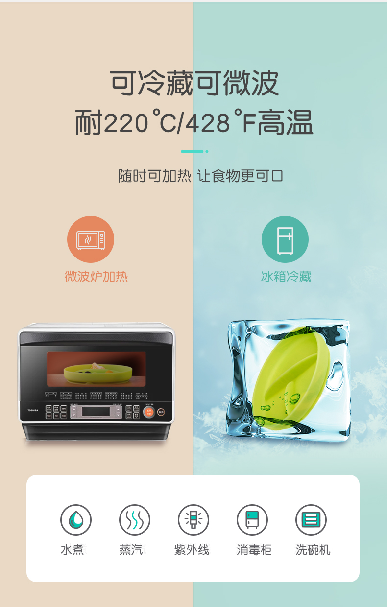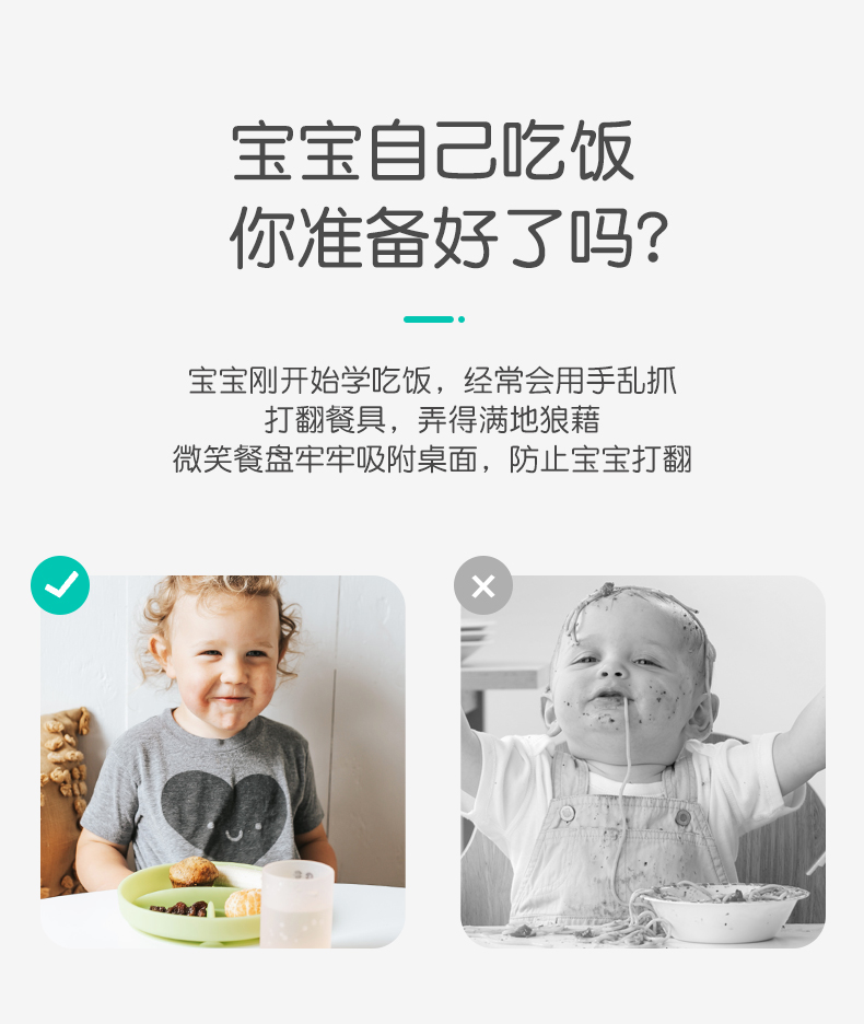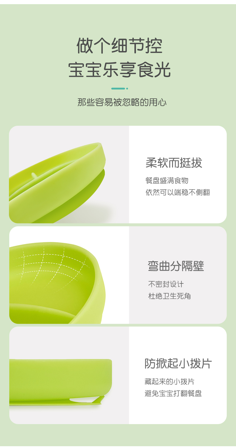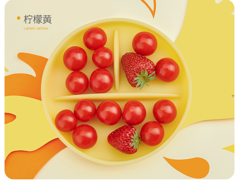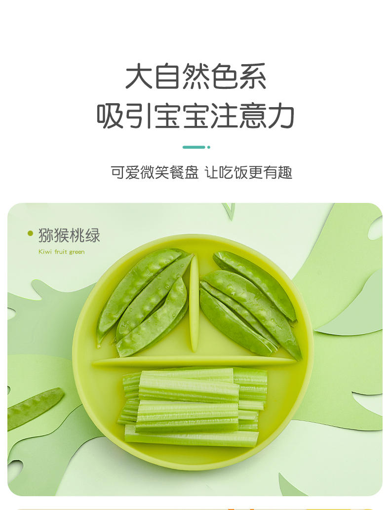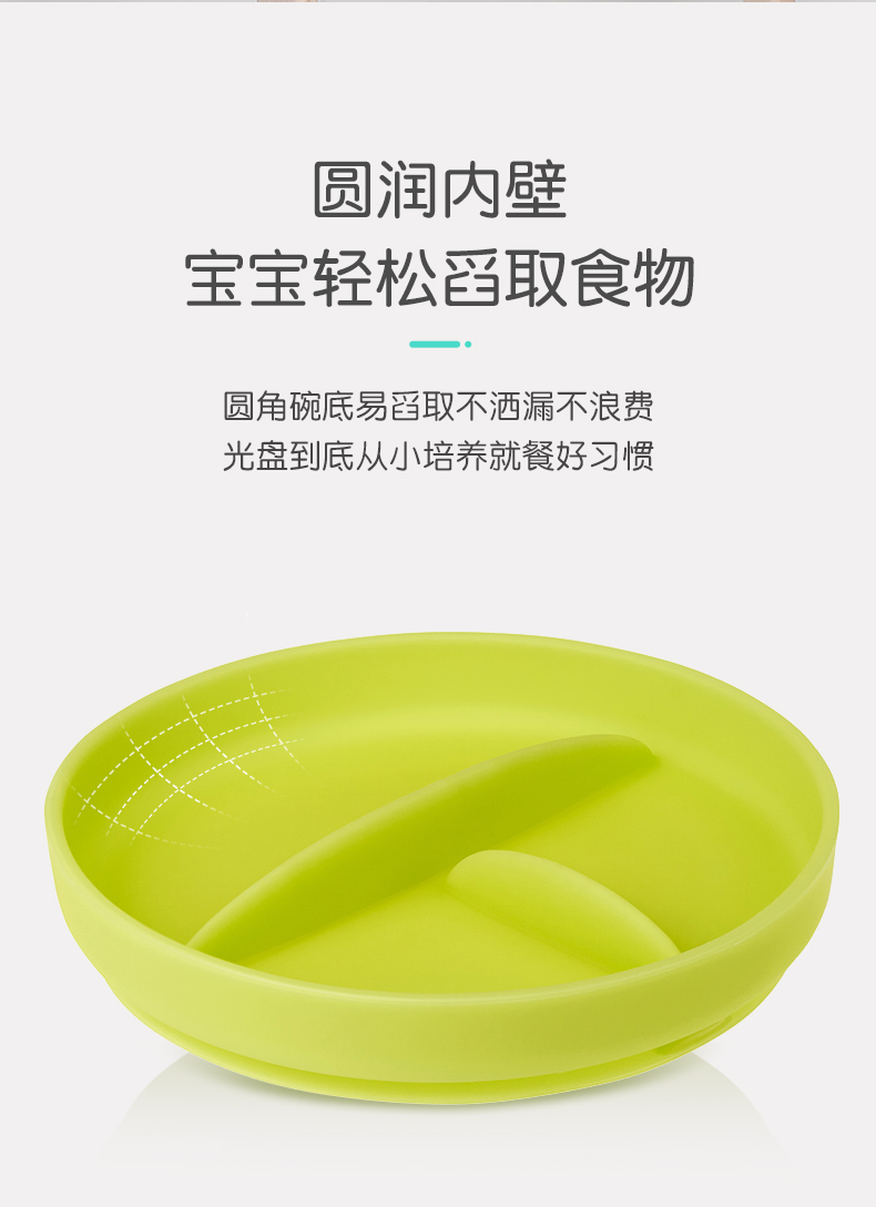 olababy硅胶吸盘餐盘三分格笑脸婴幼儿童防摔滑学吃饭辅食水果盘