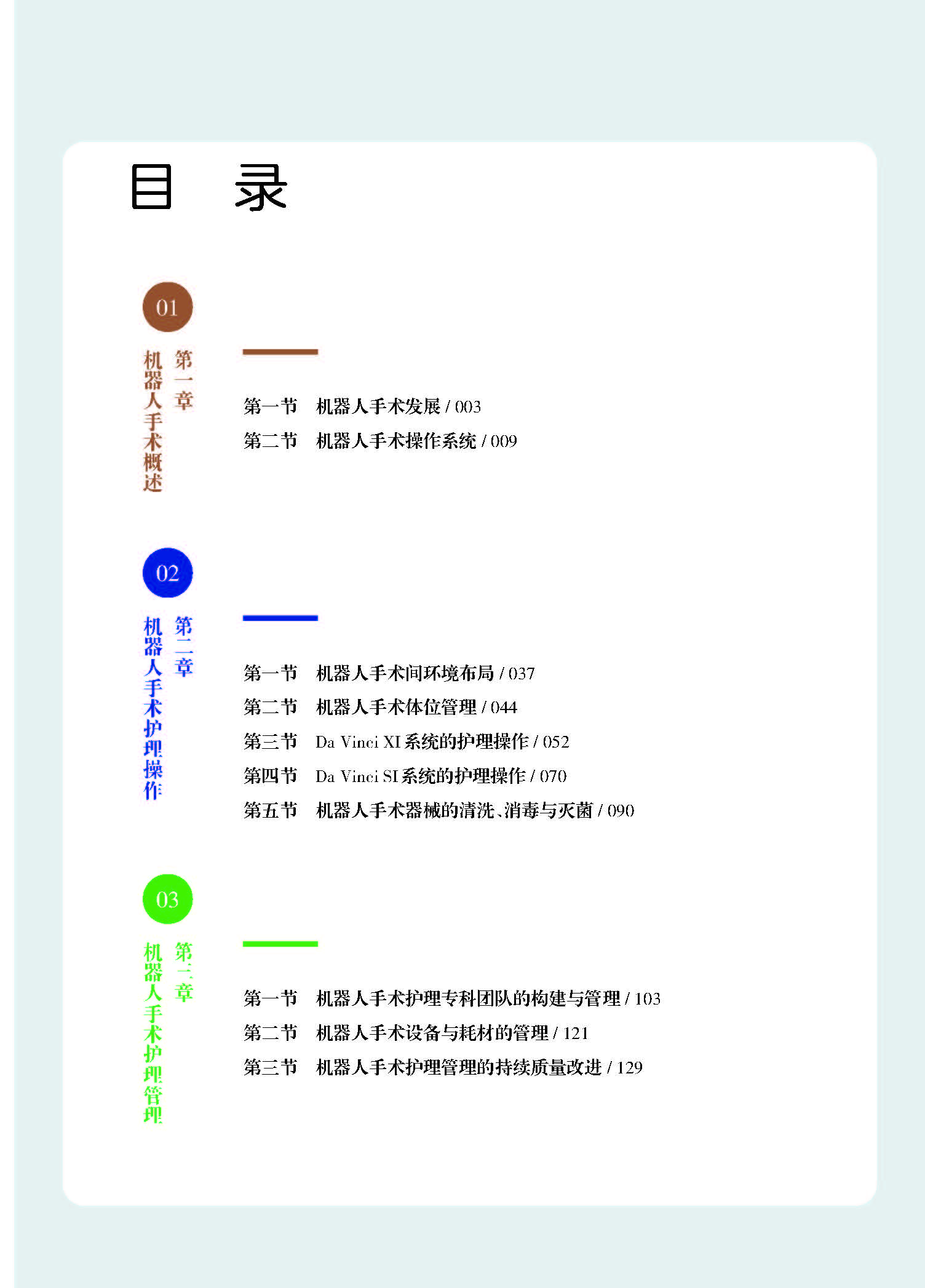 本书依托天津医科大学肿瘤医院手术室护理人员10年(2016—2025 年)近12 000例机器人手术护理经验,系统阐述了手术机器人的护理操作规范、护理管理要点及各类手术的护理配合实践,打破了单向输出的惯性思维,建立手术场景,设计以问题为导向的互动环节,并辅以丰富的图谱进行全方位演示 。 内容涵盖基础知识、操作技术、临床技巧、安全管理、机器人护理团队建设等多维度知识体系,语言通俗易懂,旨在为手术室护理人员提供临床实践与管理的可靠依据,分享行之有效的配合经验。