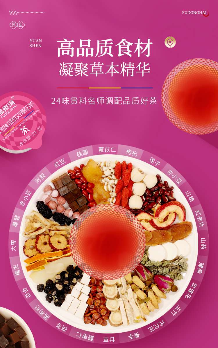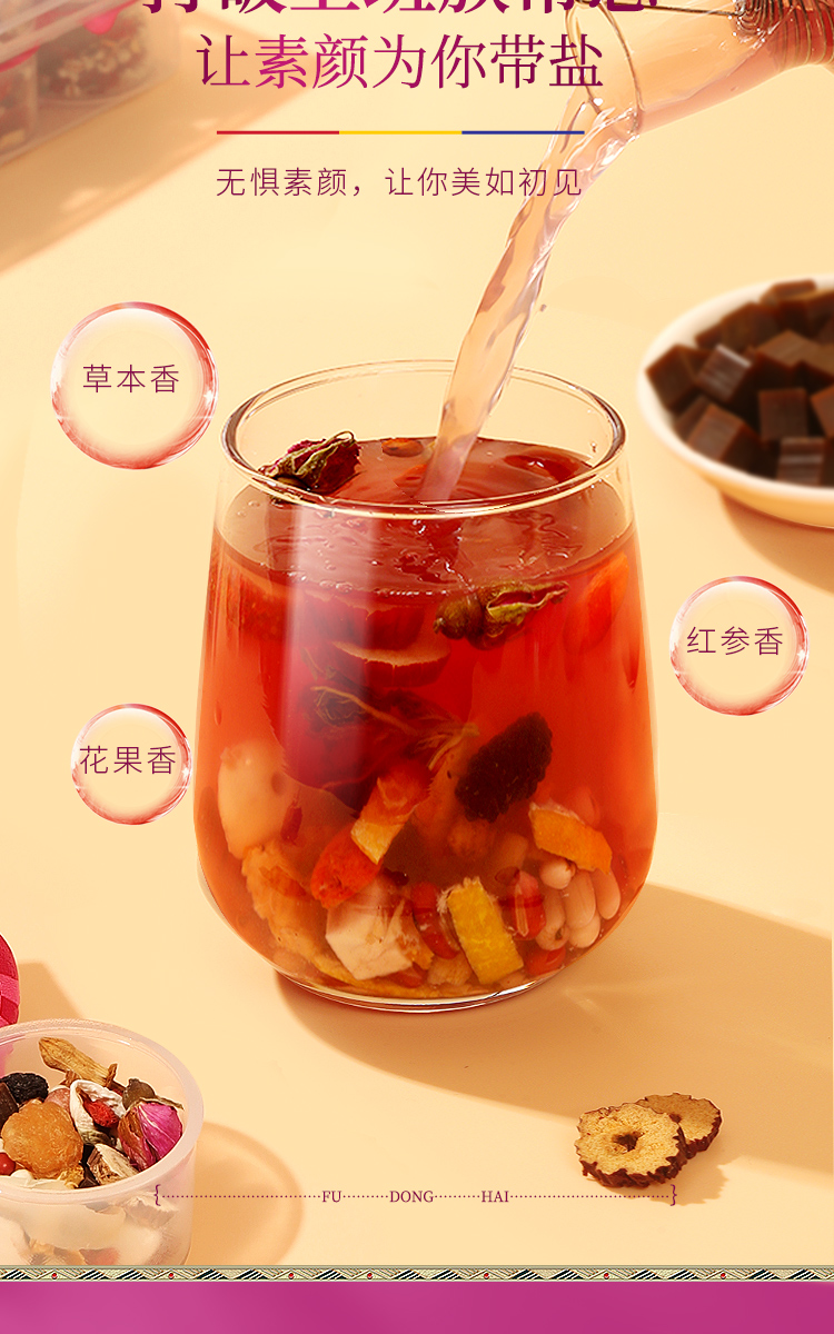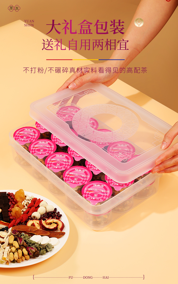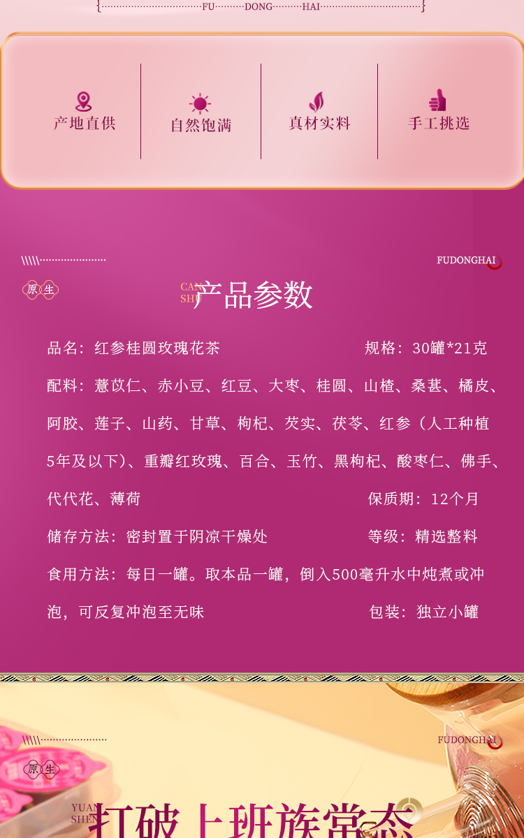 福东海 红参桂圆玫瑰花茶(21g*30罐)630克/盒 玫瑰 花茶叶养生茶女人茶花草组合小罐茶